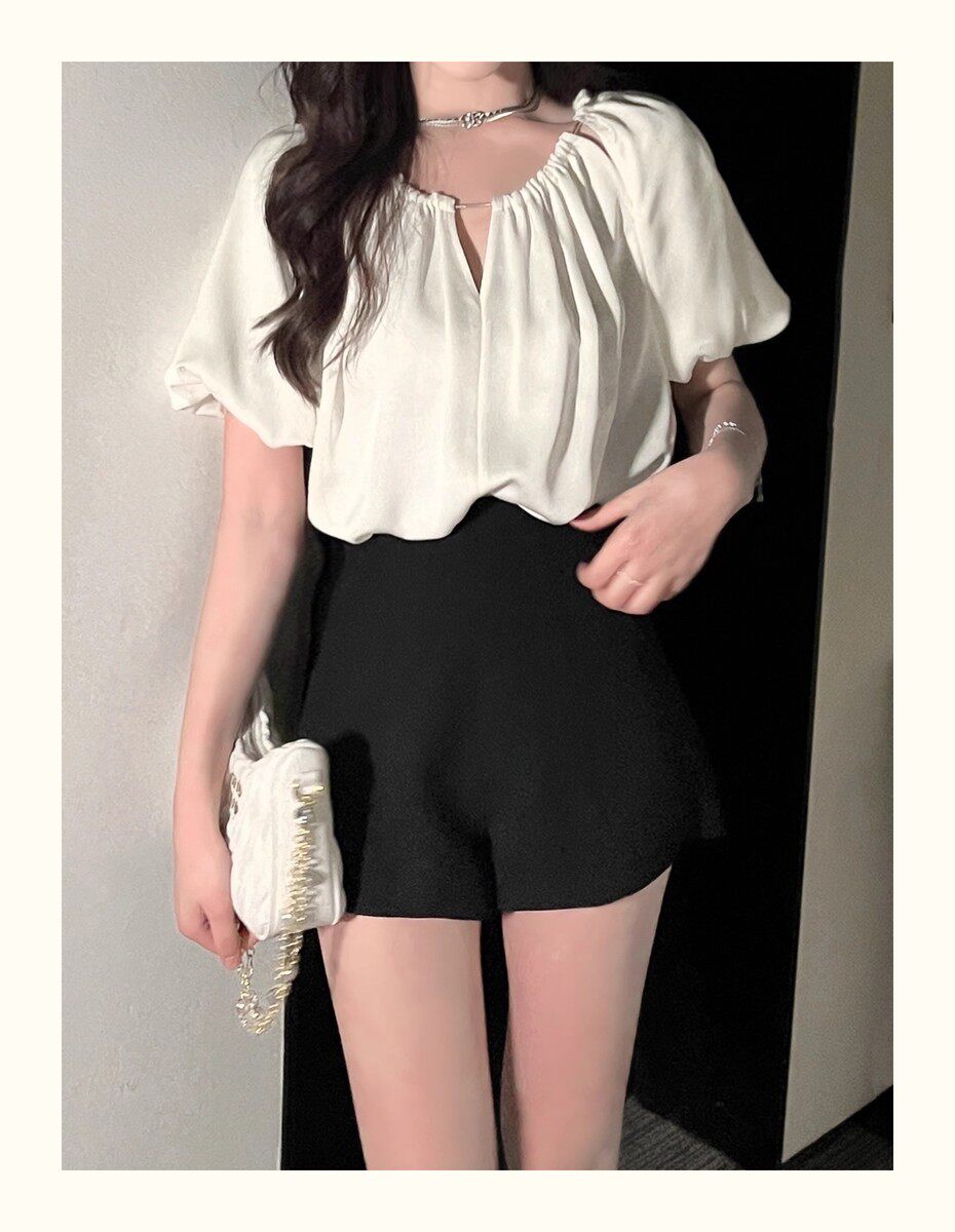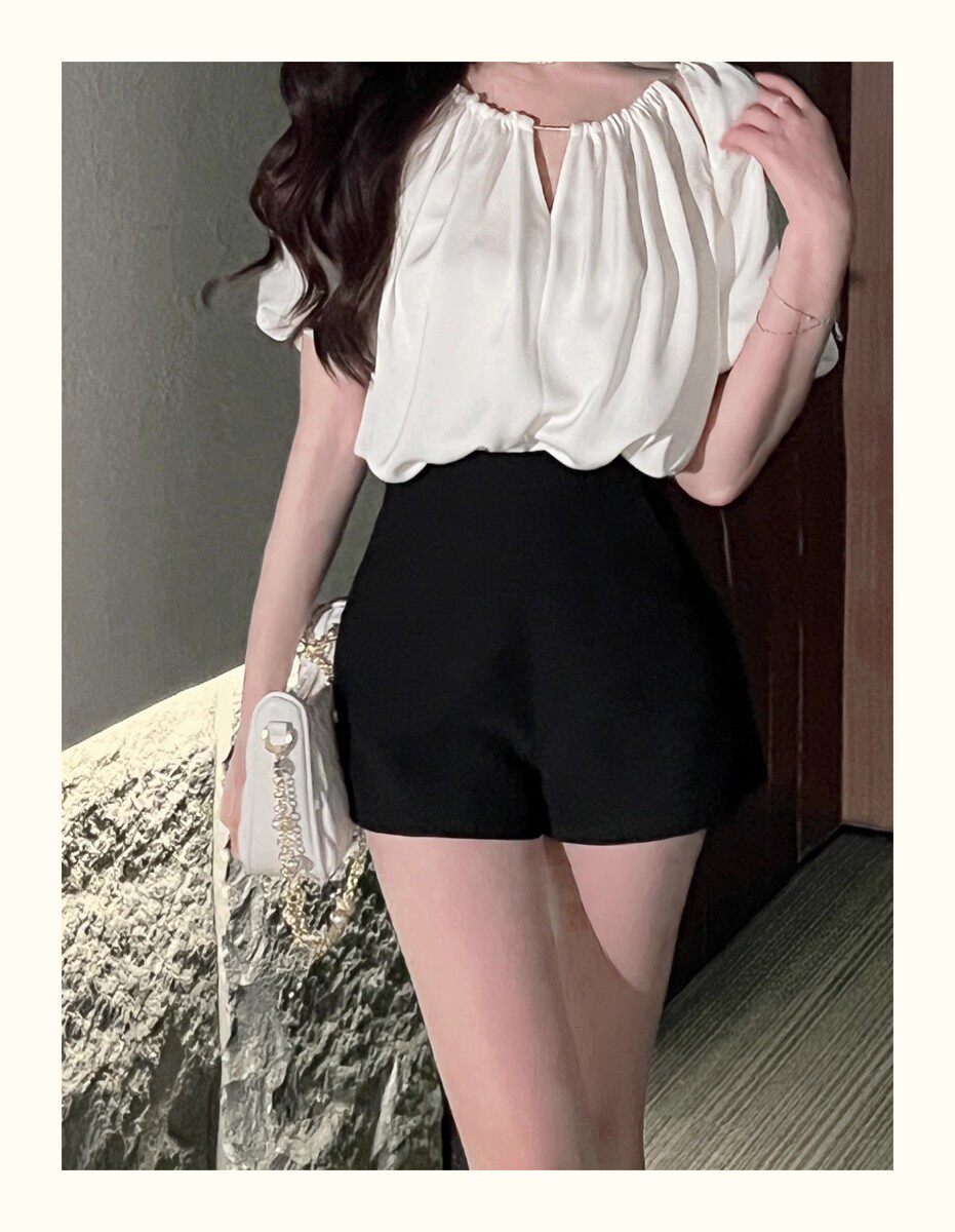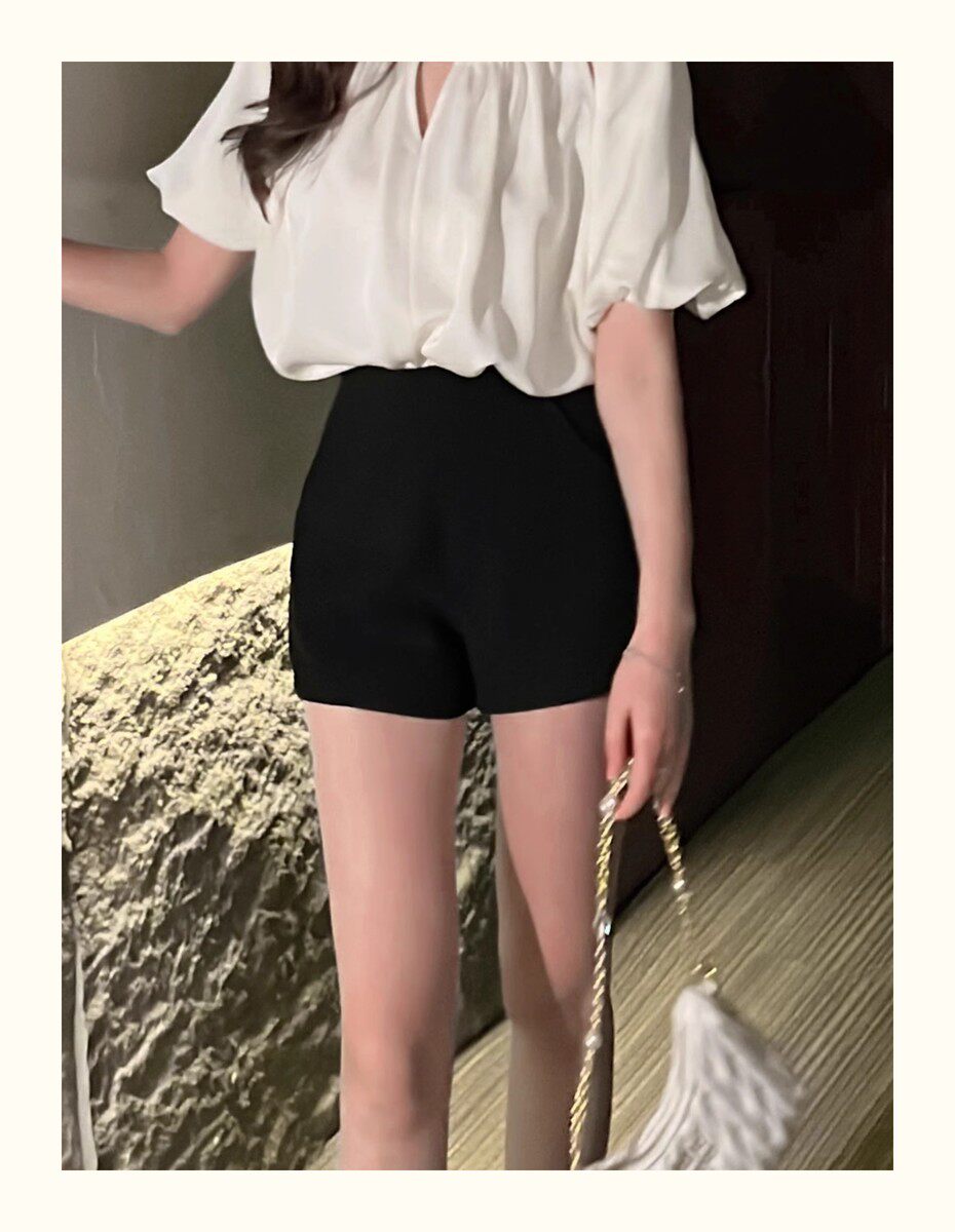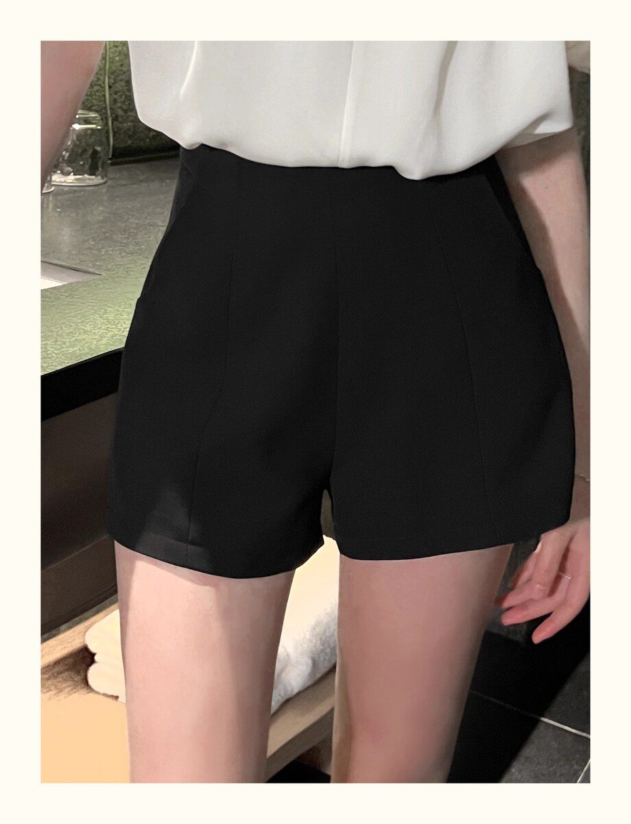 Hollin Black Versatile Suit Shorts Women's 2025 Summer New Slim Fashion High Waisted Wide Leg Pants Women