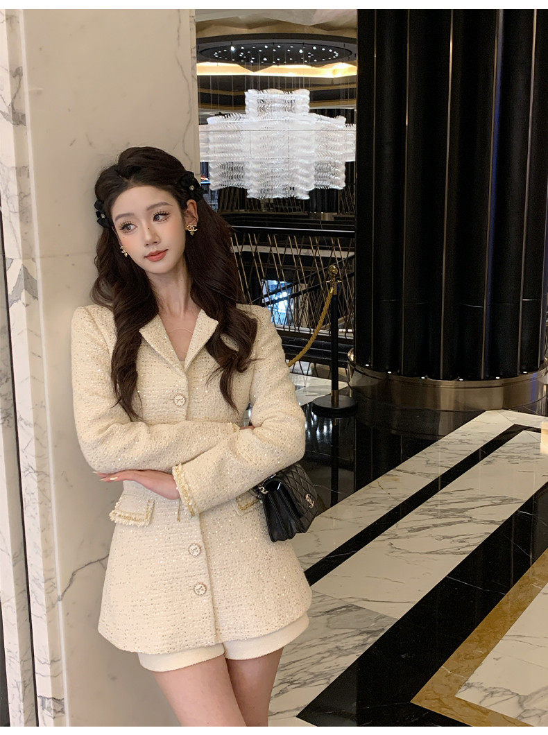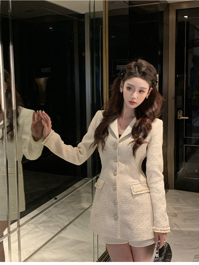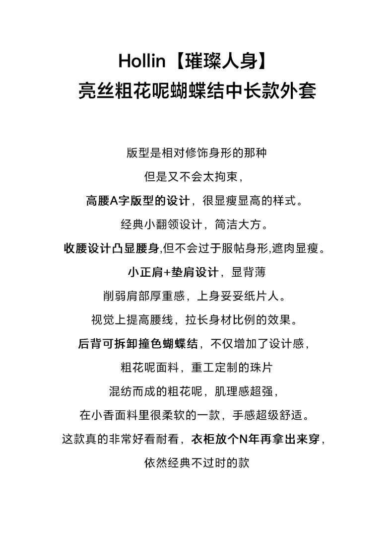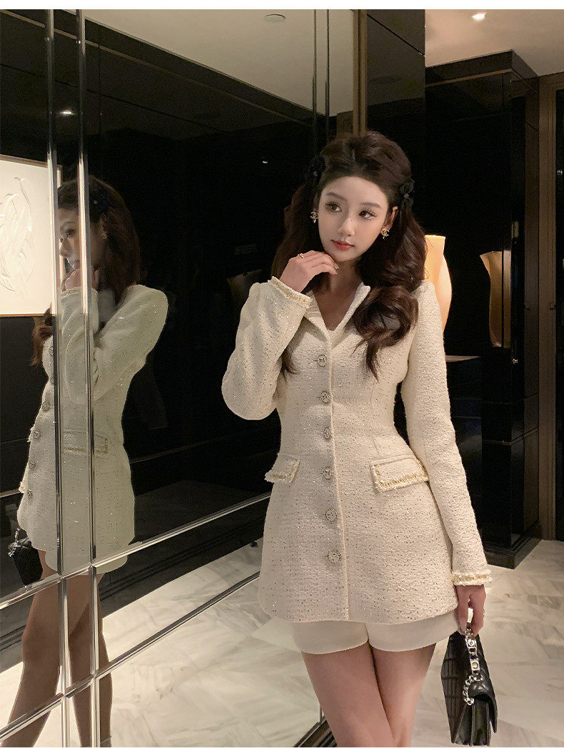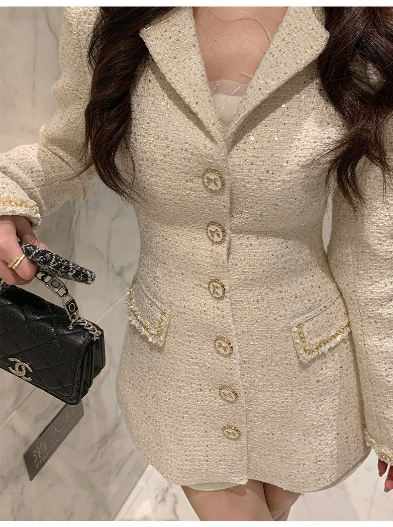 Hollinna Tweed Coat for Women, Autumn/Winter 2025 New Style, Mid-Length, Light Luxury, High-End Feel, Waist-Cinching Top