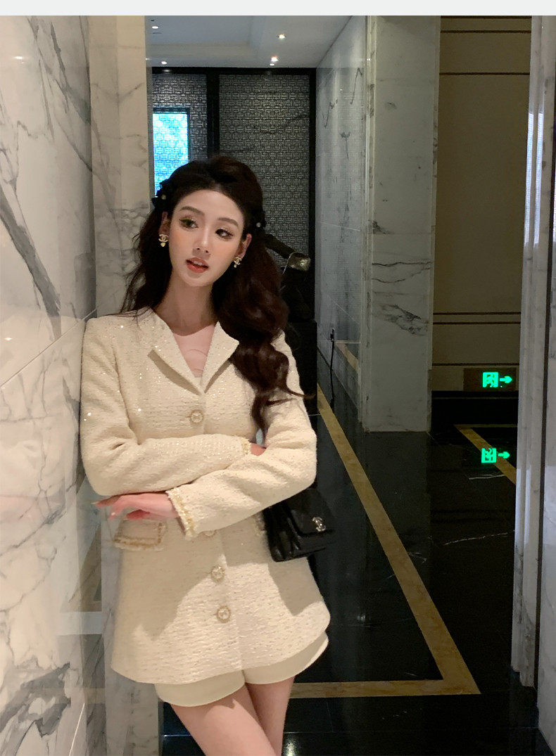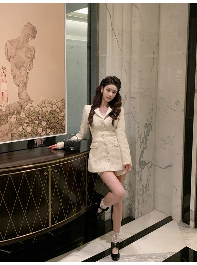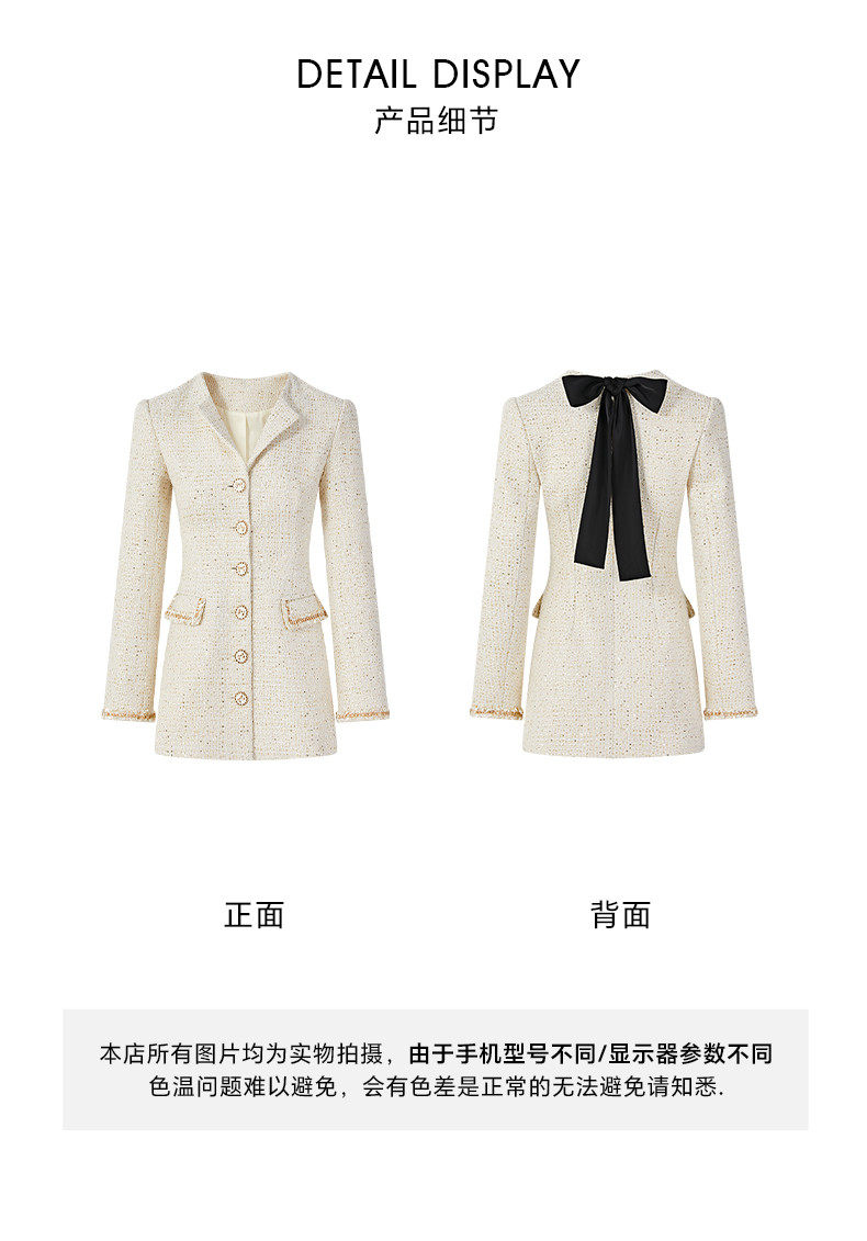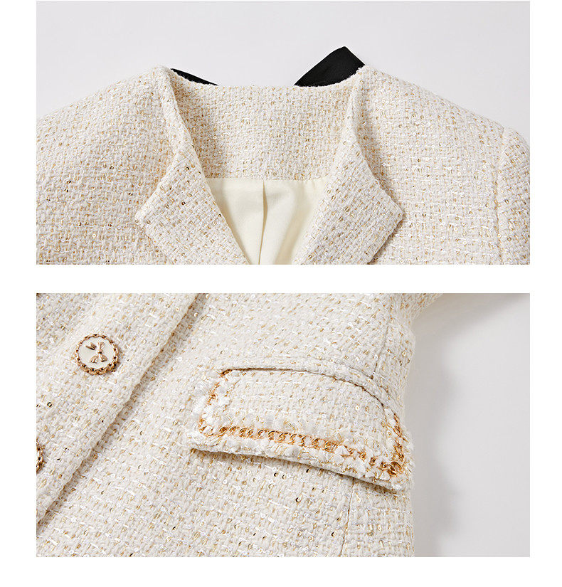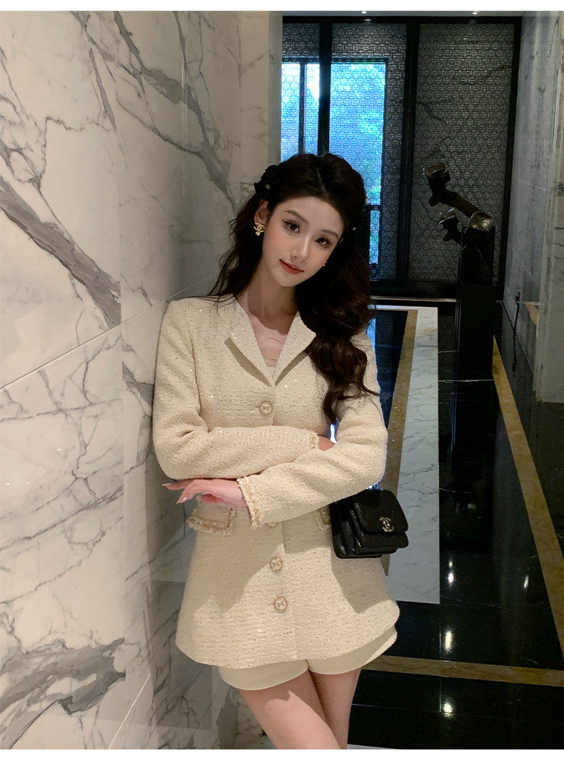 Hollinna Tweed Coat for Women, Autumn/Winter 2025 New Style, Mid-Length, Light Luxury, High-End Feel, Waist-Cinching Top