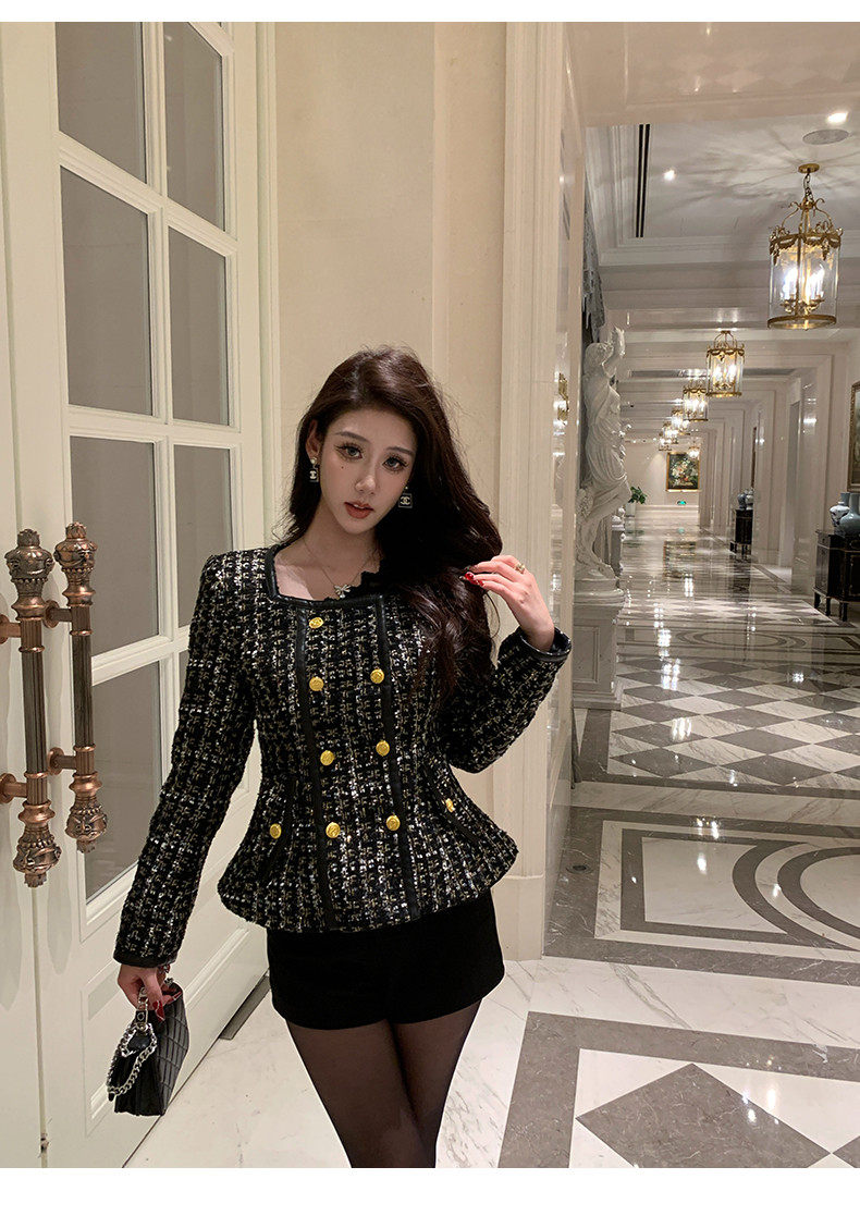 Hollinna Plaid Quilted Thickened Chanel-Style Jacket for Women, Autumn/Winter 2025 New Model, Waist-Cinching Design, Slimming Top