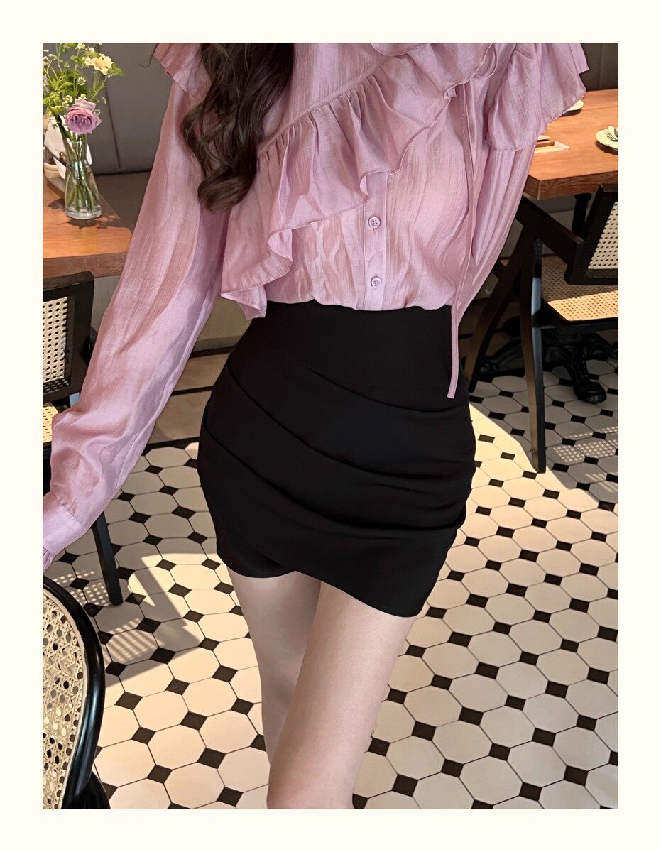 Hollin Irregular Sexy Black High Waist Short Skirt Women's Summer 2025 New One Step Skirt Skirt Hip Skirt