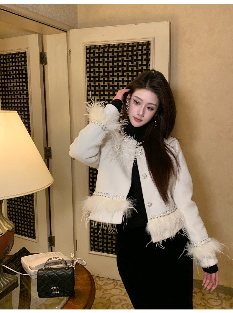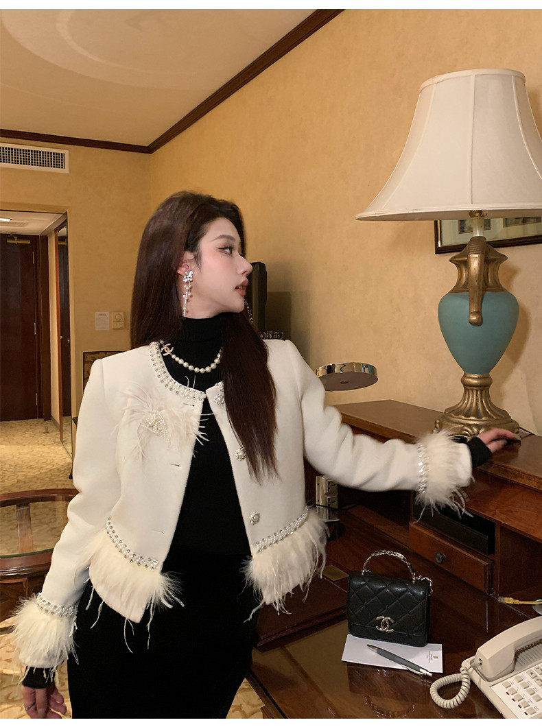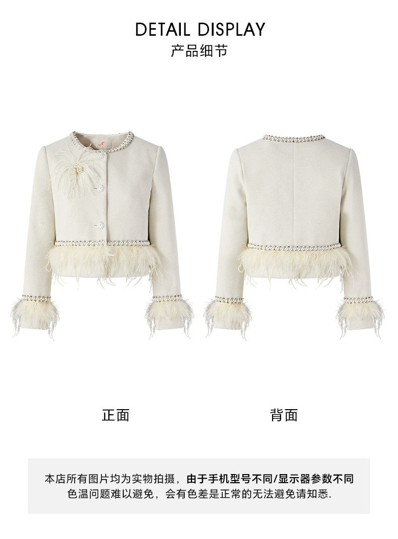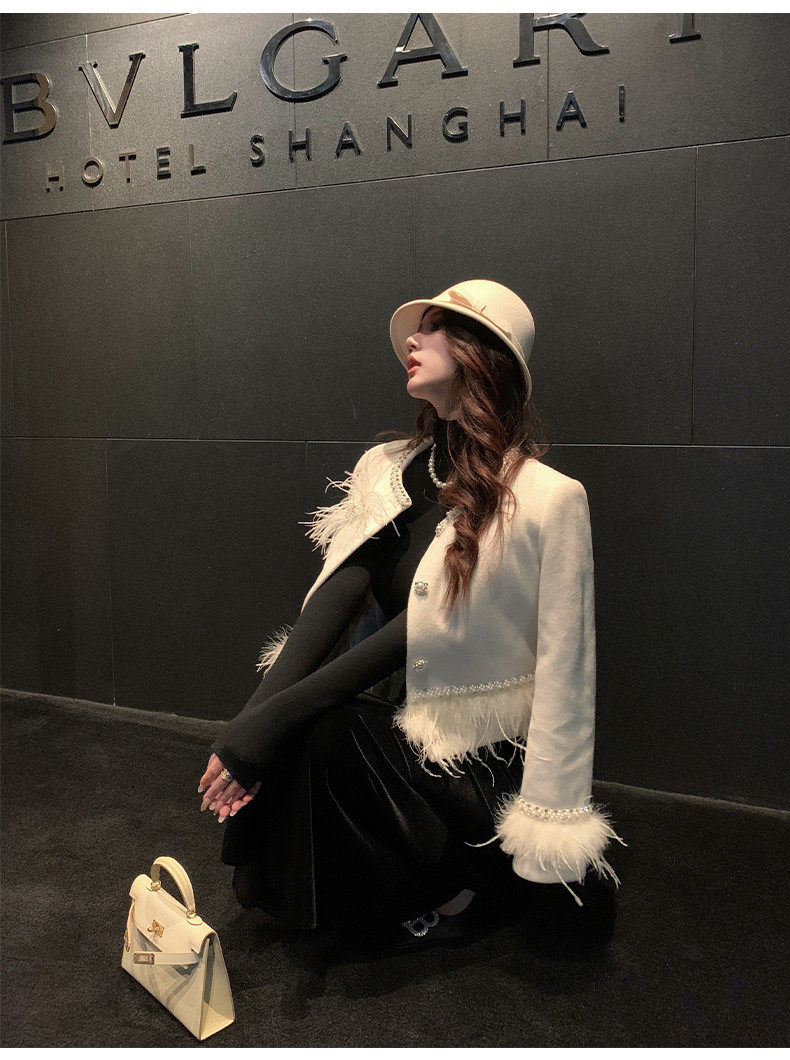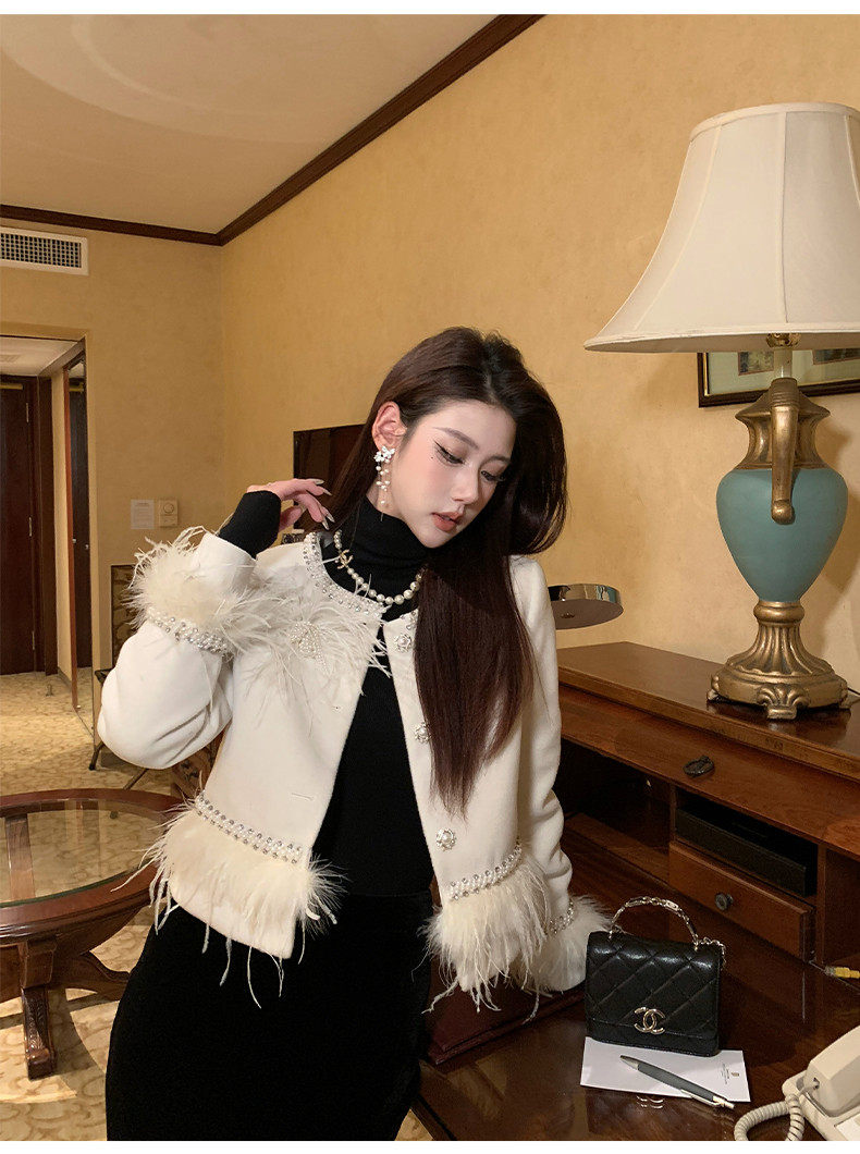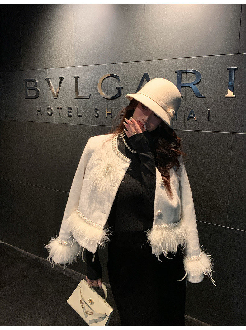 Hollinna Ostrich Feather Sleeve Design Small Fragrant Style Jacket Women's Autumn and Winter Short Heavy Industry High-Quality Thousand Gold Down