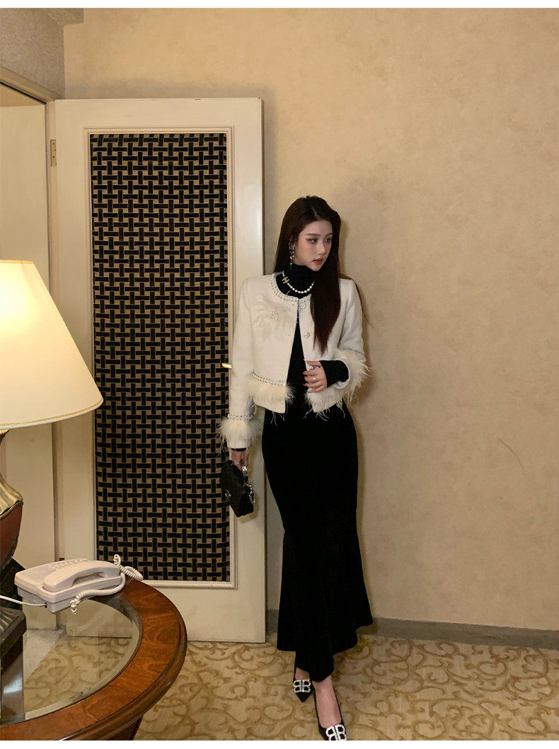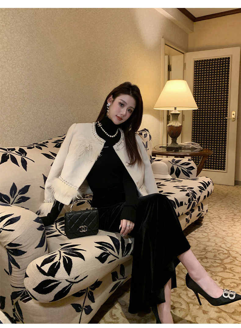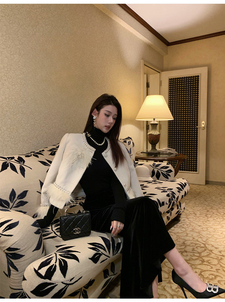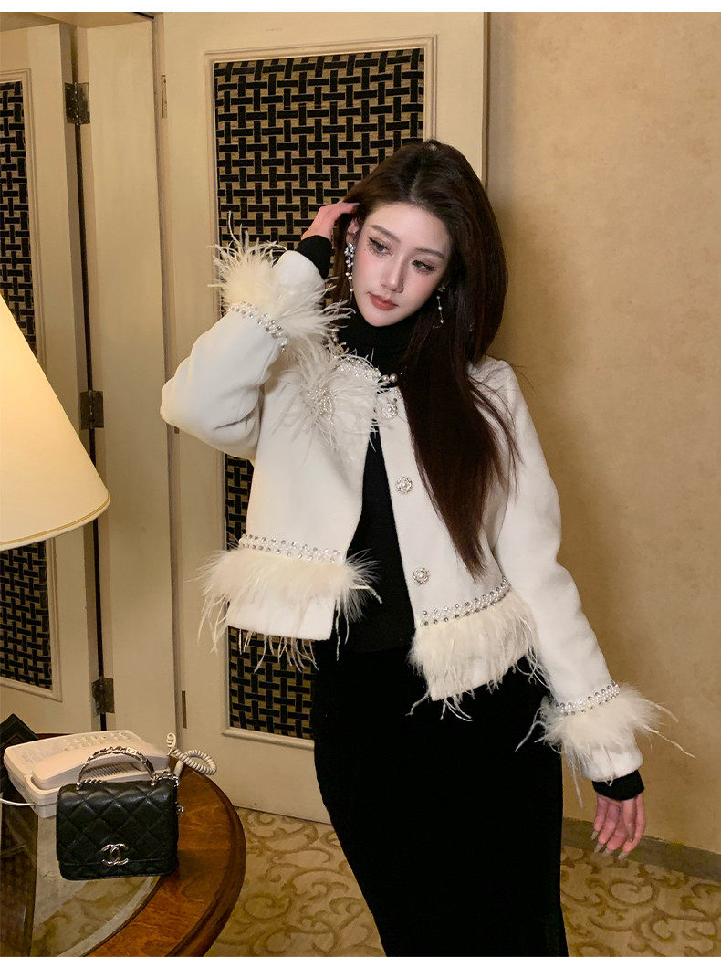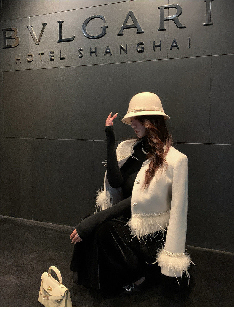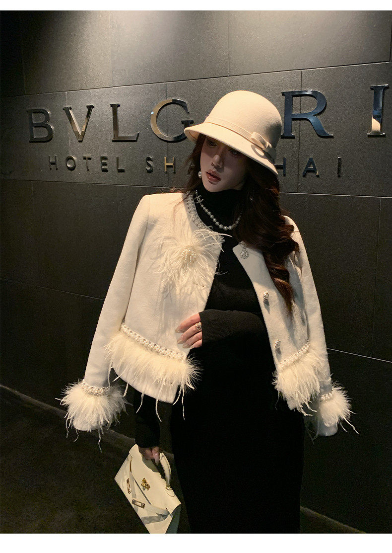 Hollinna Ostrich Feather Sleeve Design Small Fragrant Style Jacket Women's Autumn and Winter Short Heavy Industry High-Quality Thousand Gold Down