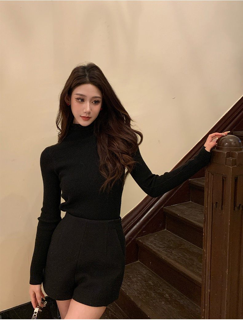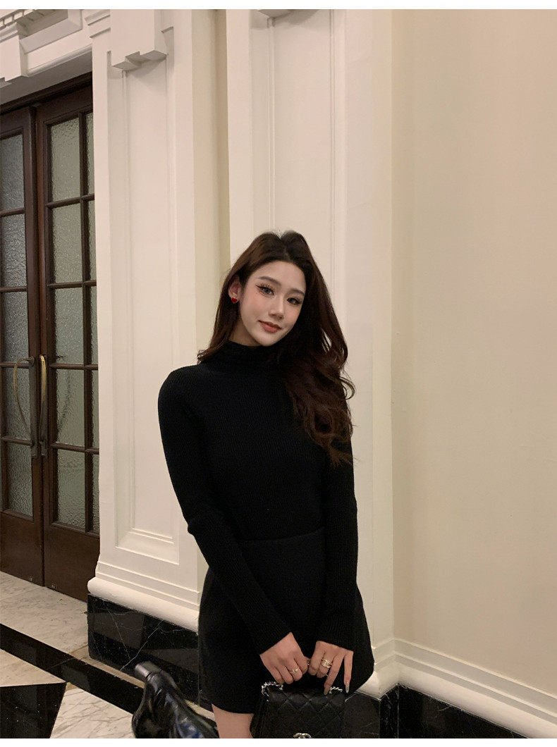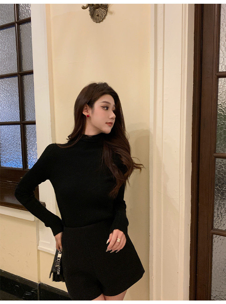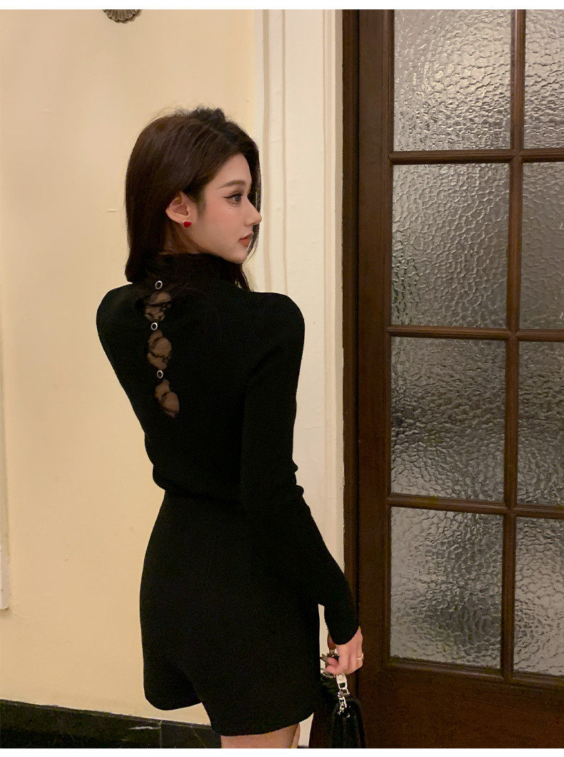 Hollinna Elegant Lace Patchwork Knit Sweater for Women, Autumn/Winter 2025 New Style, Waist-Cinching Slim-Fit Base Layer Top