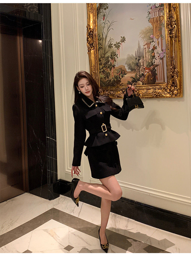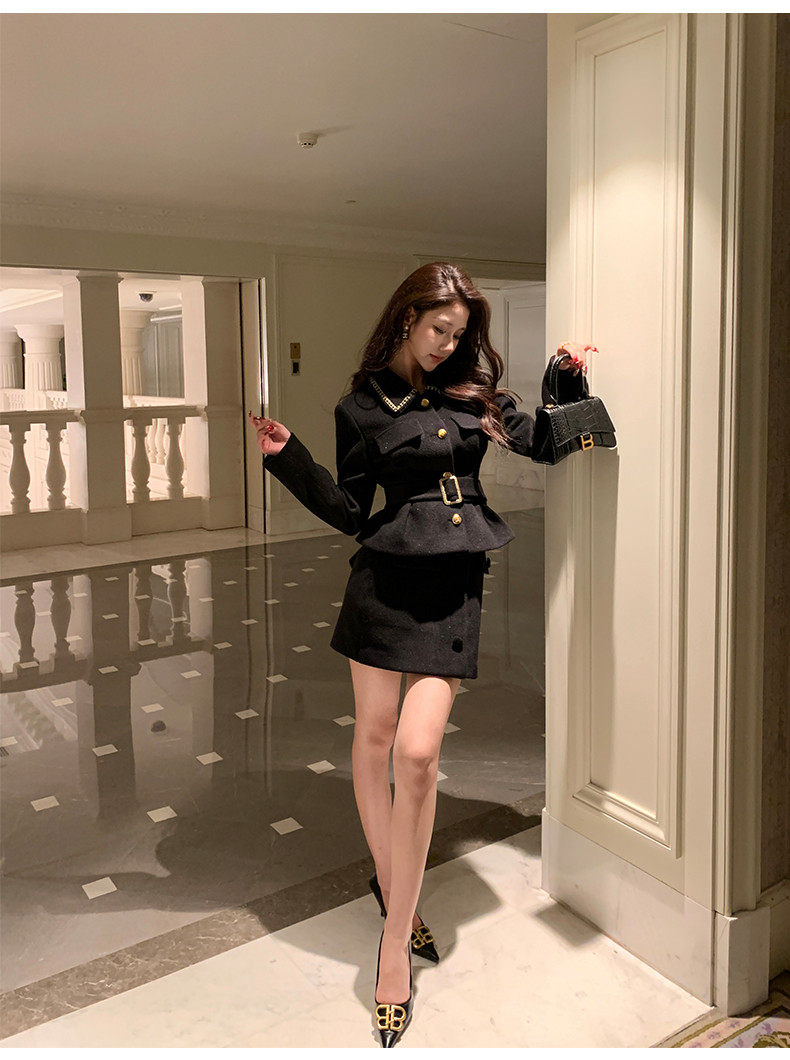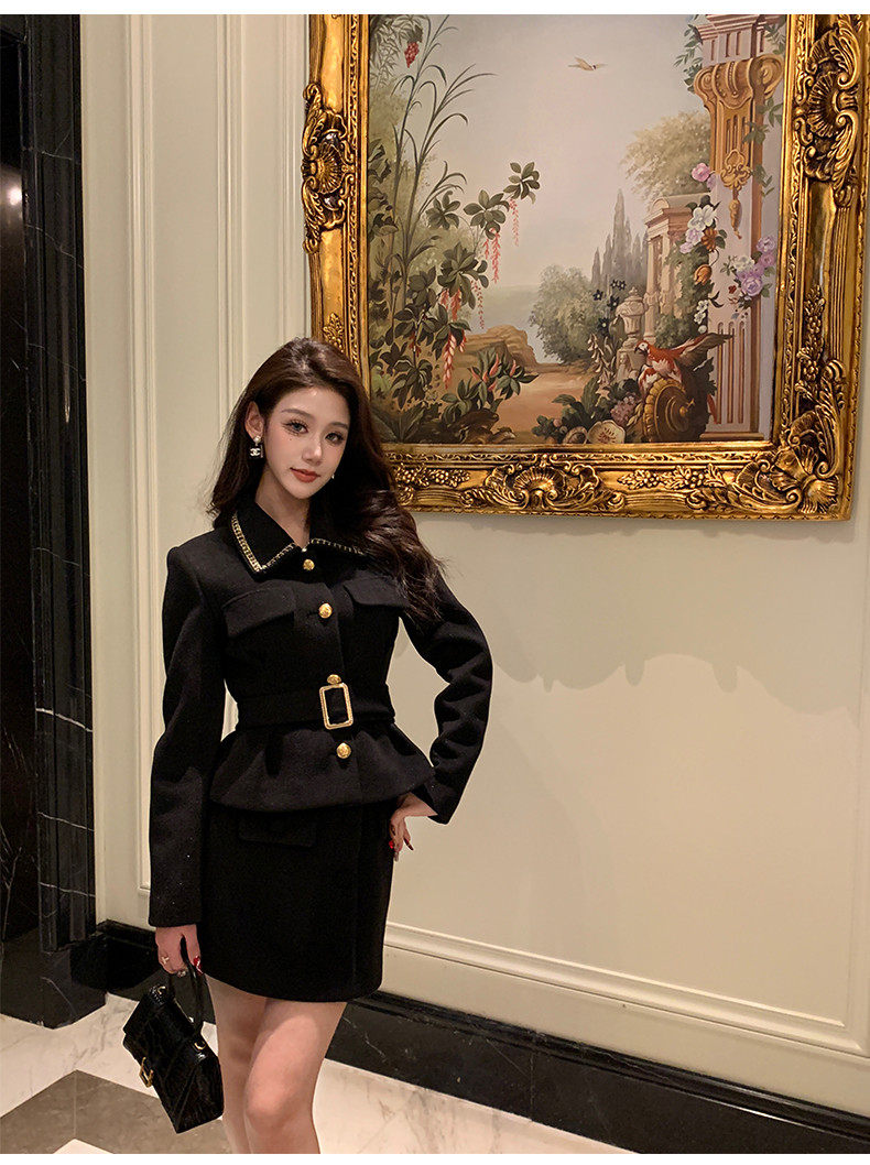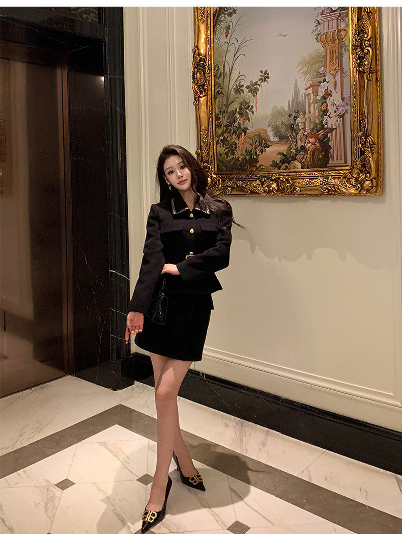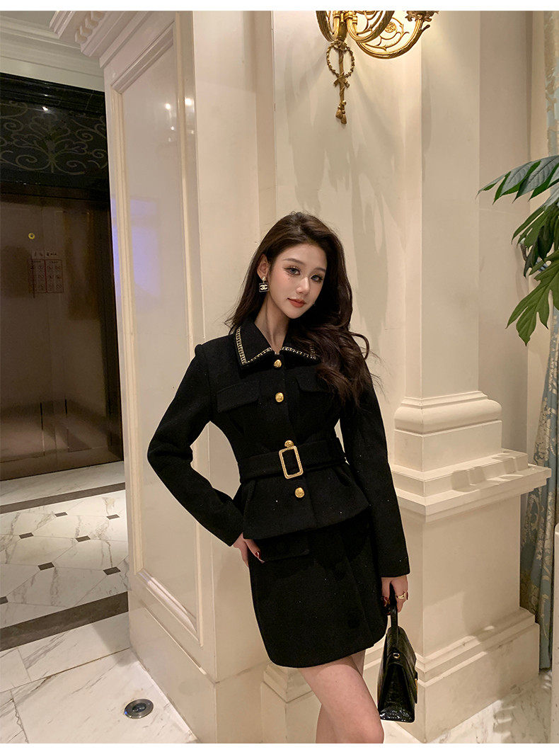 Hollinna Square-Neck Woolen Suit Set for Women, Autumn and Winter 2025 New Style, Commuter Chic Style, Pencil Skirt Two-Piece Set