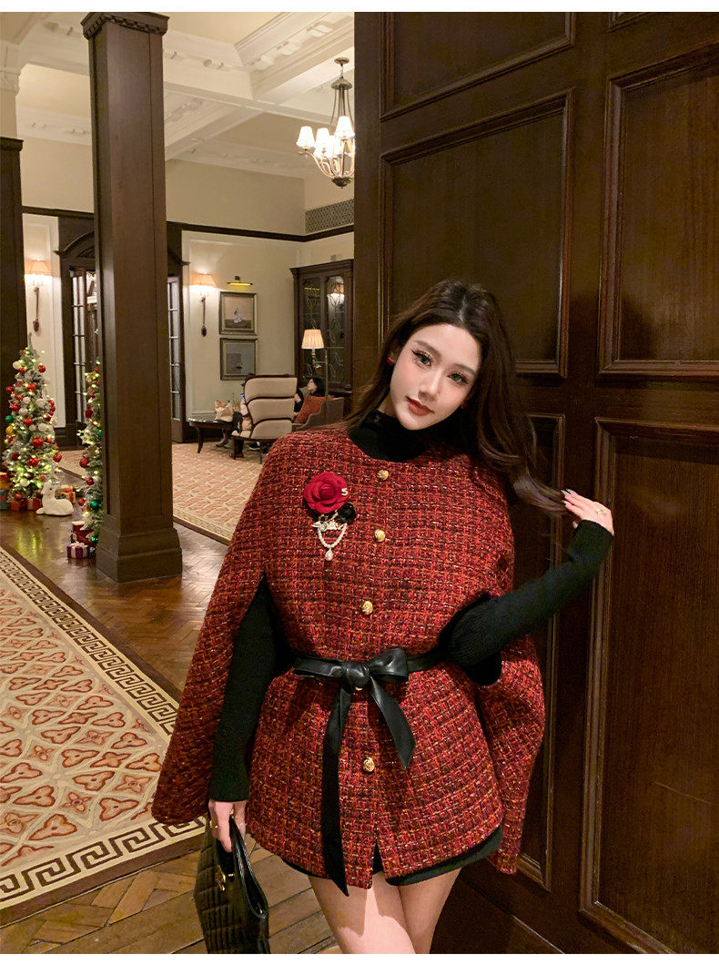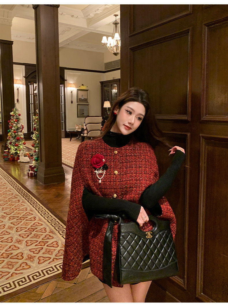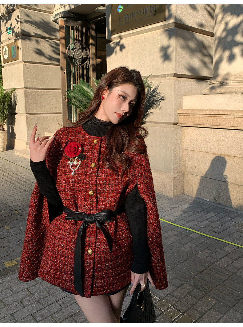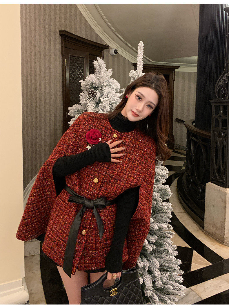Hollin Tweed Cape Coat for Women, Autumn and Winter 2025 New Design, High-End Mid-Length Woolen Coat