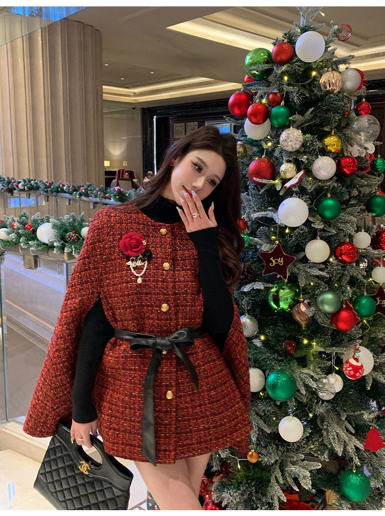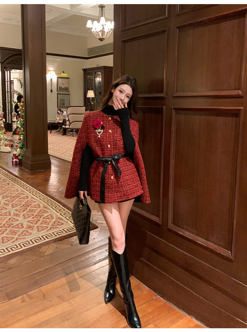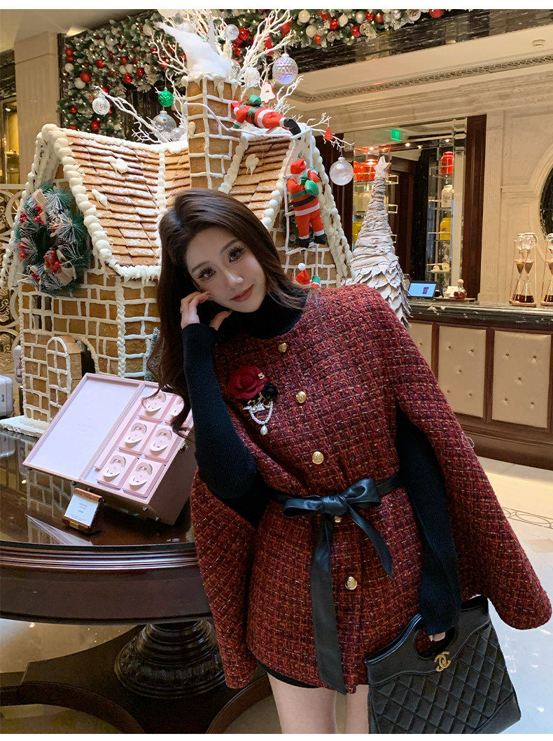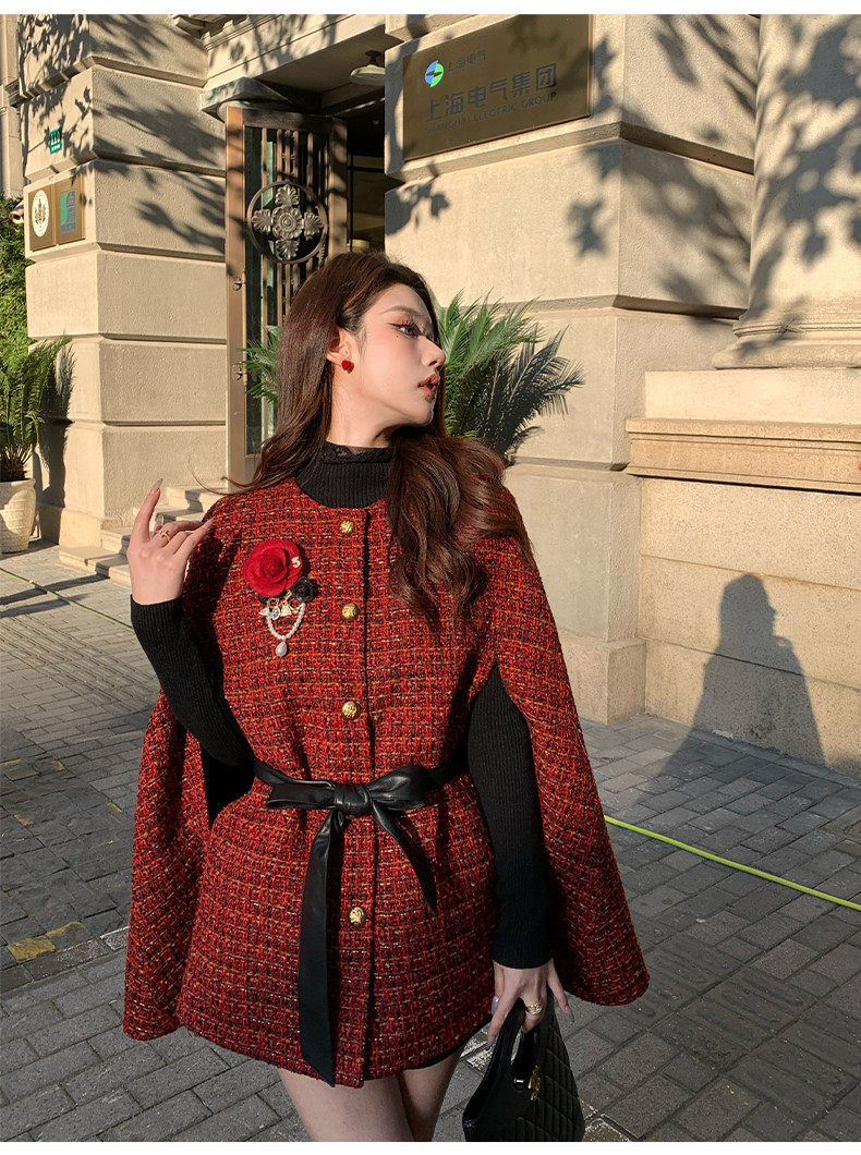 Hollin Tweed Cape Coat for Women, Autumn and Winter 2025 New Design, High-End Mid-Length Woolen Coat