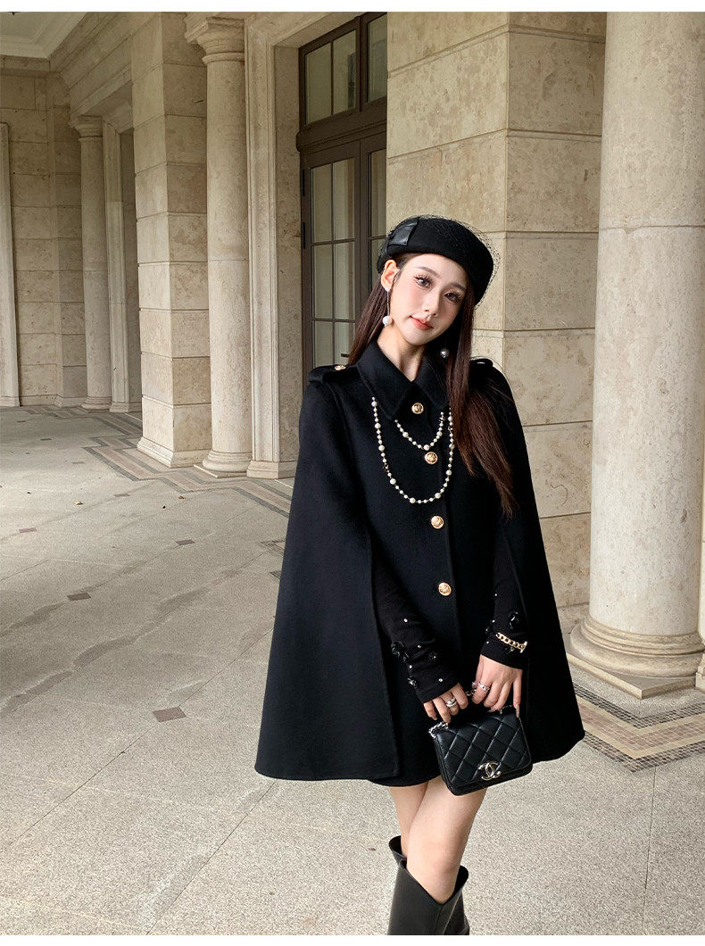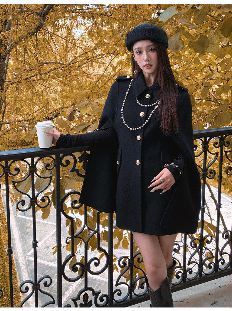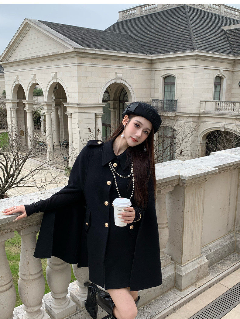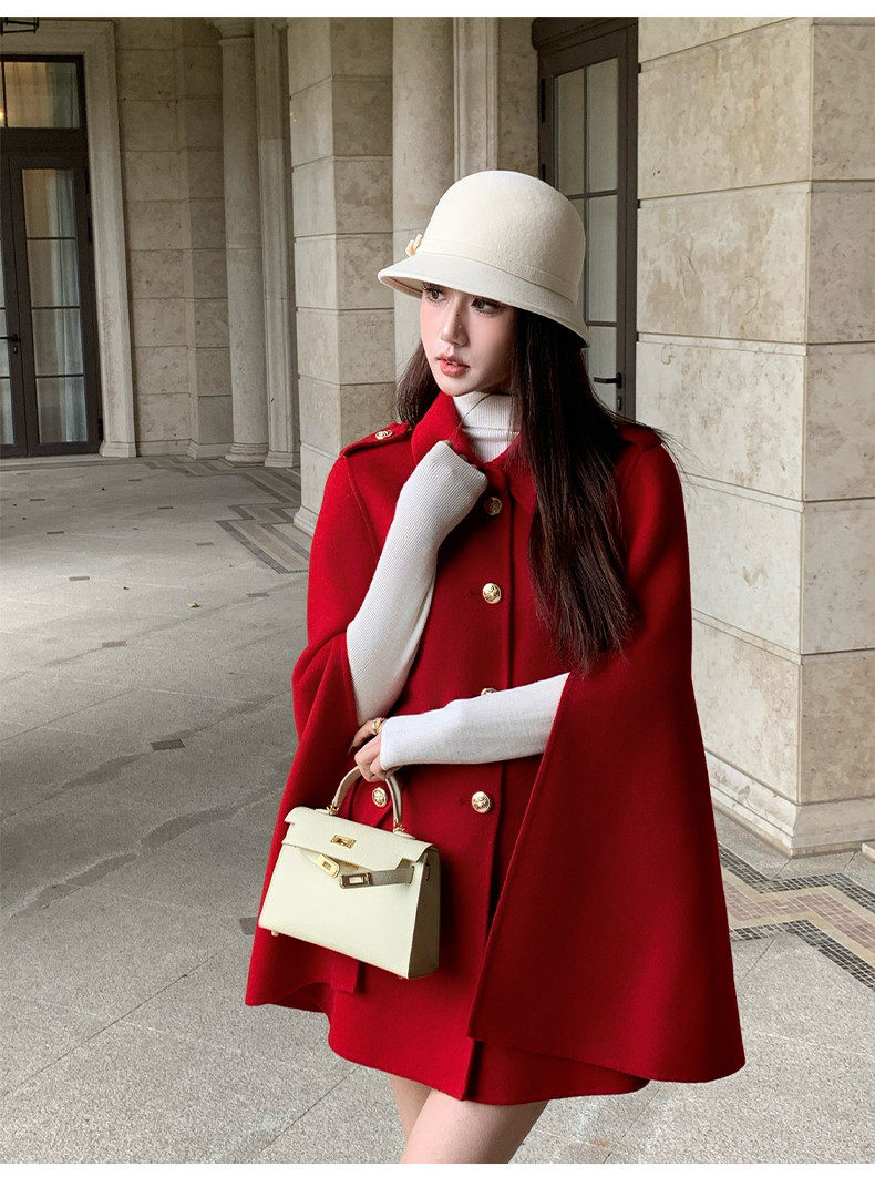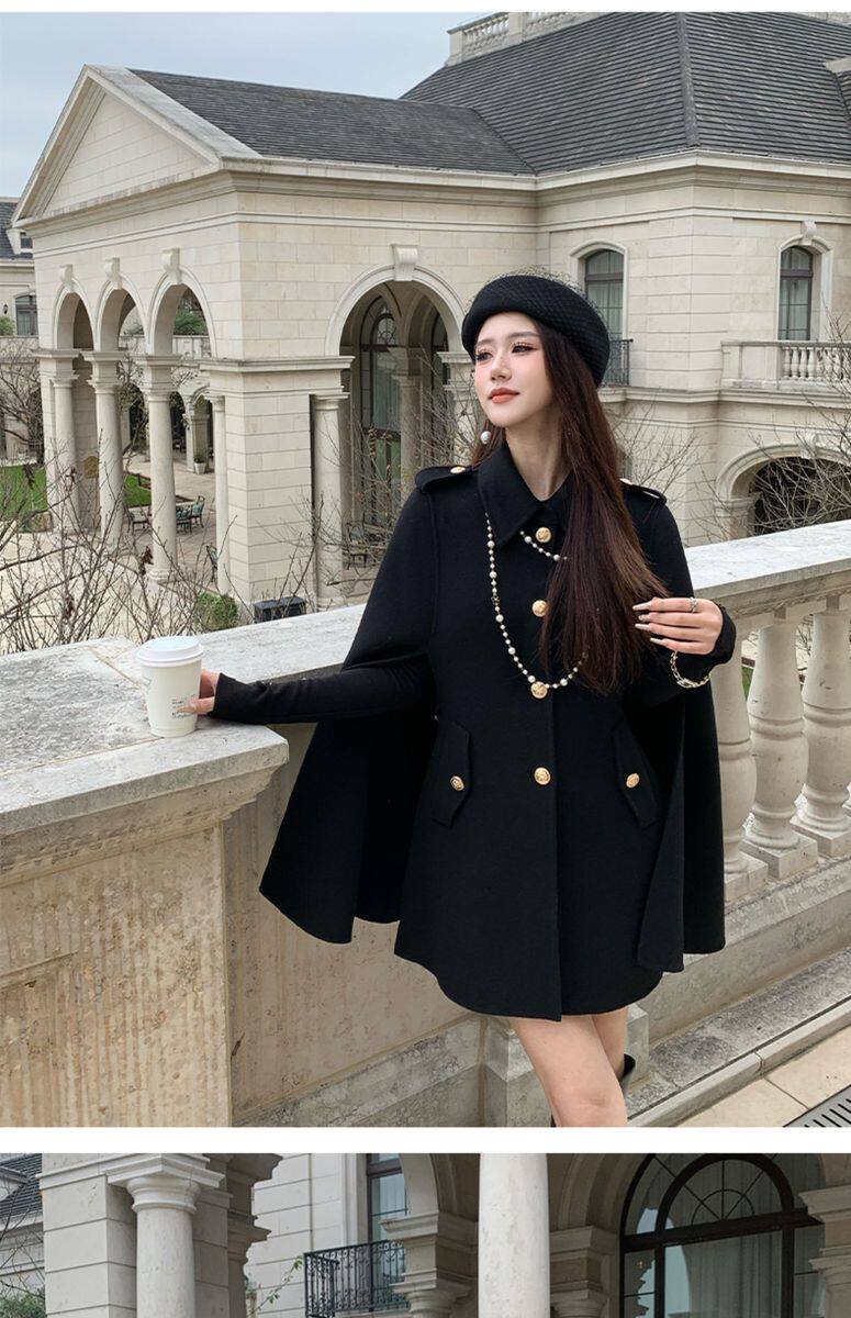 Hollinna Rich Girl Style 100% Wool Cape Coat Double-Sided Woolen Coat for Women Autumn and Winter 2025 New Style