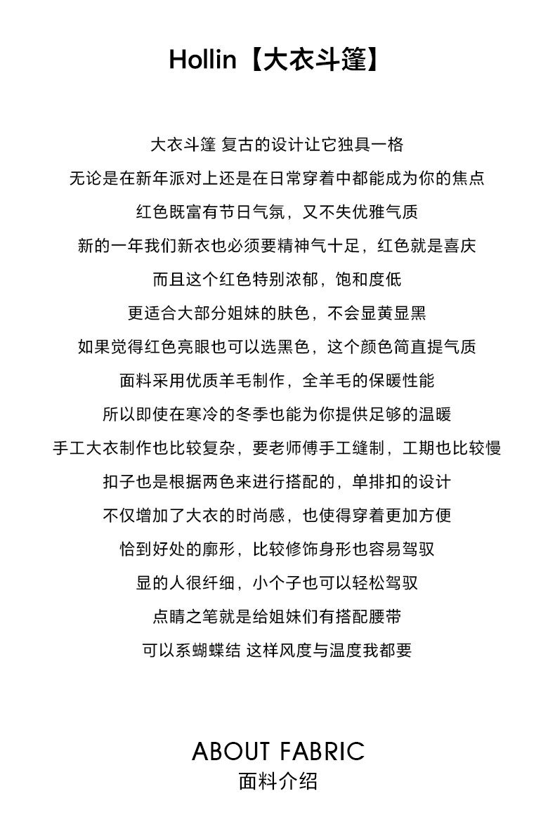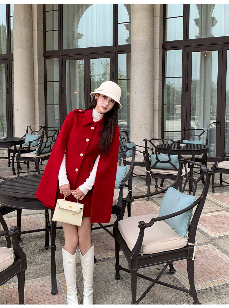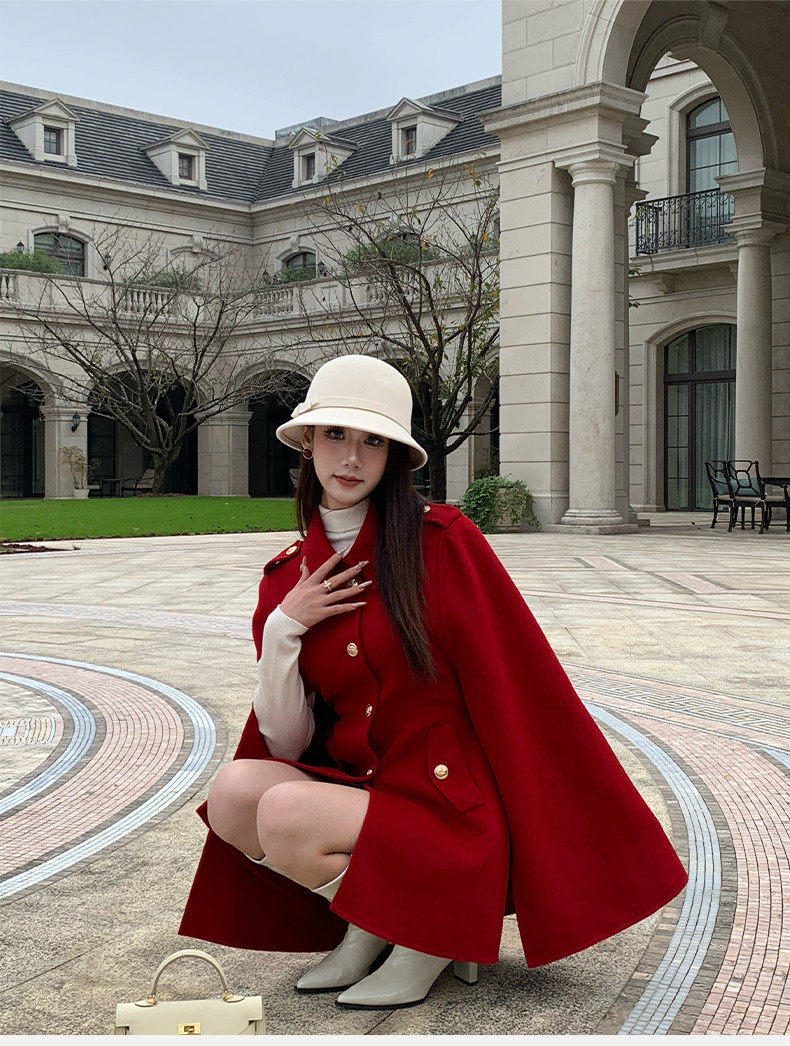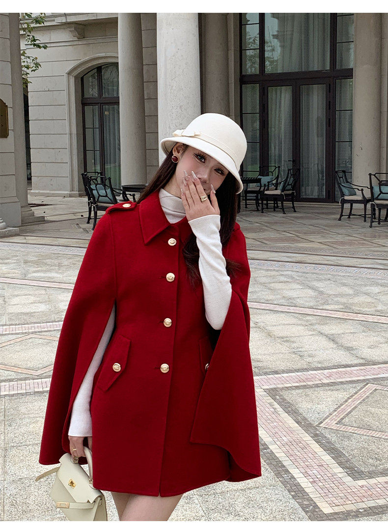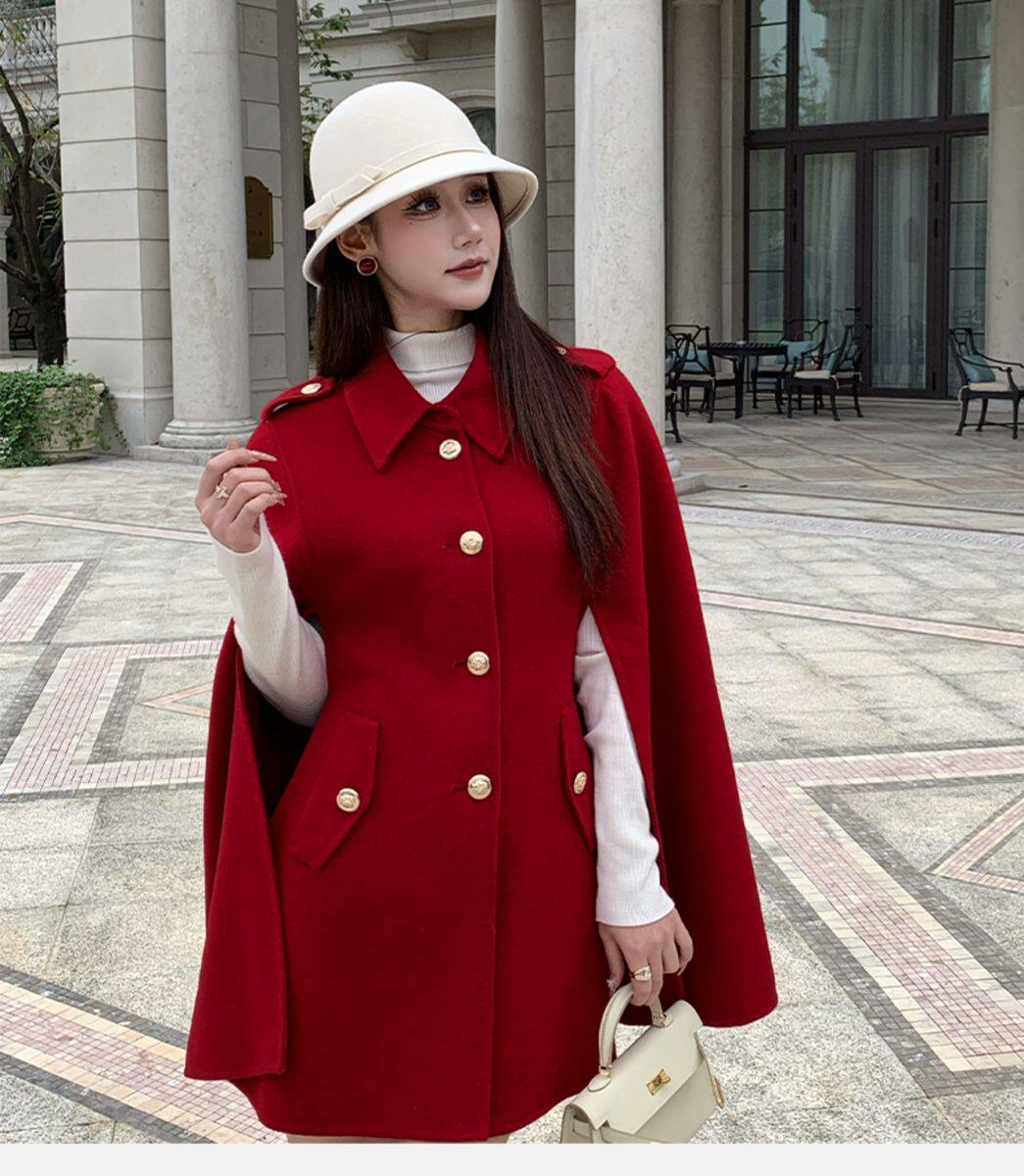 Hollinna Rich Girl Style 100% Wool Cape Coat Double-Sided Woolen Coat for Women Autumn and Winter 2025 New Style