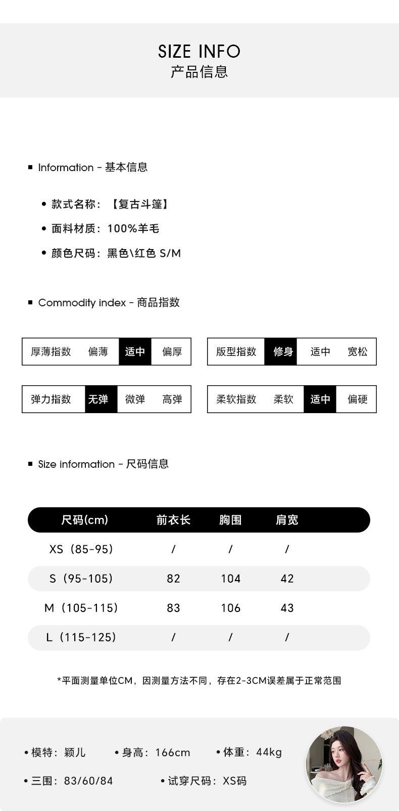 Size (cm) 42 44 46 48 50