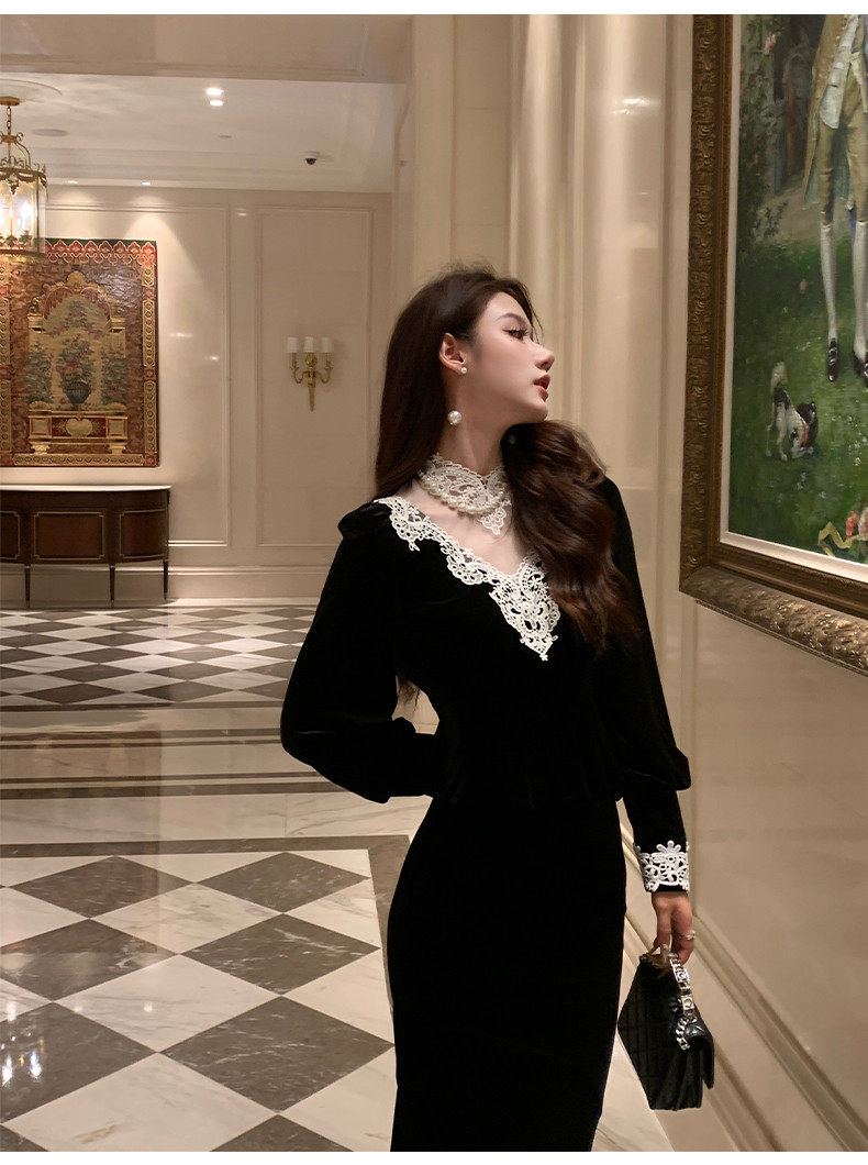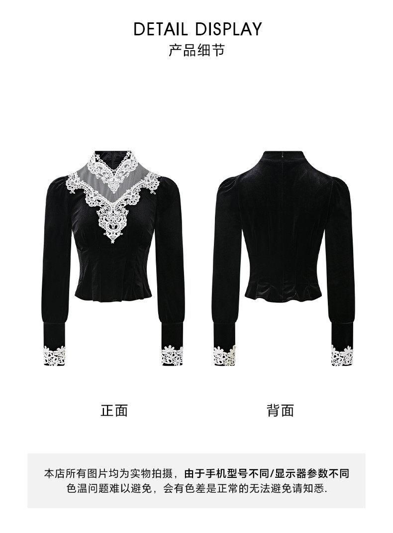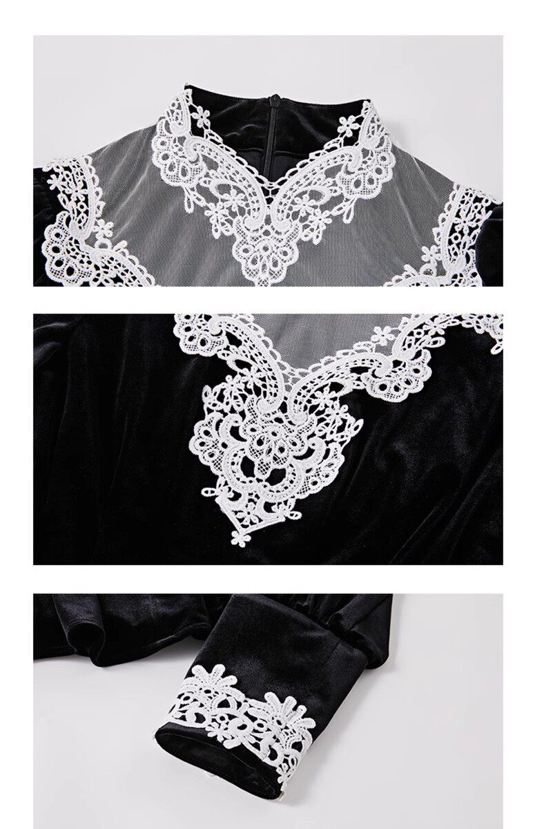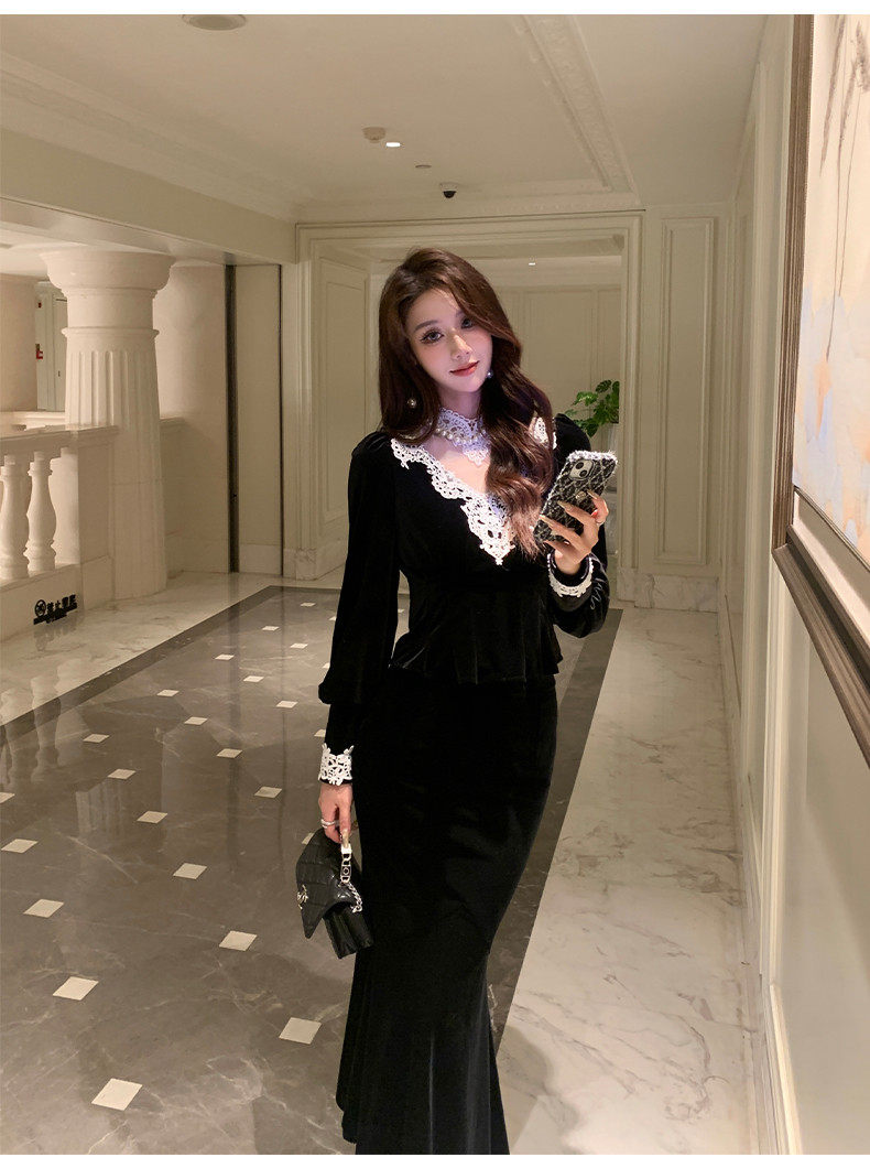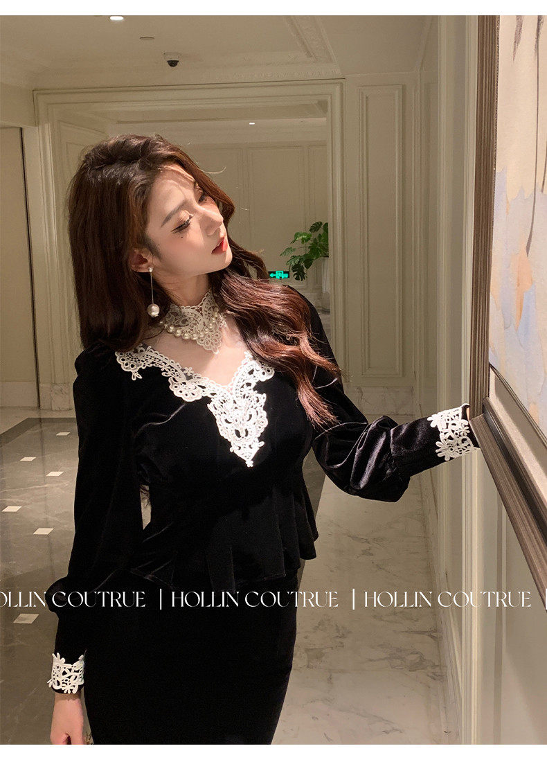 Hollinba Lace Trim V-Neck Velvet Unique Top for Women, Autumn/Winter 2025 New Style Inner Layer Base Shirt