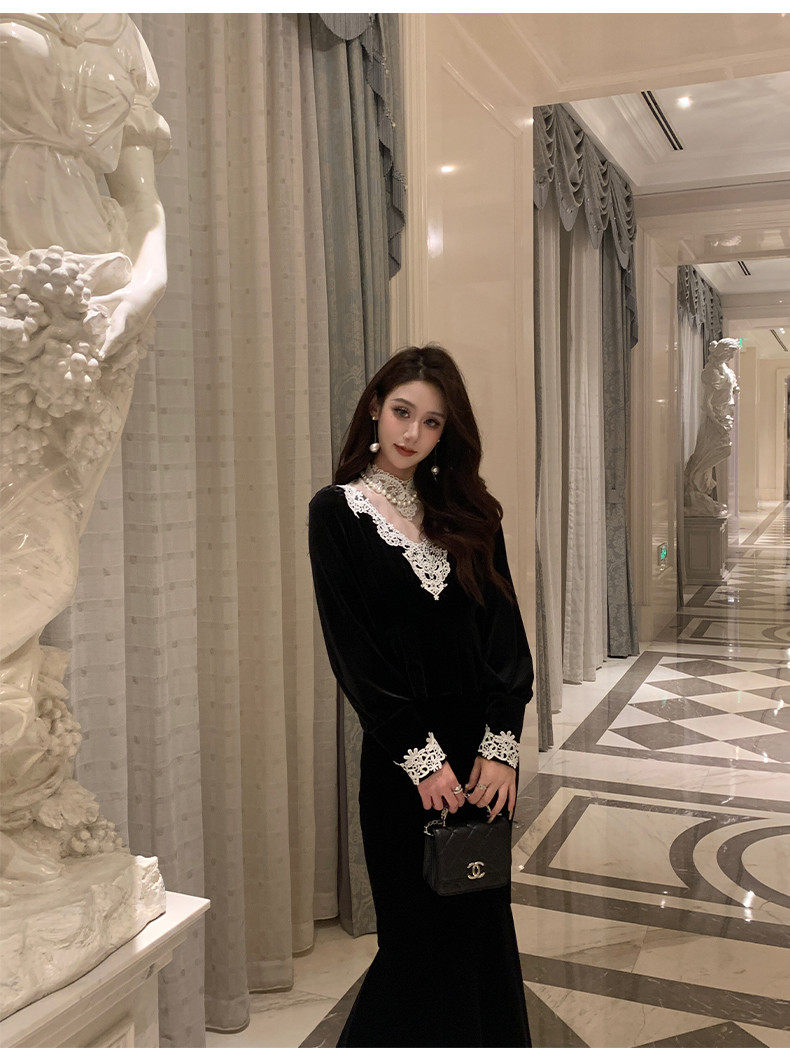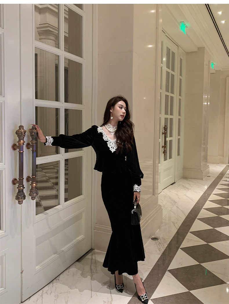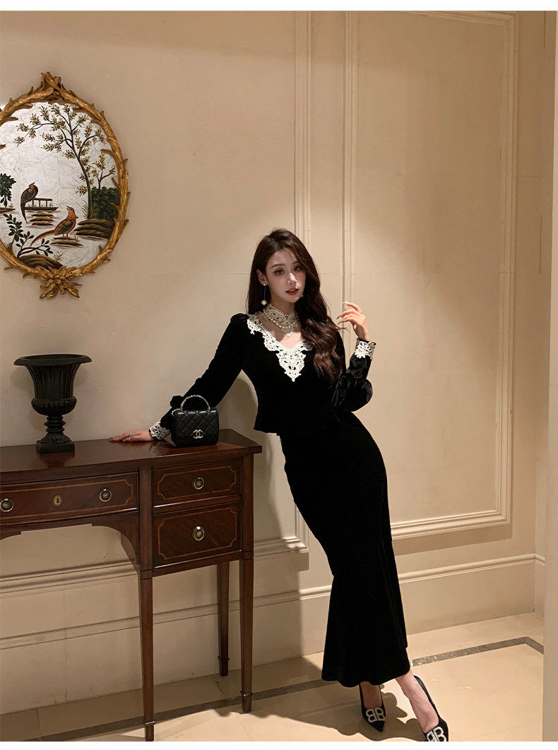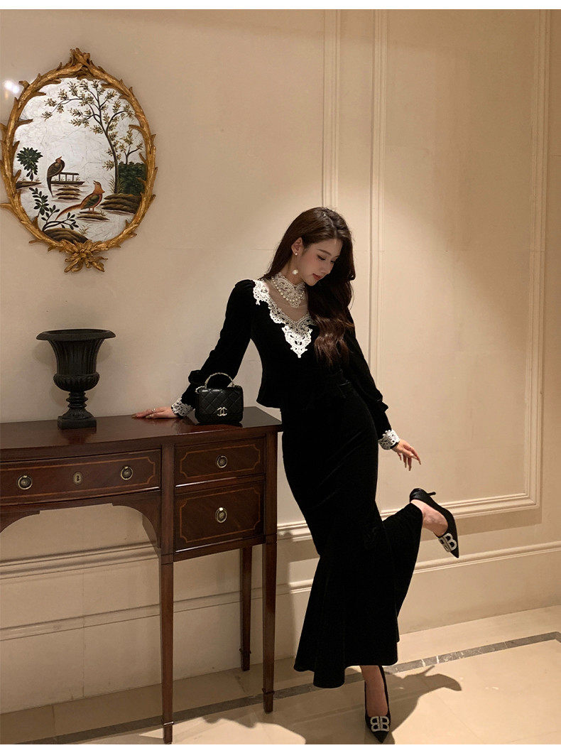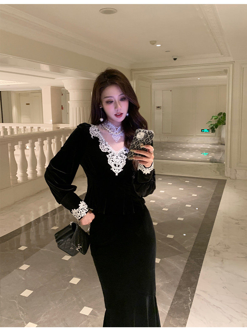 Hollinba Lace Trim V-Neck Velvet Unique Top for Women, Autumn/Winter 2025 New Style Inner Layer Base Shirt