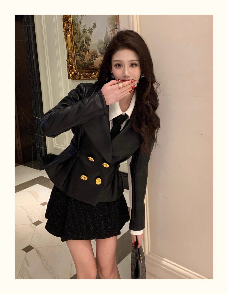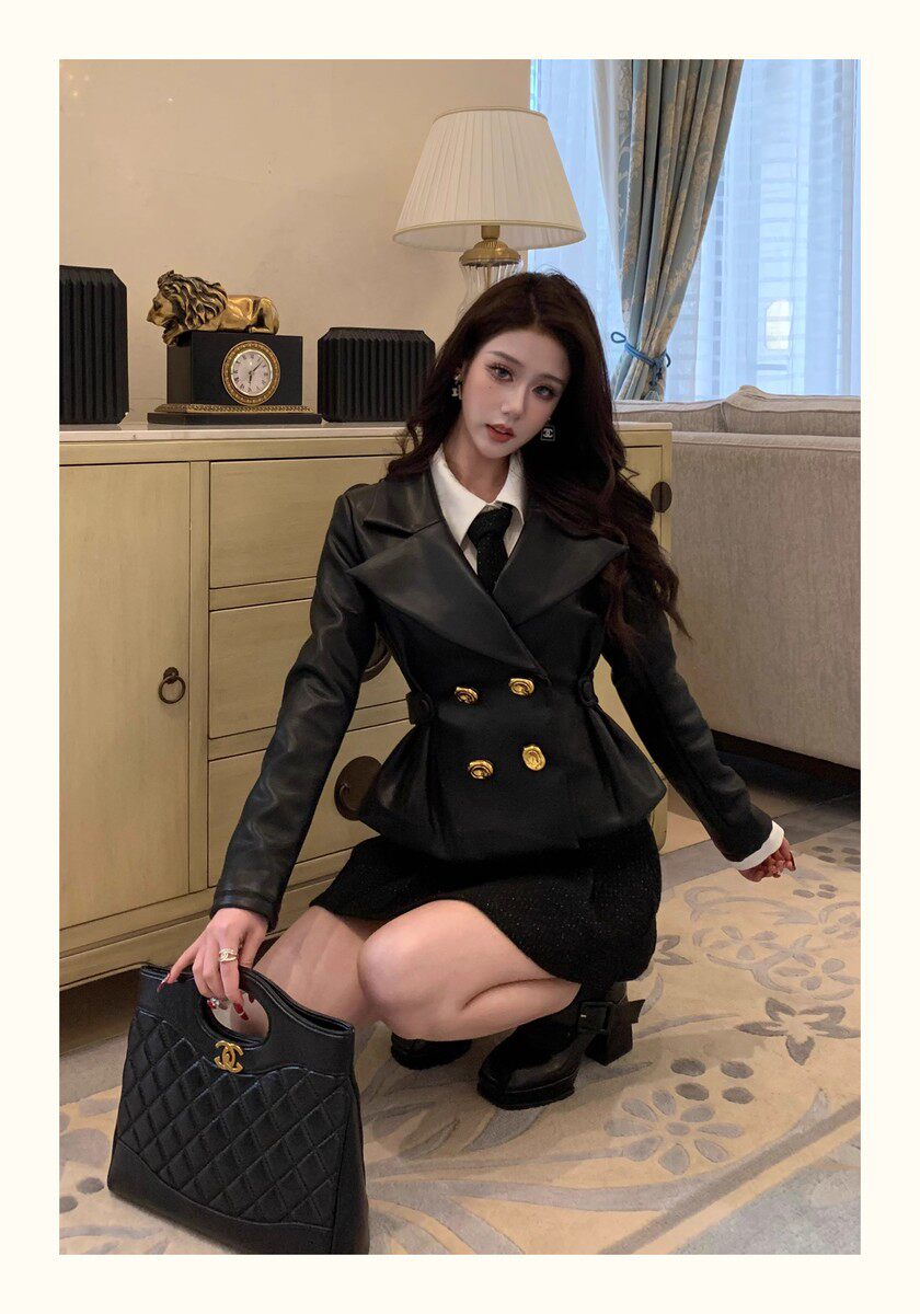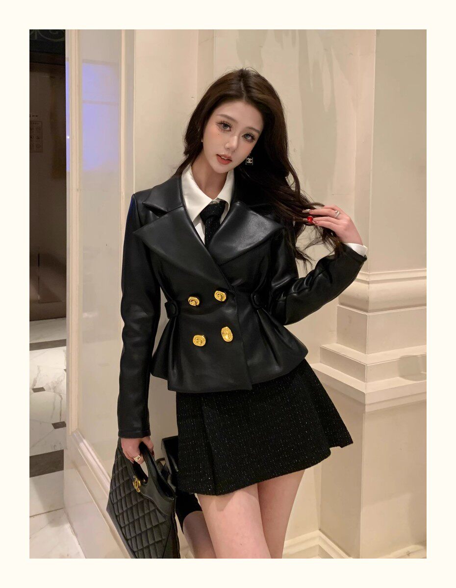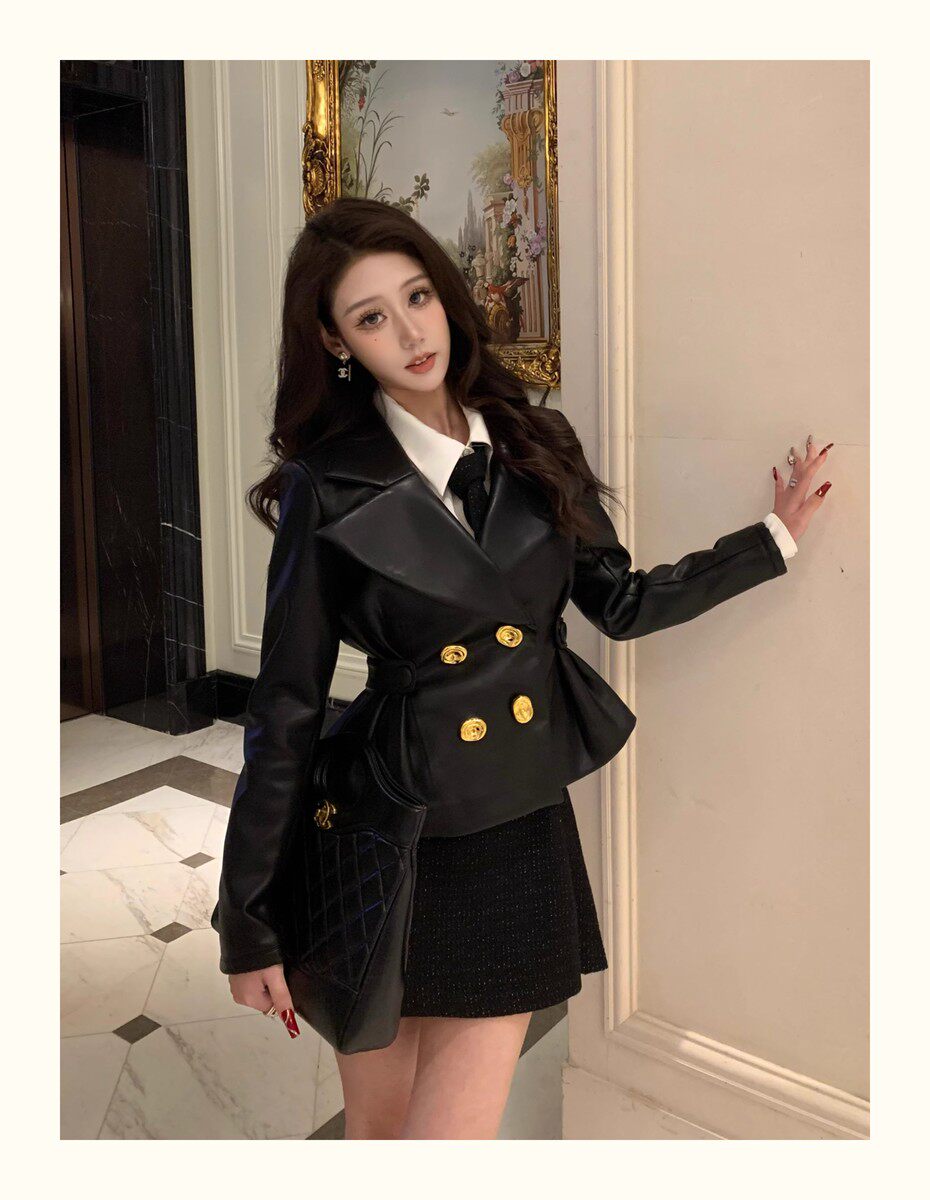 Hollinna Stylish Black Leather Jacket for Women, Autumn/Winter 2025 New Style, Waist-Cinching, Slimming, Versatile, High-End Biker Jacket