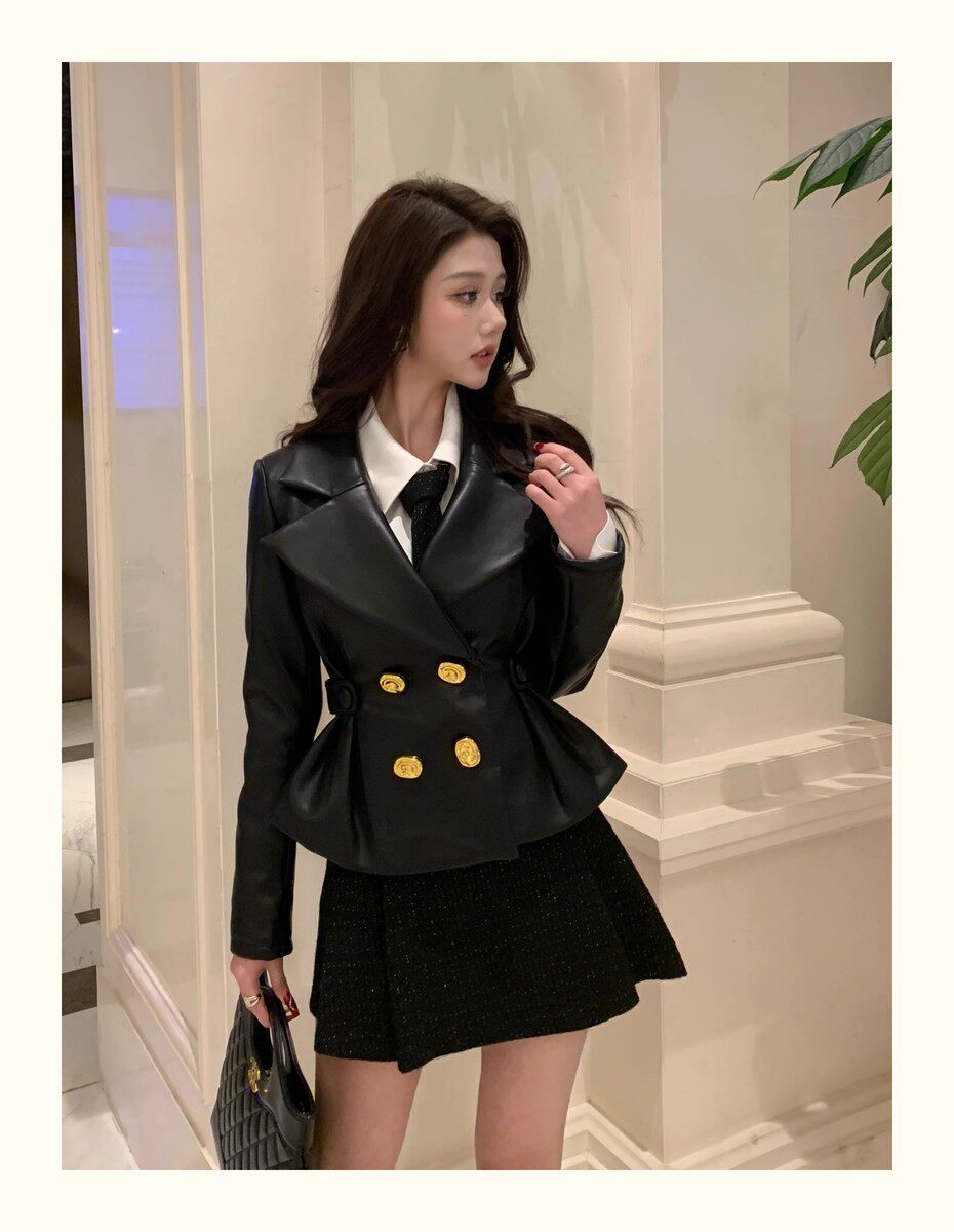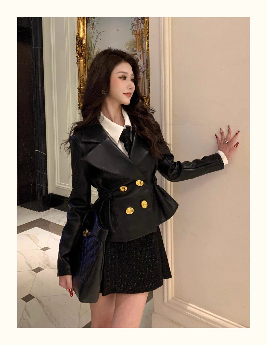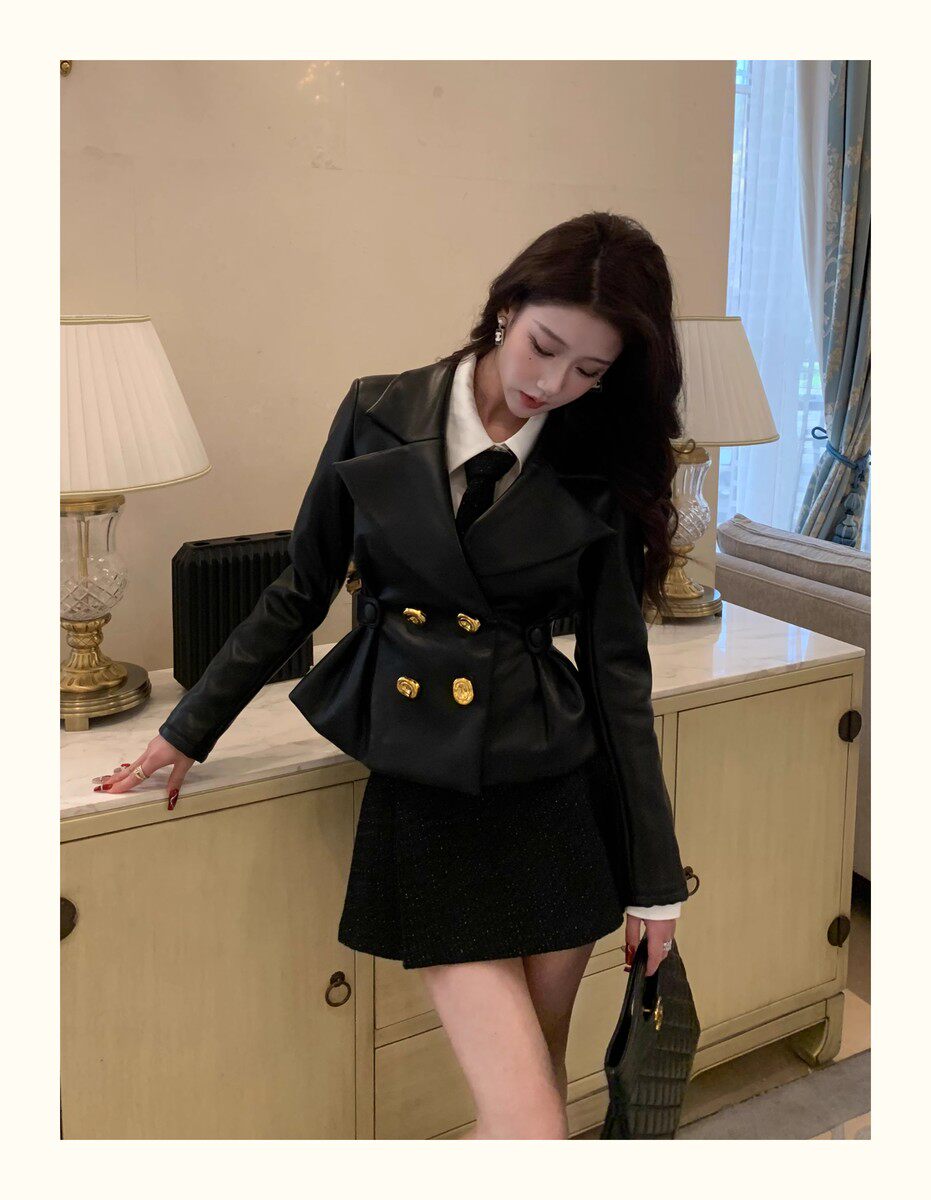 Hollinna Stylish Black Leather Jacket for Women, Autumn/Winter 2025 New Style, Waist-Cinching, Slimming, Versatile, High-End Biker Jacket