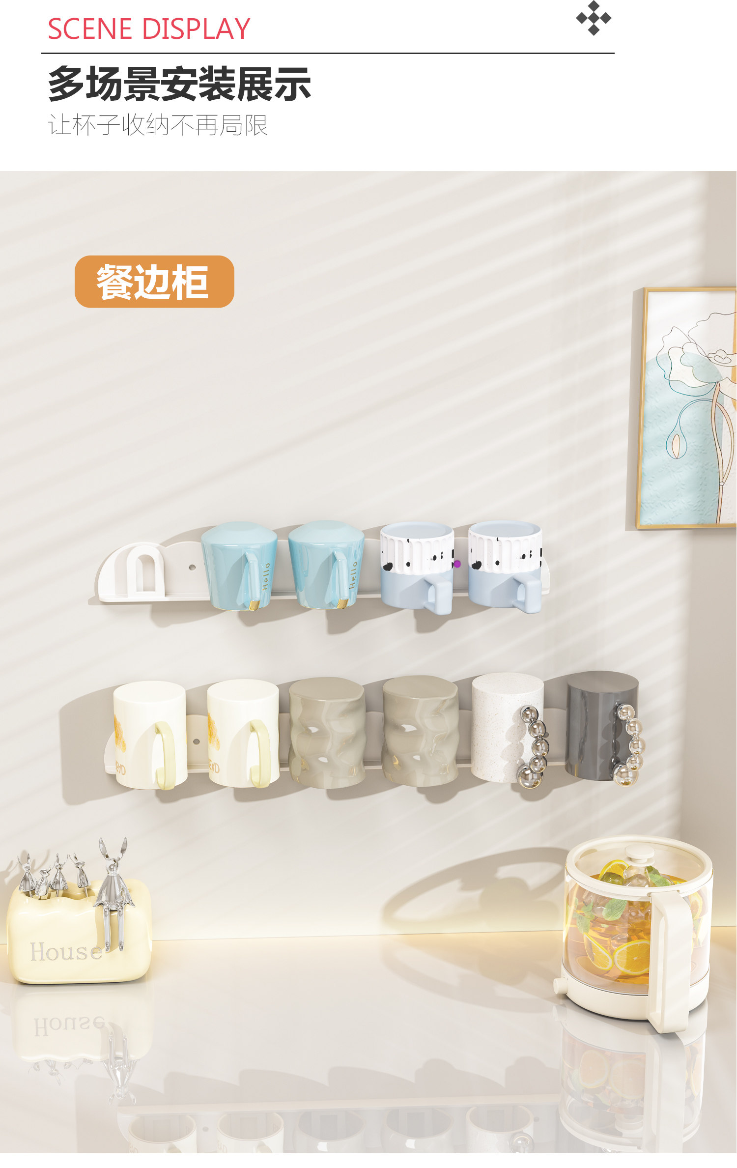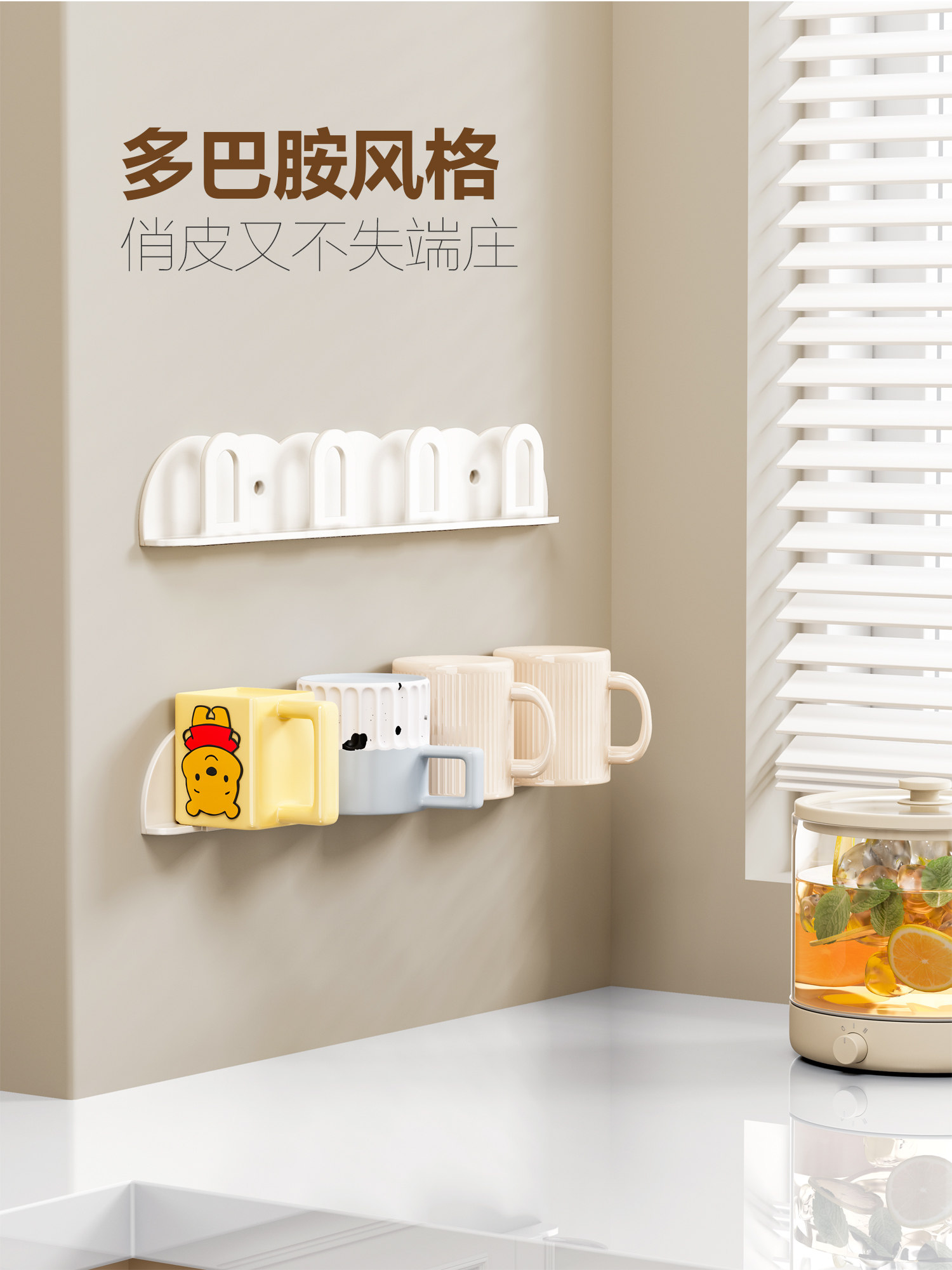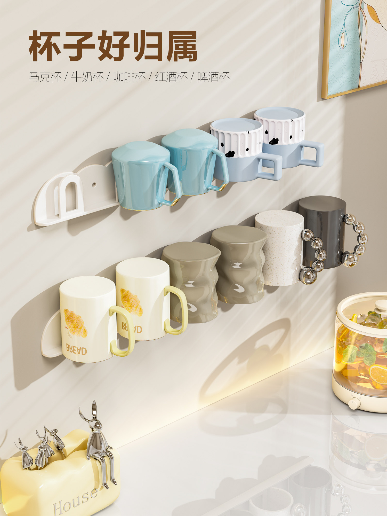Cup Holder Upside-Down Cup Storage Rack Household Cup Rack Kitchen Water Cup Storage Rack High-Value Mug Wall-Mounted