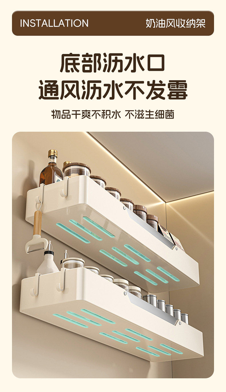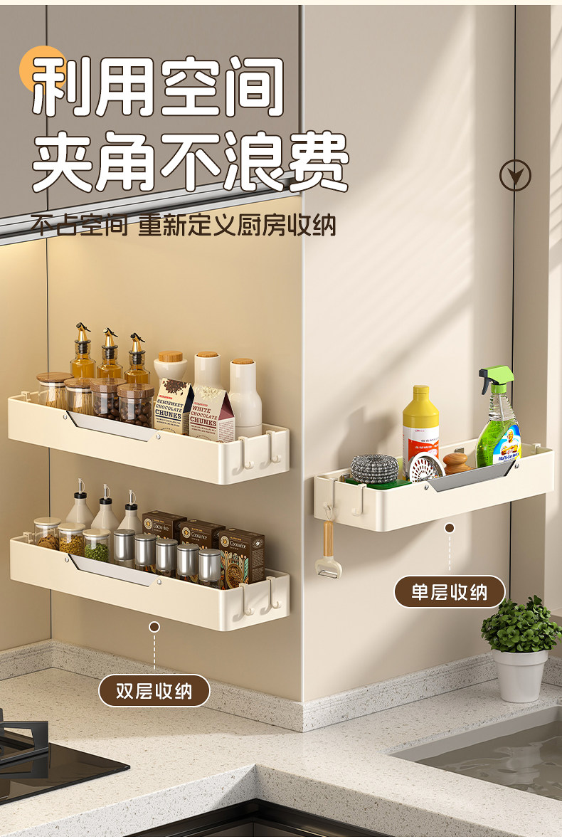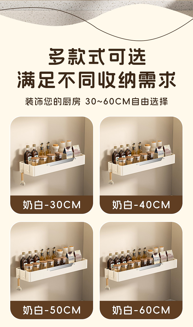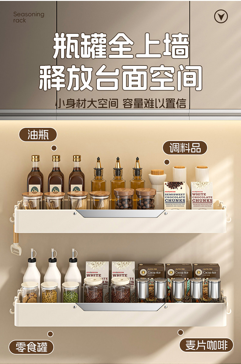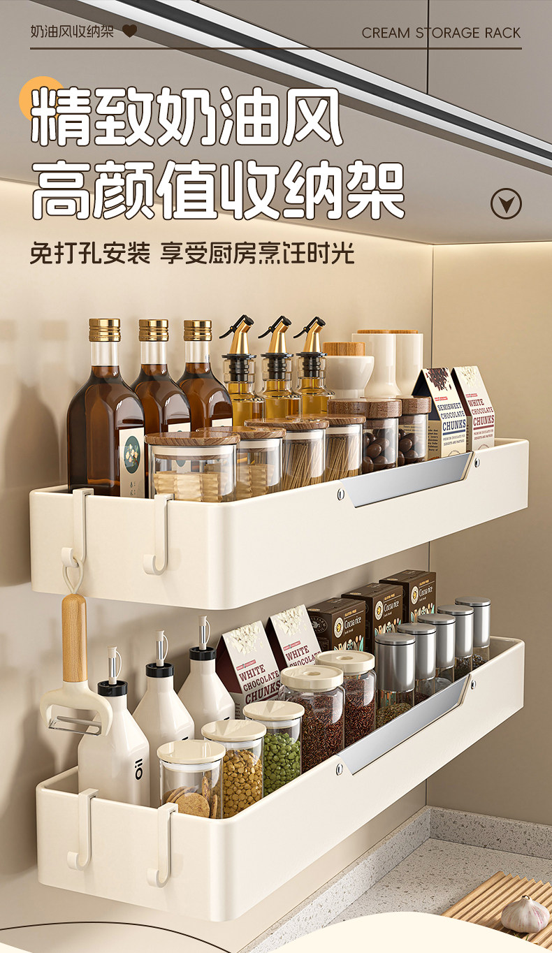 Milky White Kitchen Seasoning Storage Rack Without Punching Multi-Functional Wall-Mounted Bottles and Jars Salt Sauce Vinegar Storage Rack
