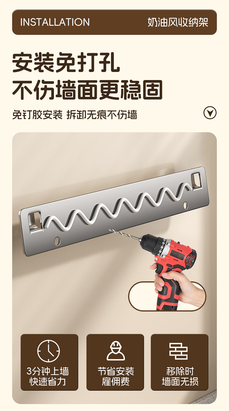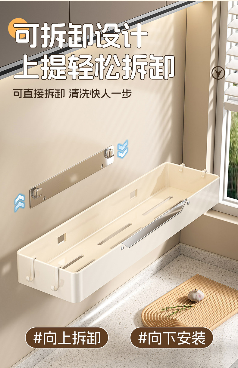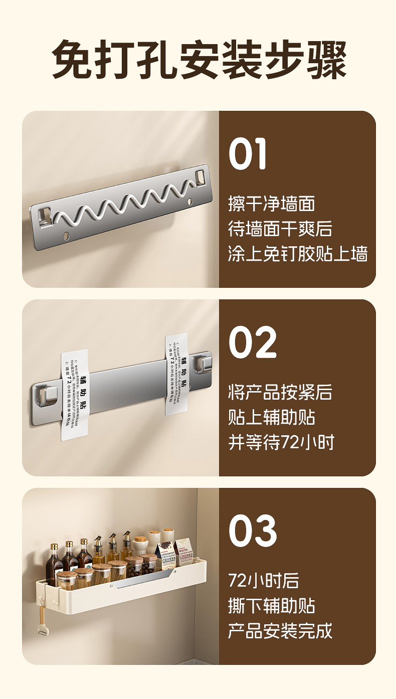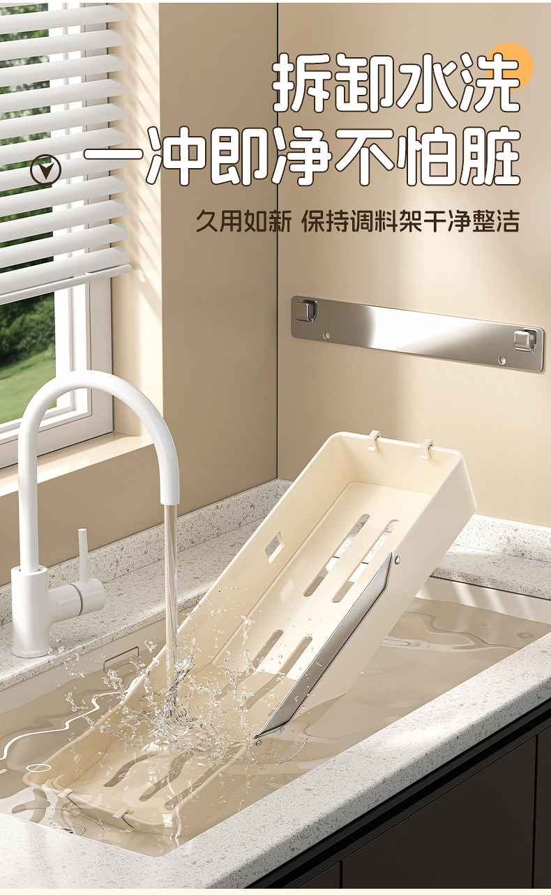 Milky White Kitchen Seasoning Storage Rack Without Punching Multi-Functional Wall-Mounted Bottles and Jars Salt Sauce Vinegar Storage Rack