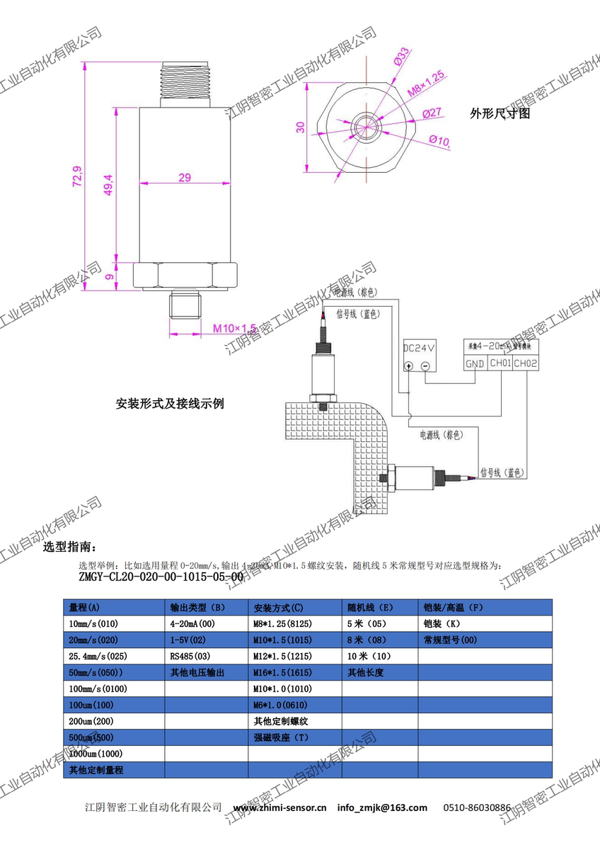 Zm-Cl20/T2015 Intelligent Integrated Vibration Transmitter Vibration Sensor Vibration Measurement Probe Seismology Manufacturer