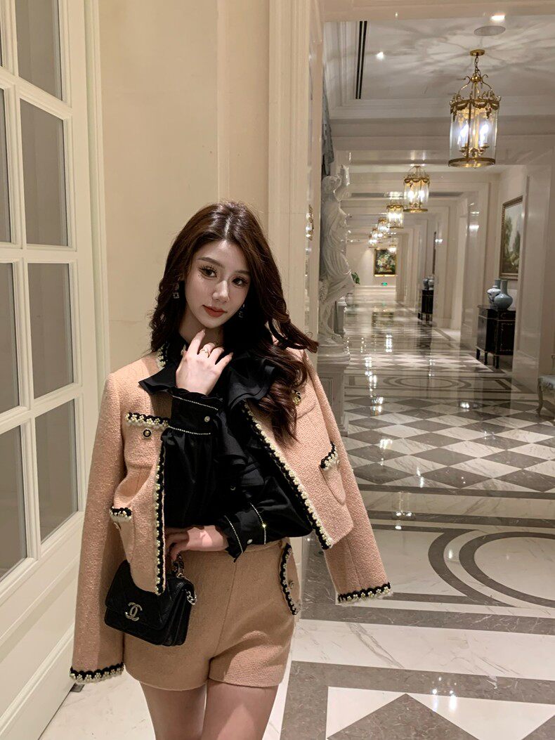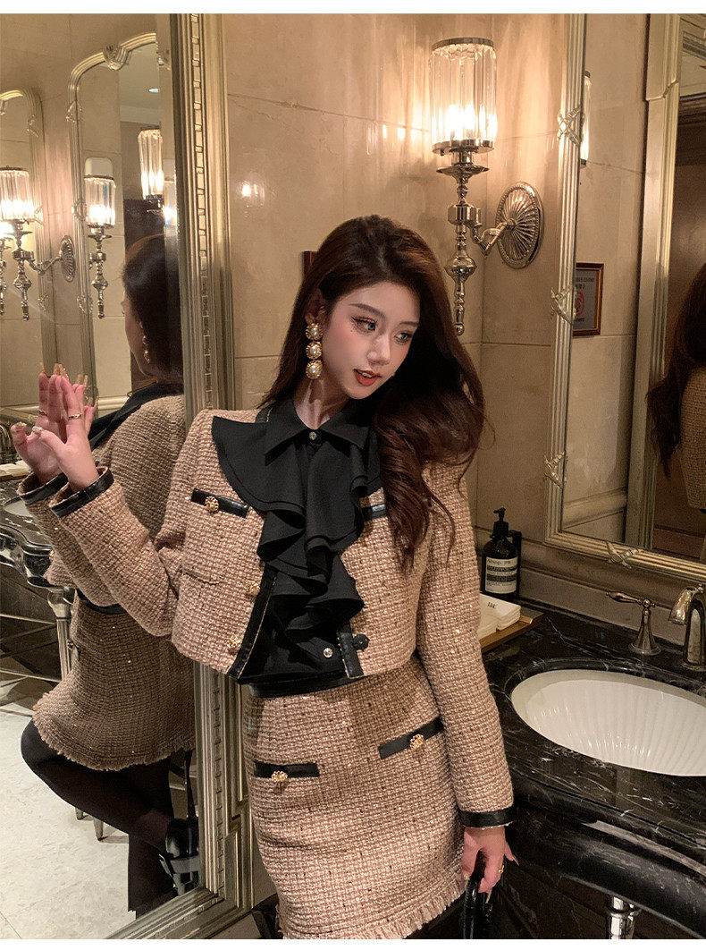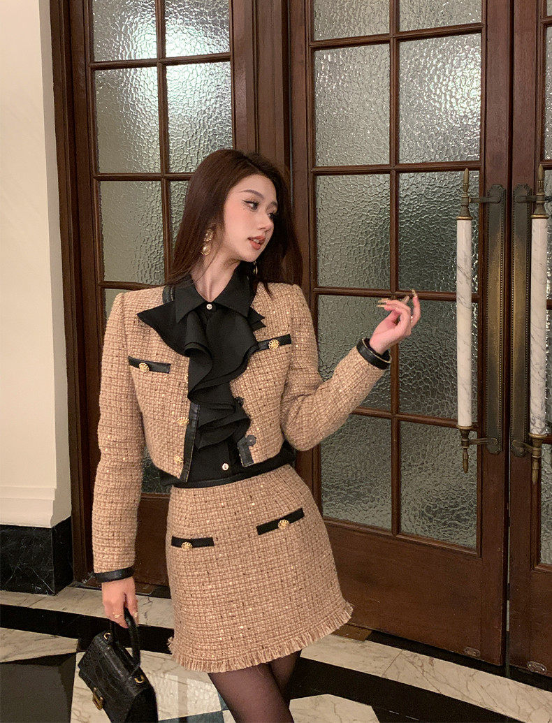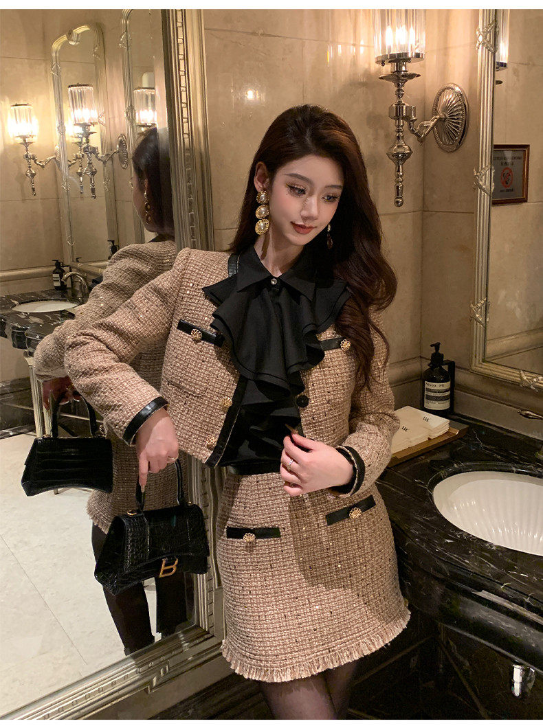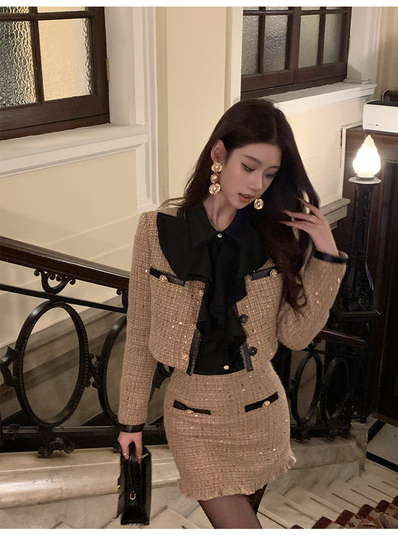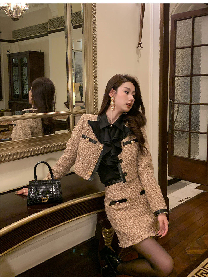 Hollinna Maillard Small Fragrance Style Suit Dress for Women, Spring and Autumn 2026 New Vintage High-End Wool Two-Piece Set