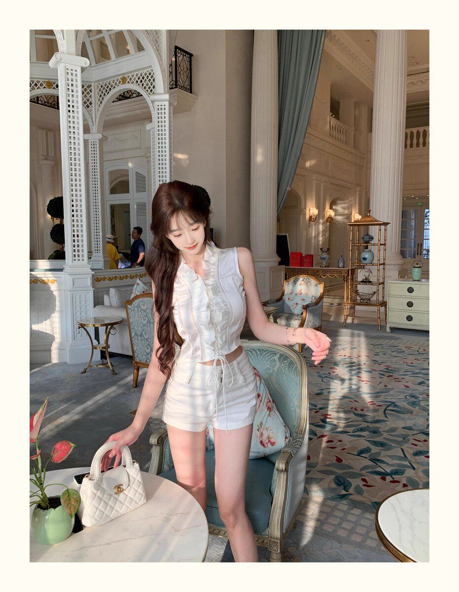 Hollinna Ruffled Sleeveless Shirt for Women, Summer 2025 New Design, Niche Style, Elegant Short Shirt Top