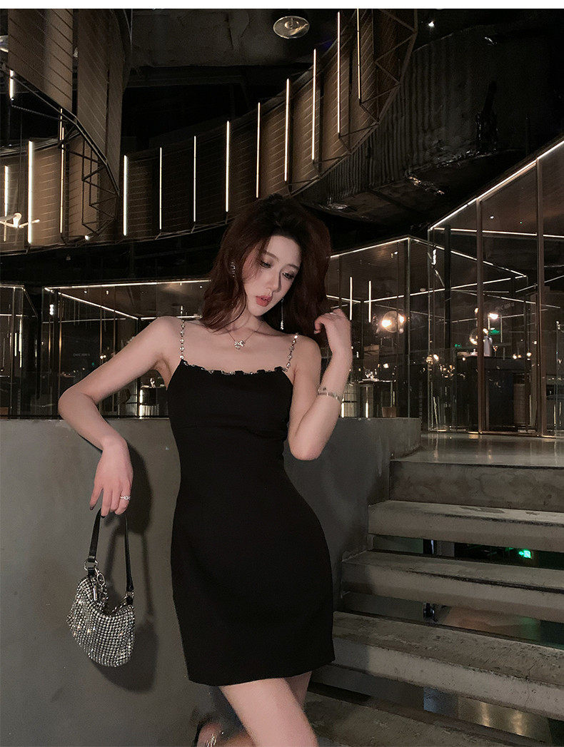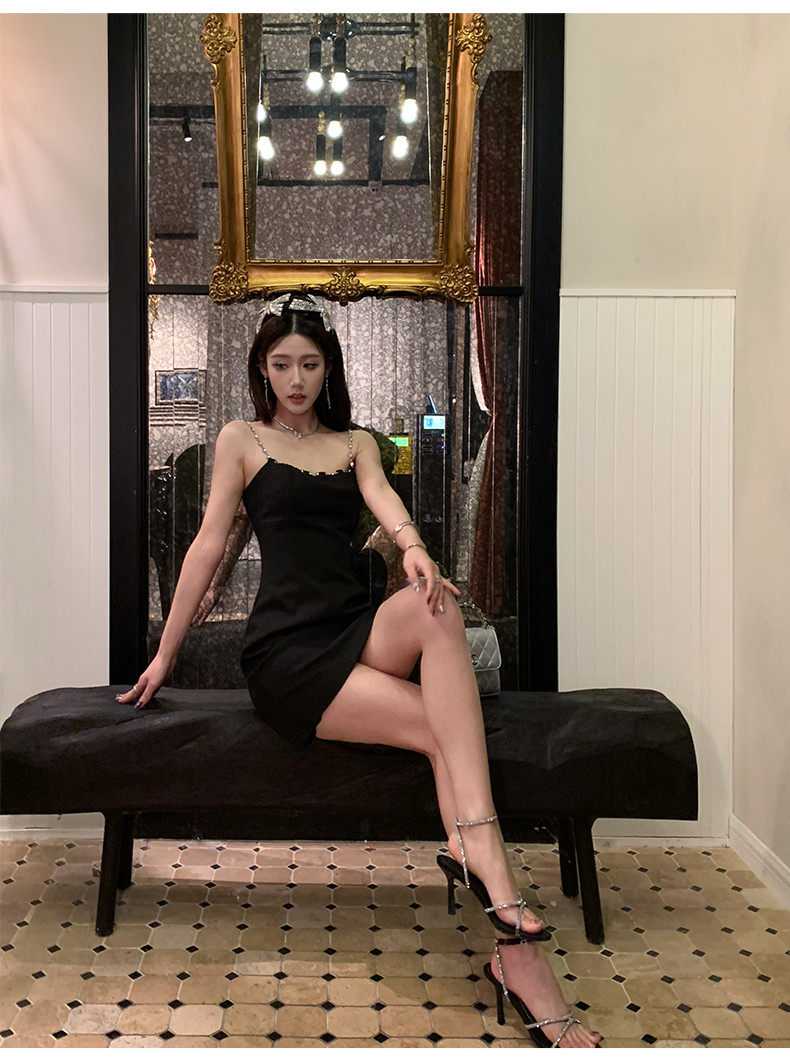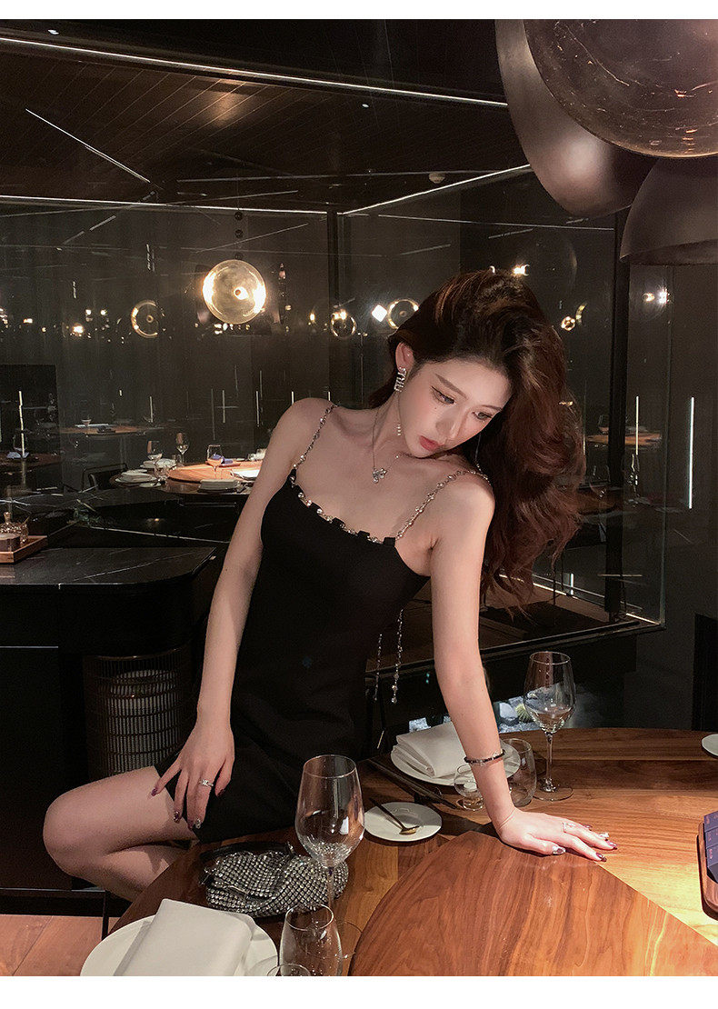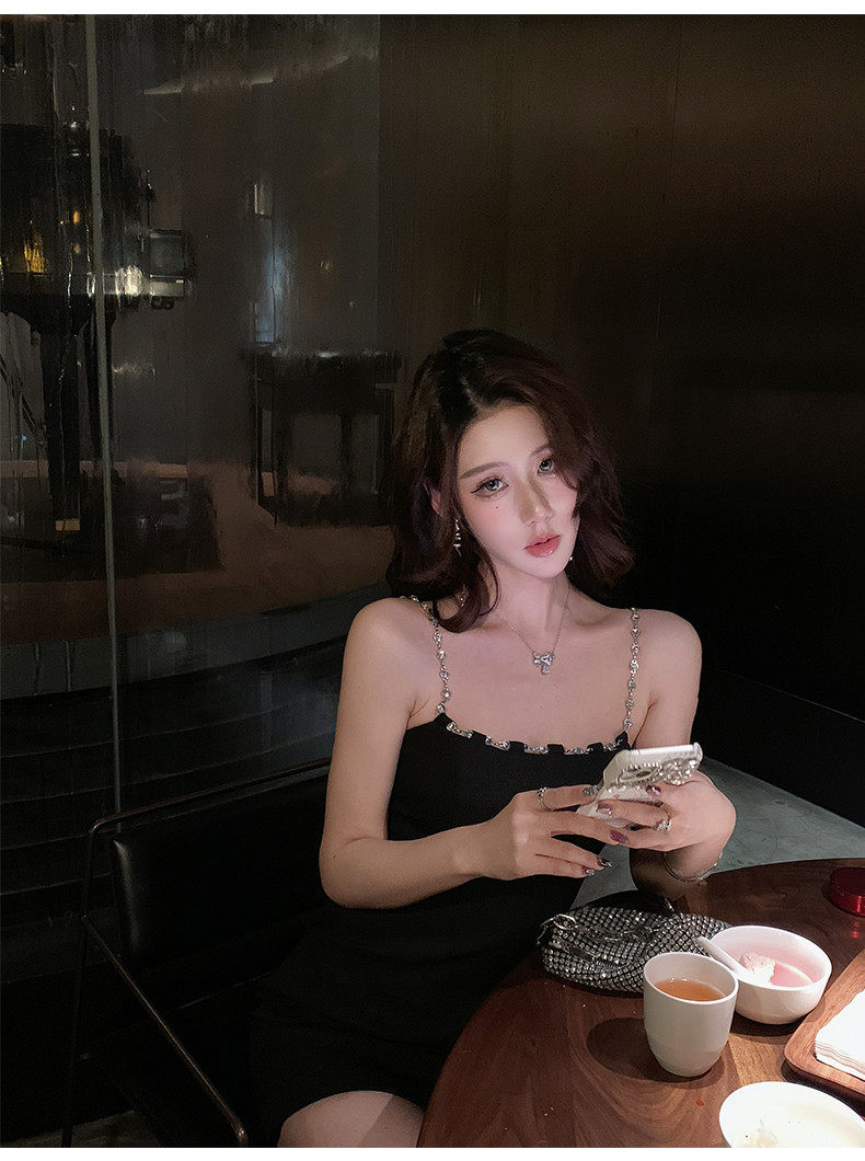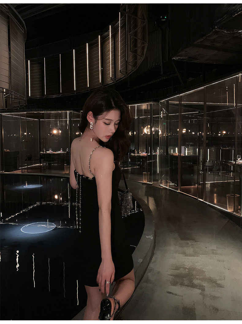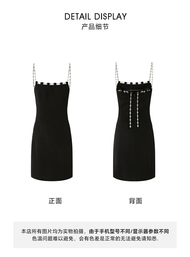 Hollin Metal Chain Suspender Dress Autumn and Winter 2025 New Style Waist Slimming High-End Sexy Little Black Dress