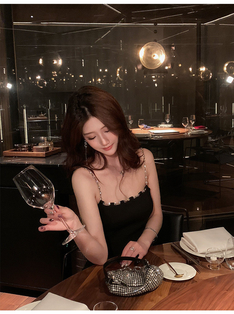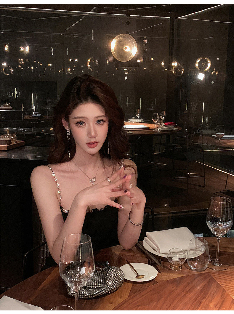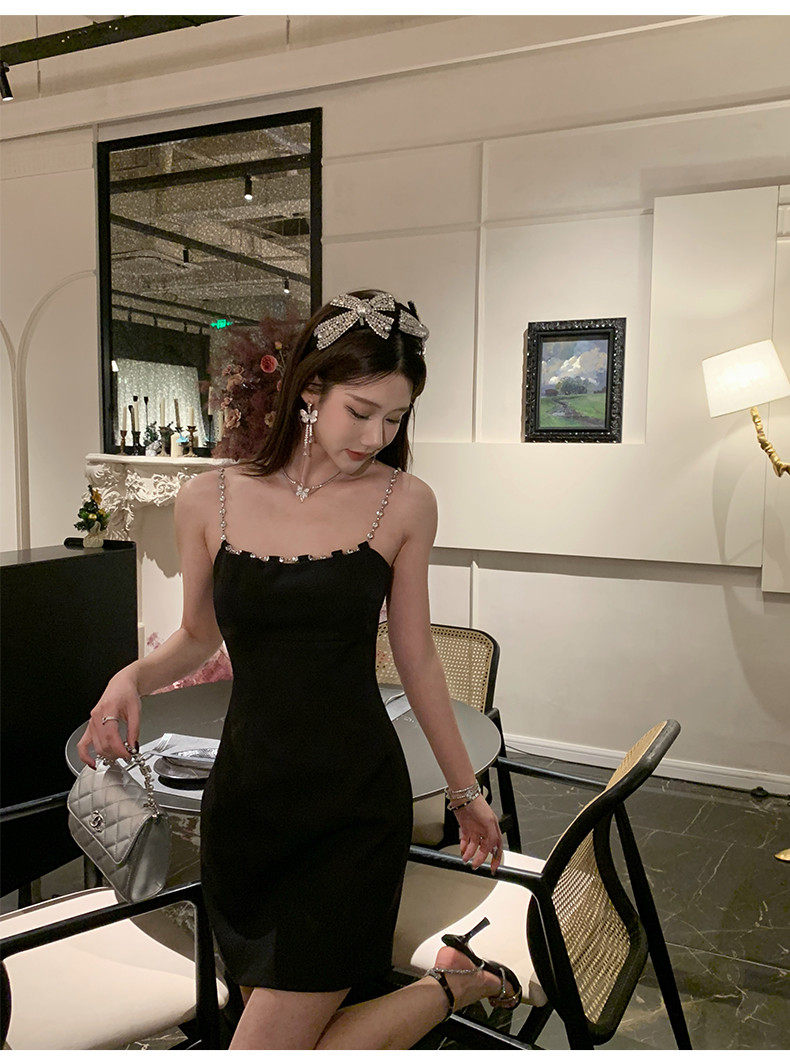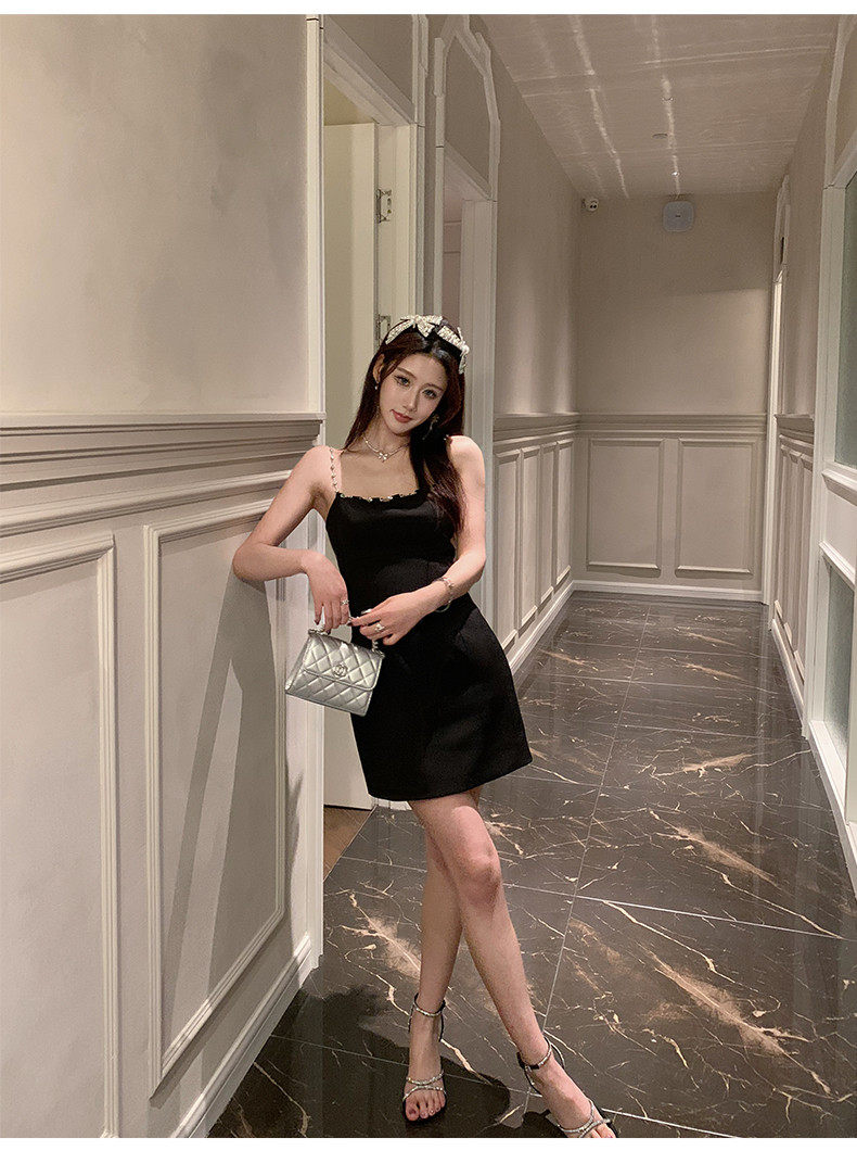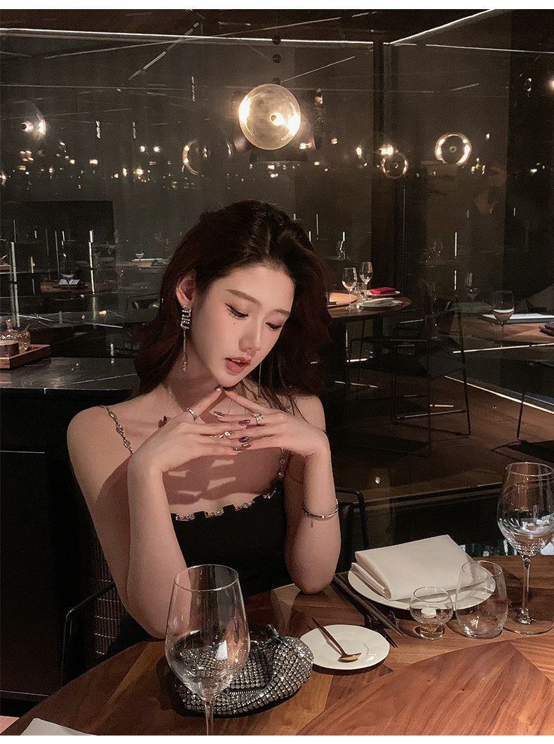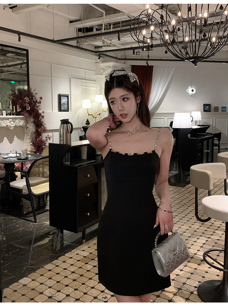 Hollin Metal Chain Suspender Dress Autumn and Winter 2025 New Style Waist Slimming High-End Sexy Little Black Dress