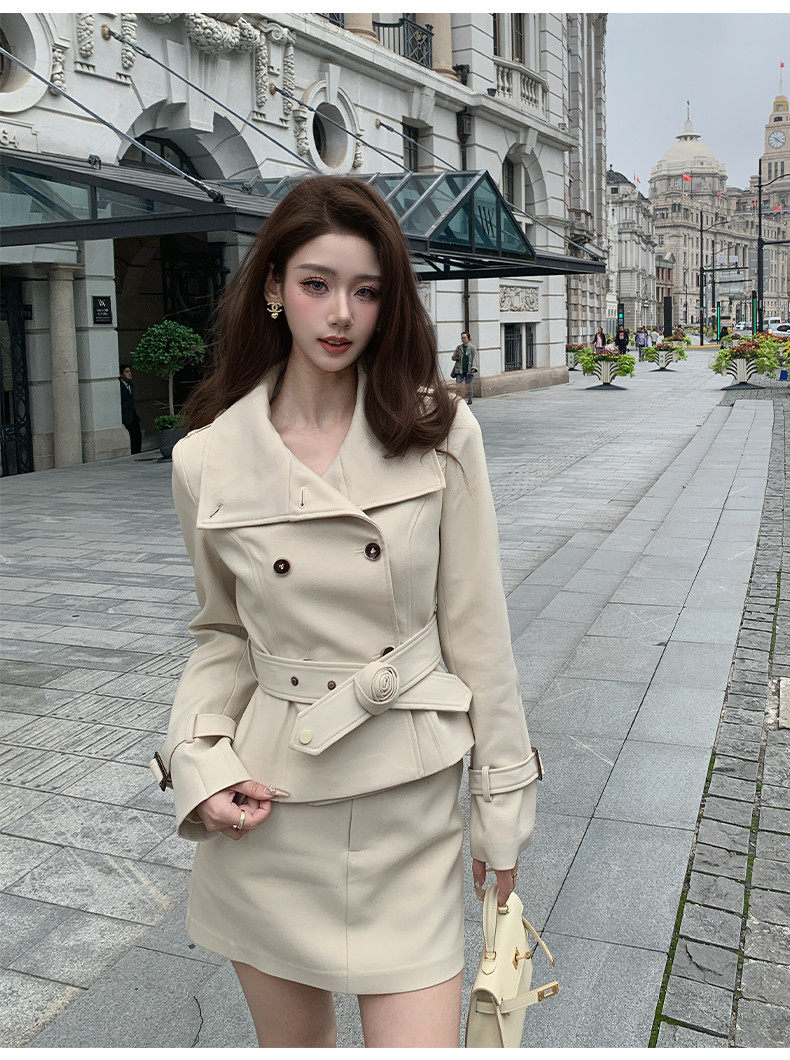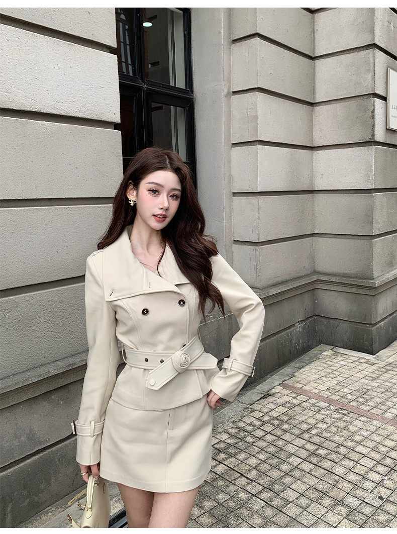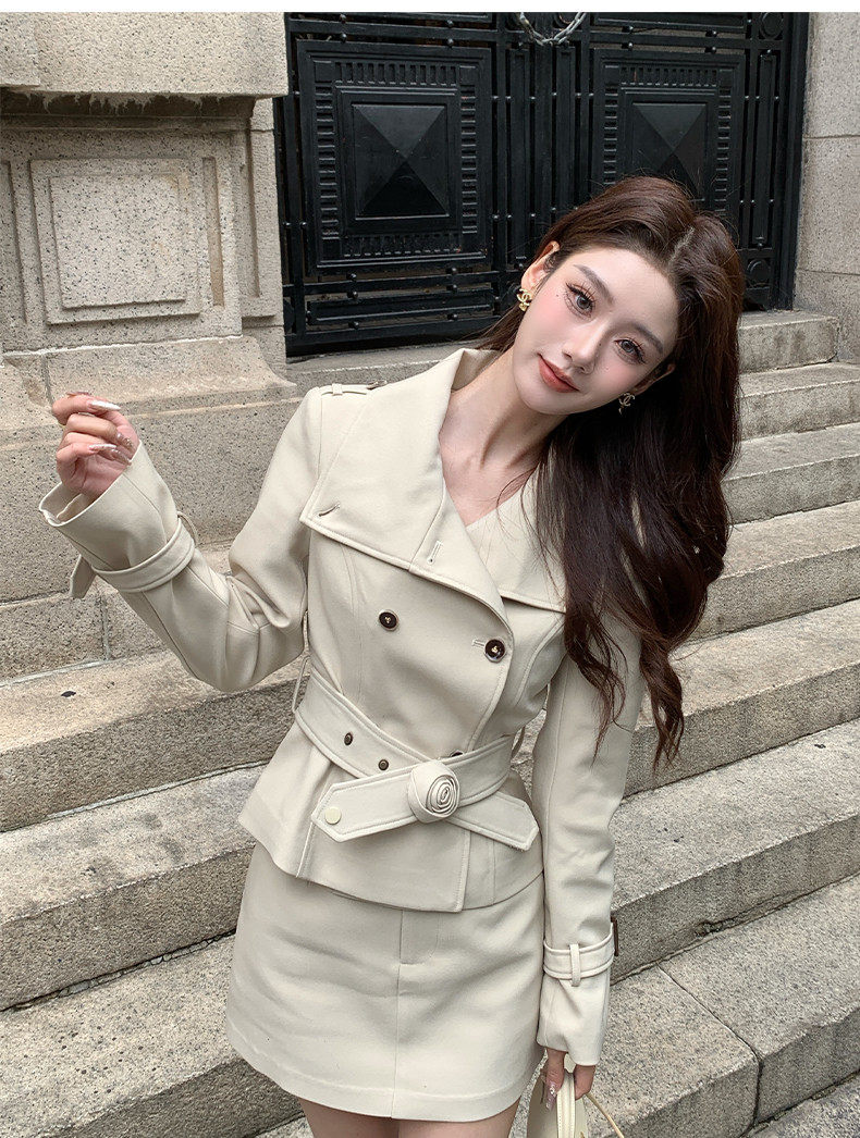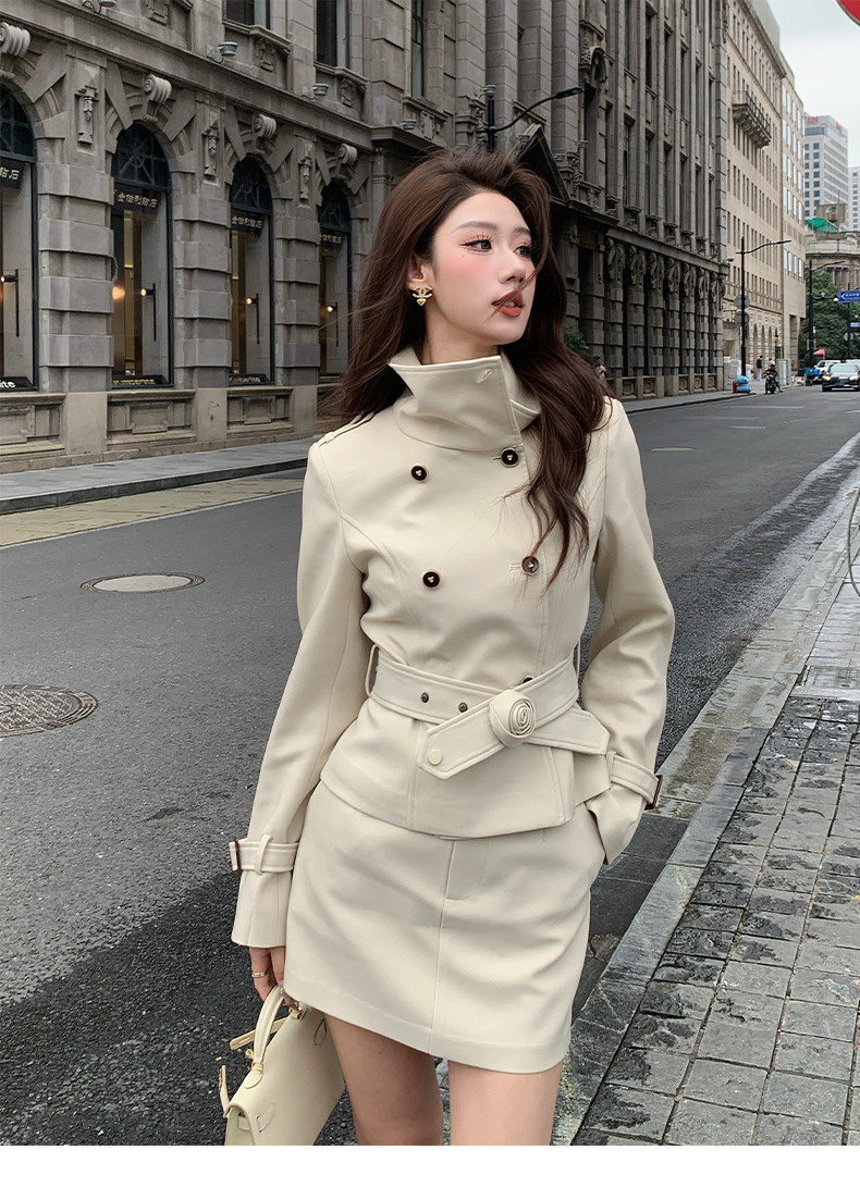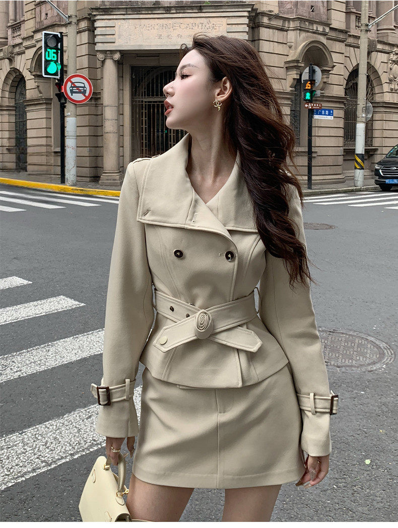 Hollinna Stylish Outdoor Trench Coat Suit Dress for Women, Spring and Autumn, Modern Fashion, High-End Feel, Petite Two-Piece Set