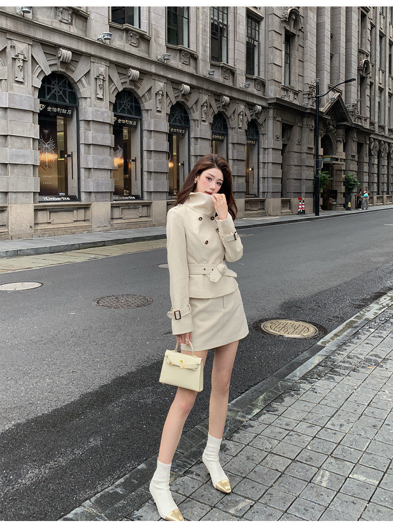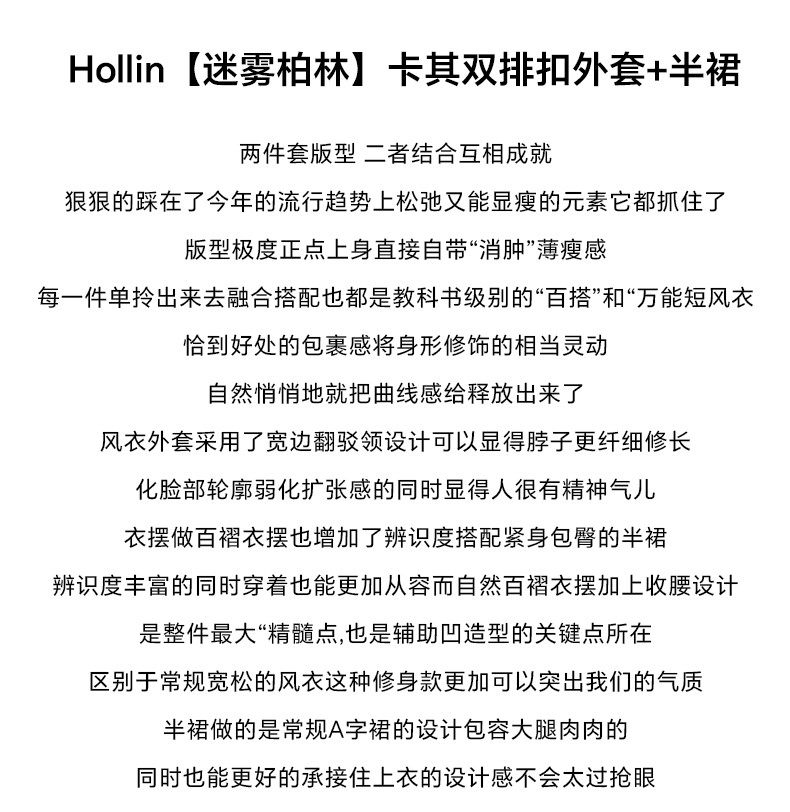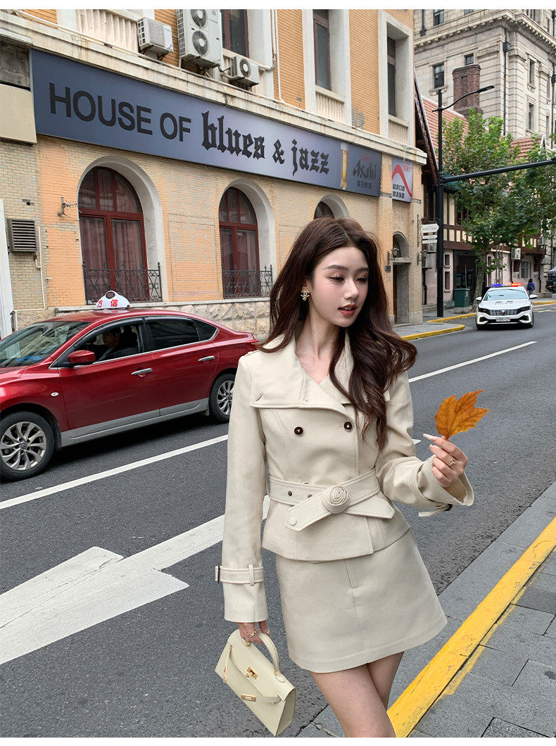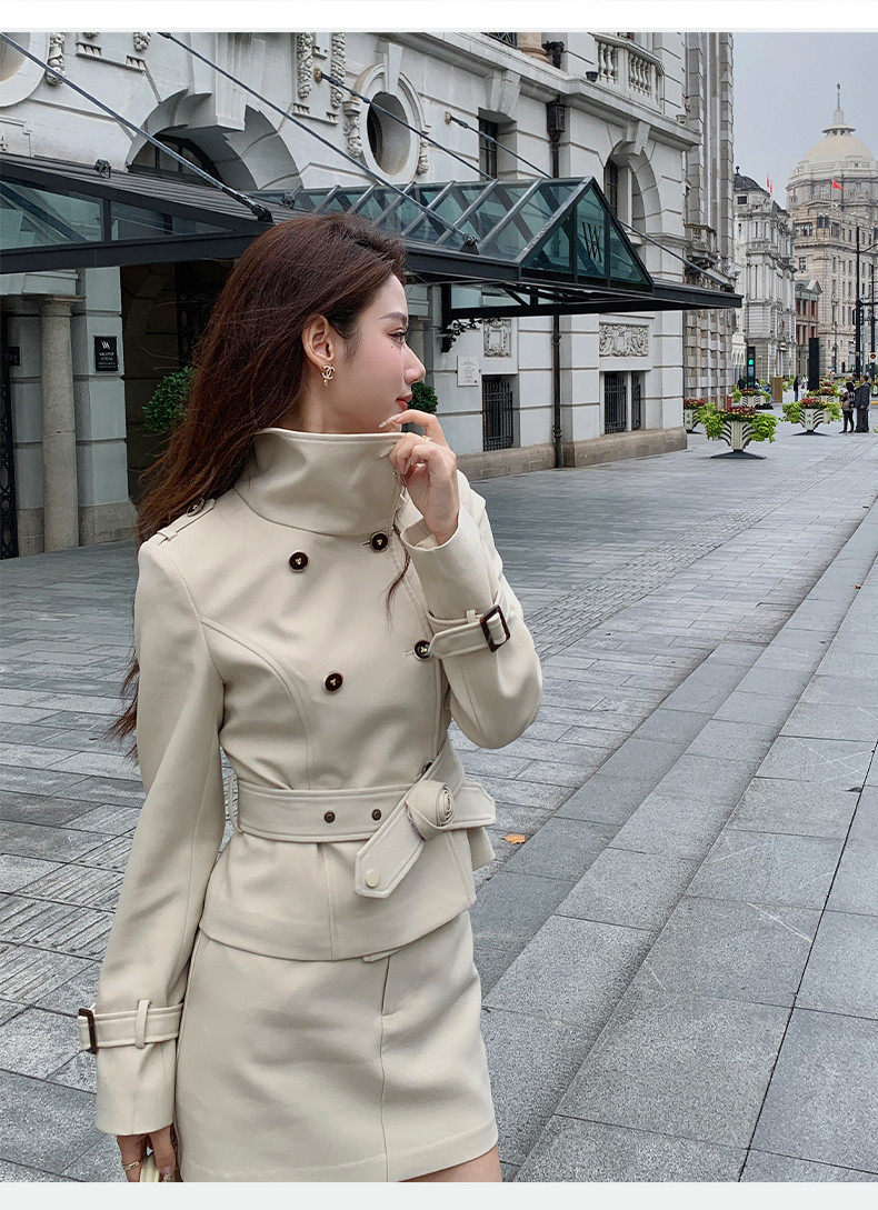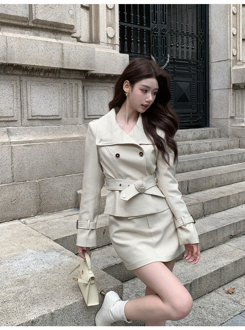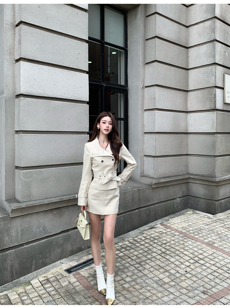 Hollinna Stylish Outdoor Trench Coat Suit Dress for Women, Spring and Autumn, Modern Fashion, High-End Feel, Petite Two-Piece Set