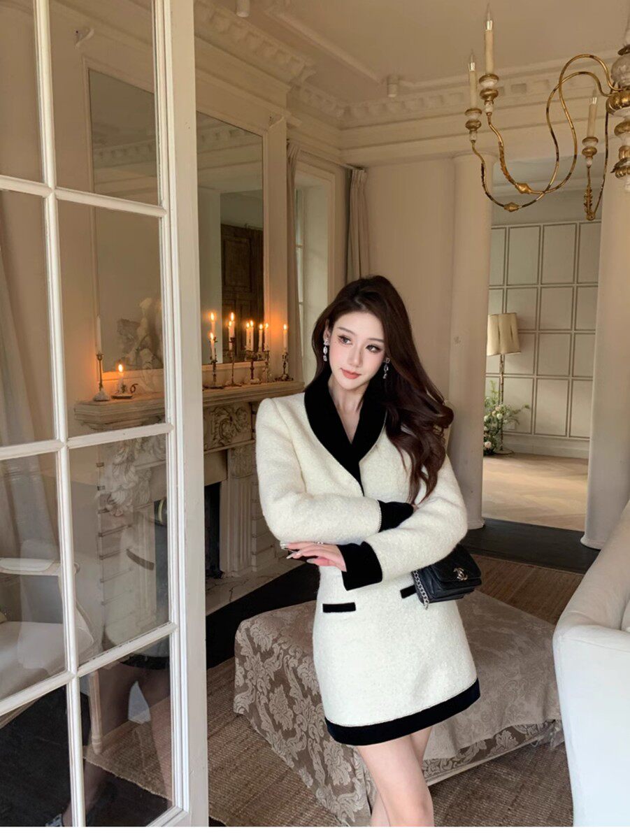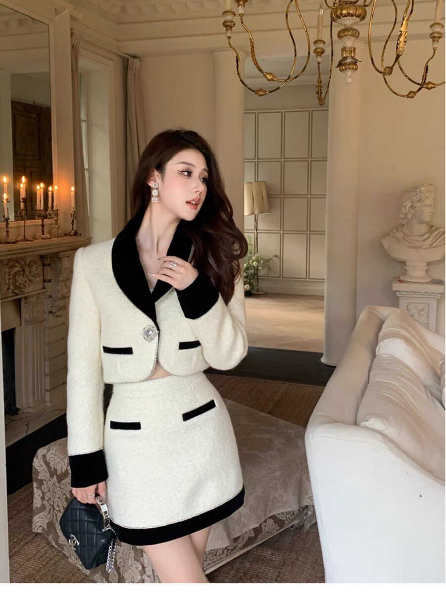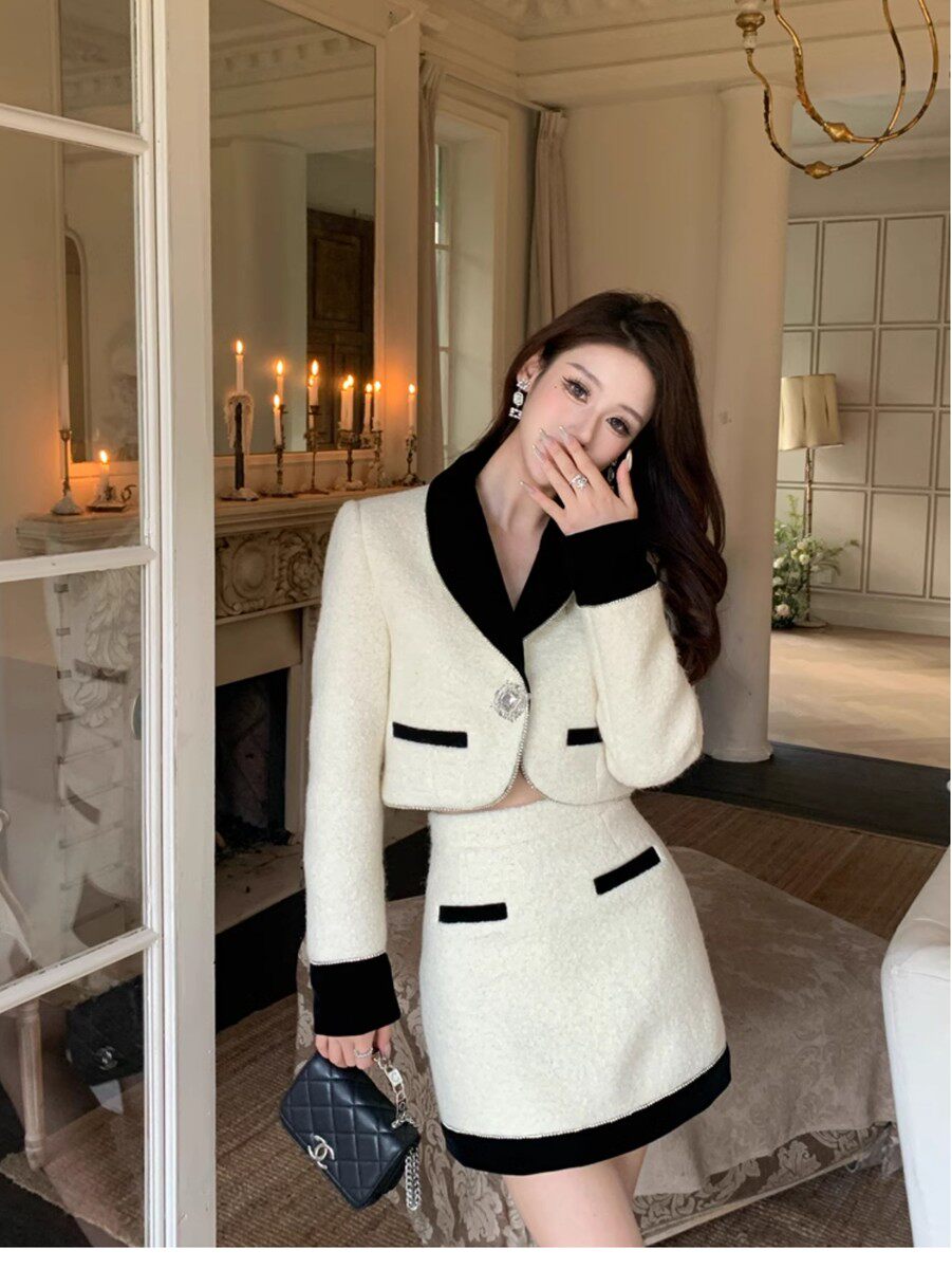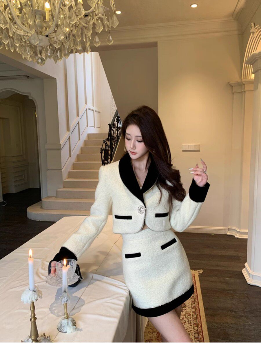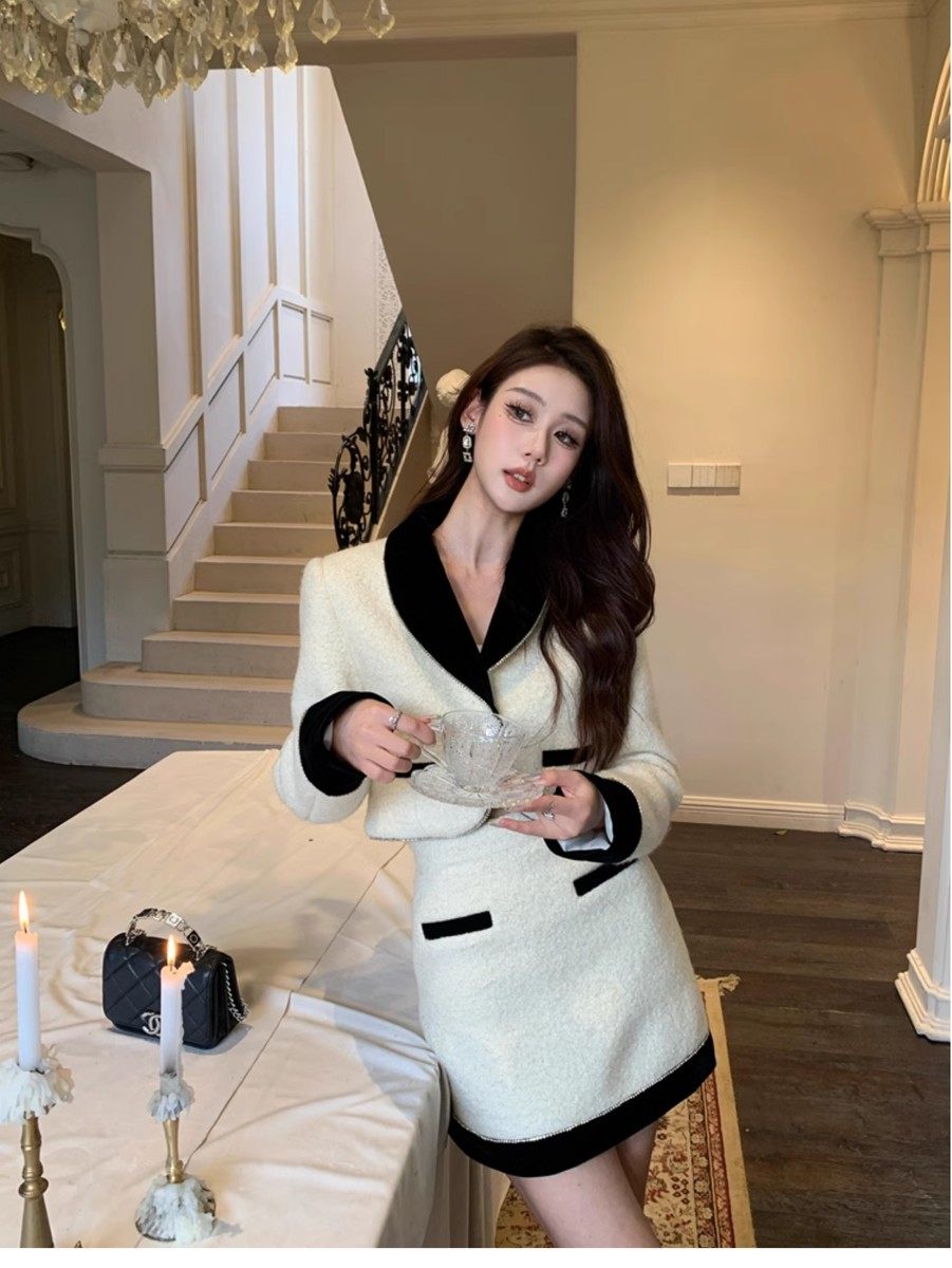 Hollinna Socialite Daughter Wool Tweed Style Suit Dress Autumn and Winter High-End Small Dress Two-Piece Set for Petite Women