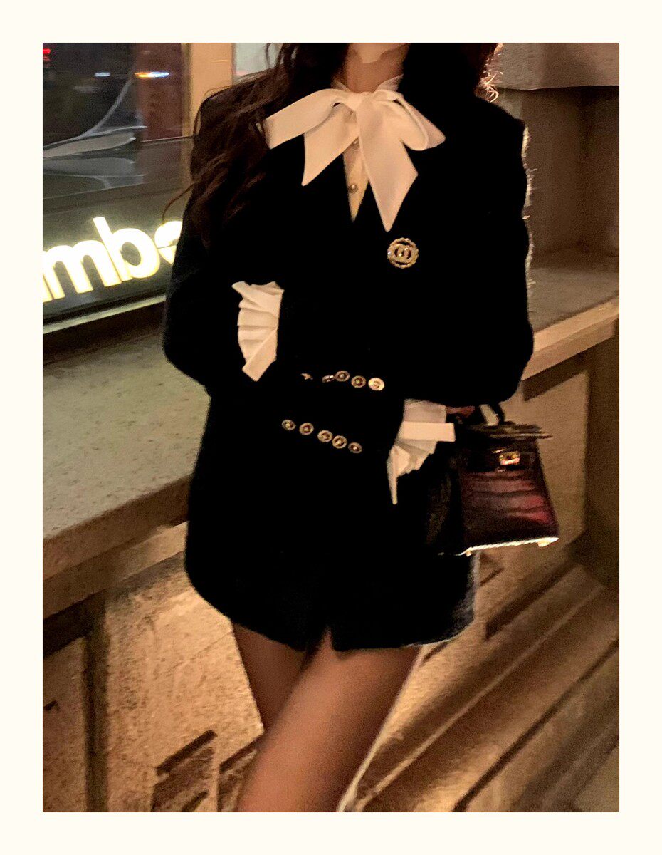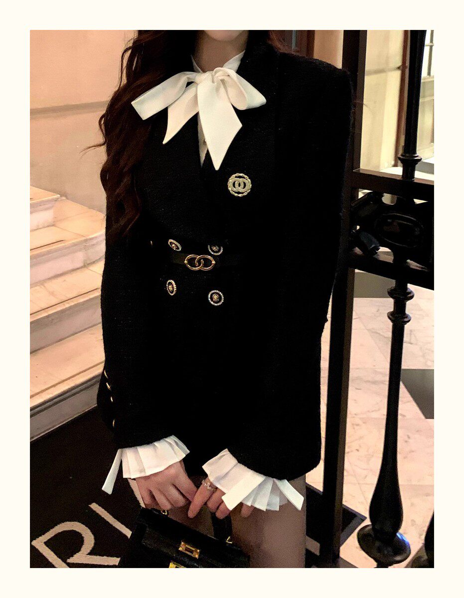 Hollinna Woolen Coat Women's Mid-Length 2025 New Tweed Black High-End Blazer