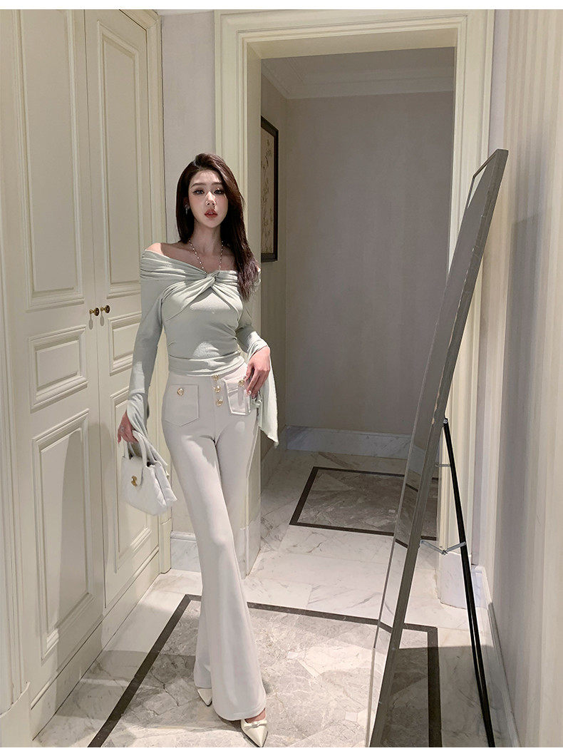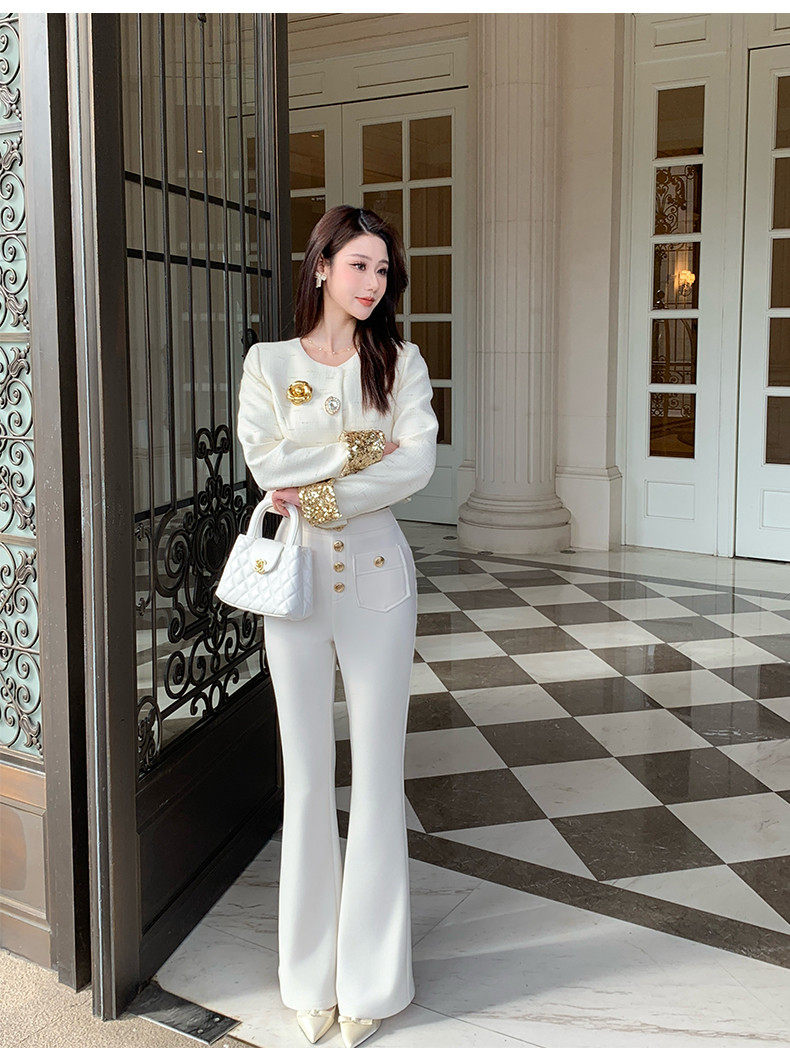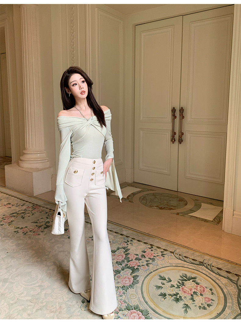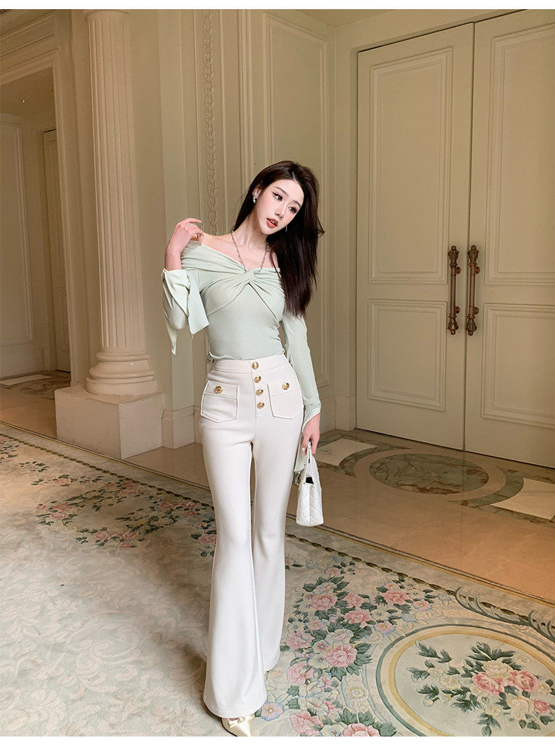 Hollin Knitted High-Waisted White Flared Pants for Women, Spring and Autumn 2025 New Fashion Versatile Stretchy Casual Long Pants