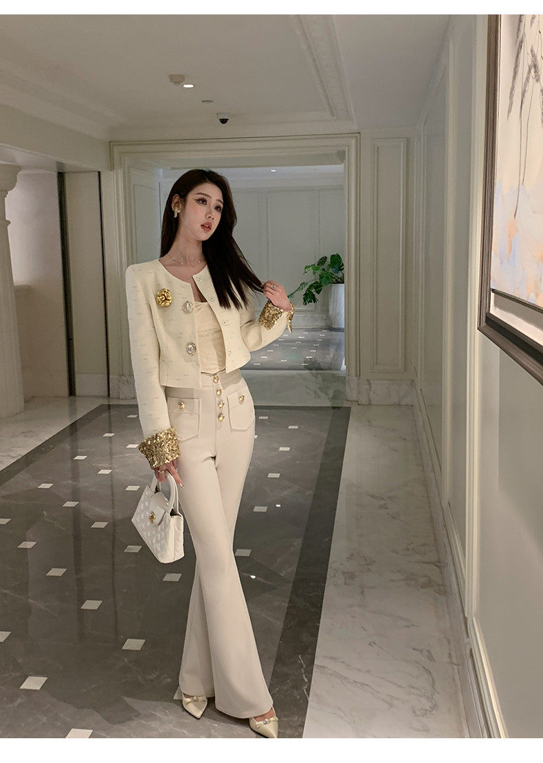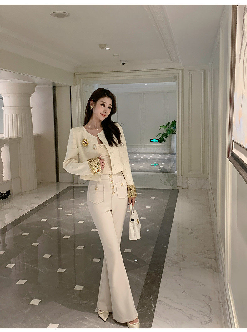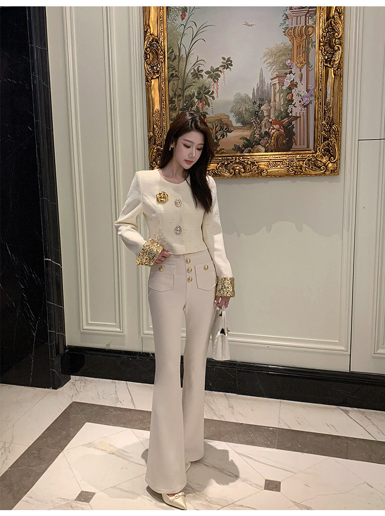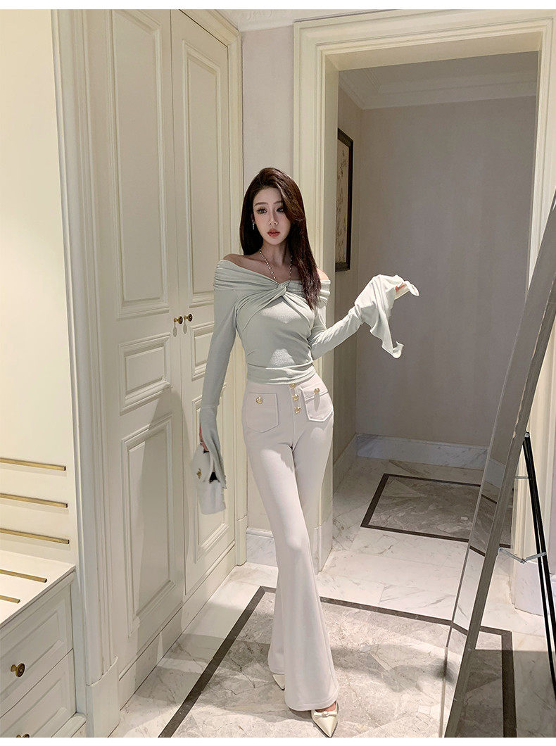 Hollin Knitted High-Waisted White Flared Pants for Women, Spring and Autumn 2025 New Fashion Versatile Stretchy Casual Long Pants