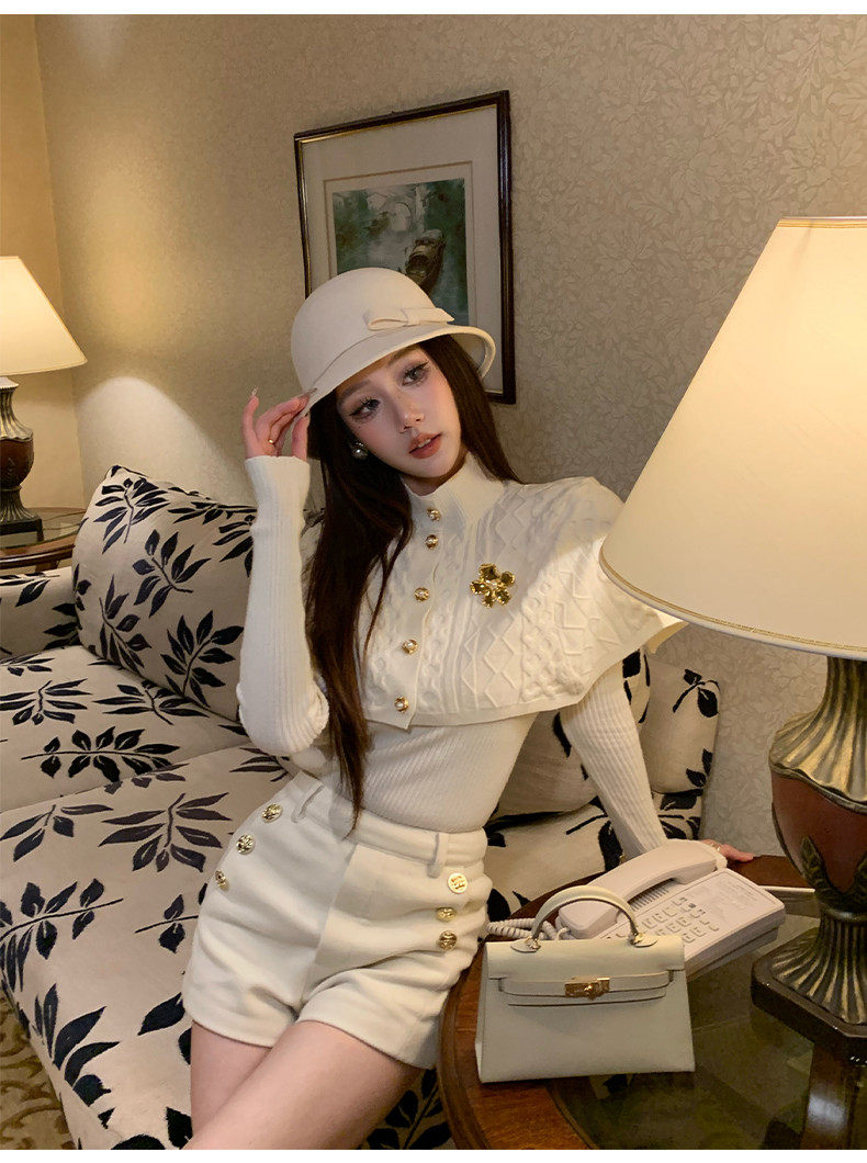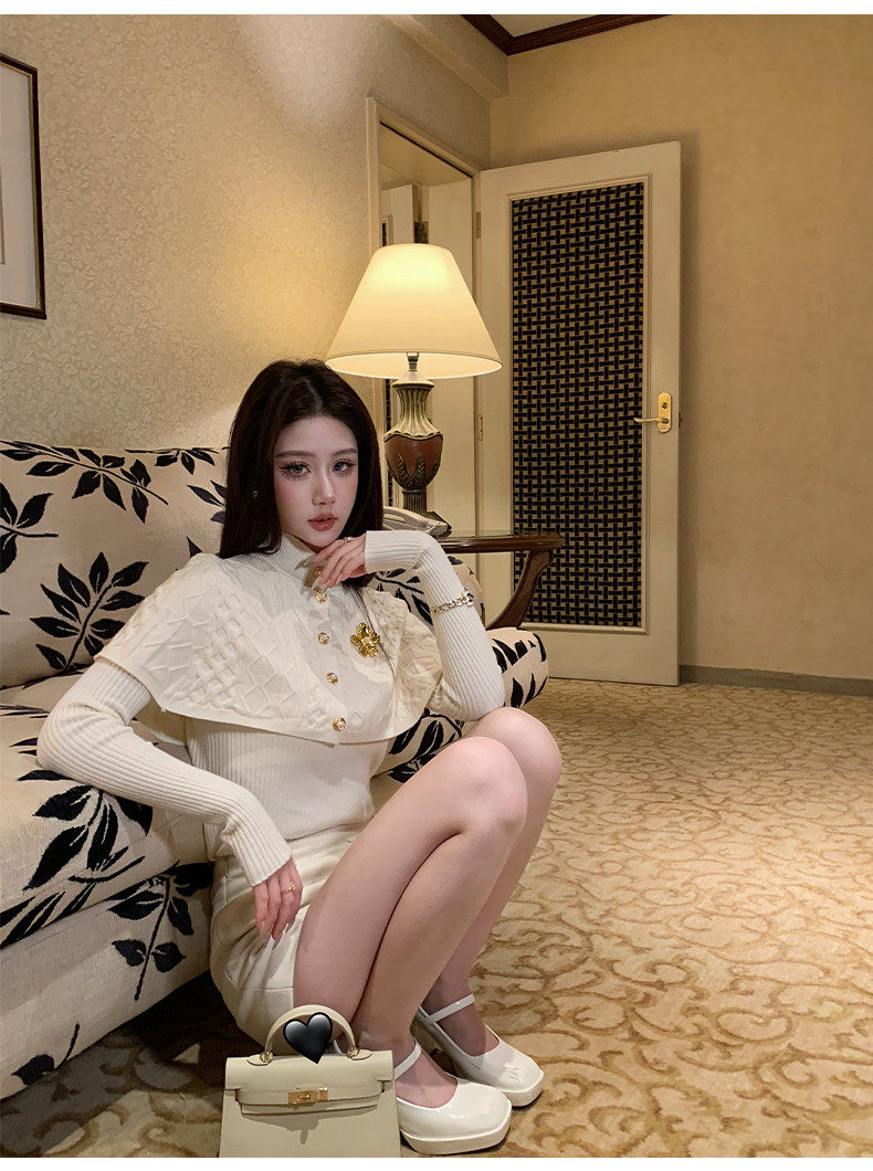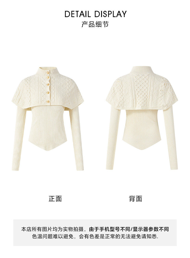 Hollin Half-High Collar Knitted Base Shirt for Women, Suitable for Spring and Autumn, Can Be Worn as an Outer Layer, Sweater with Shawl Design, Elegant Inner Top