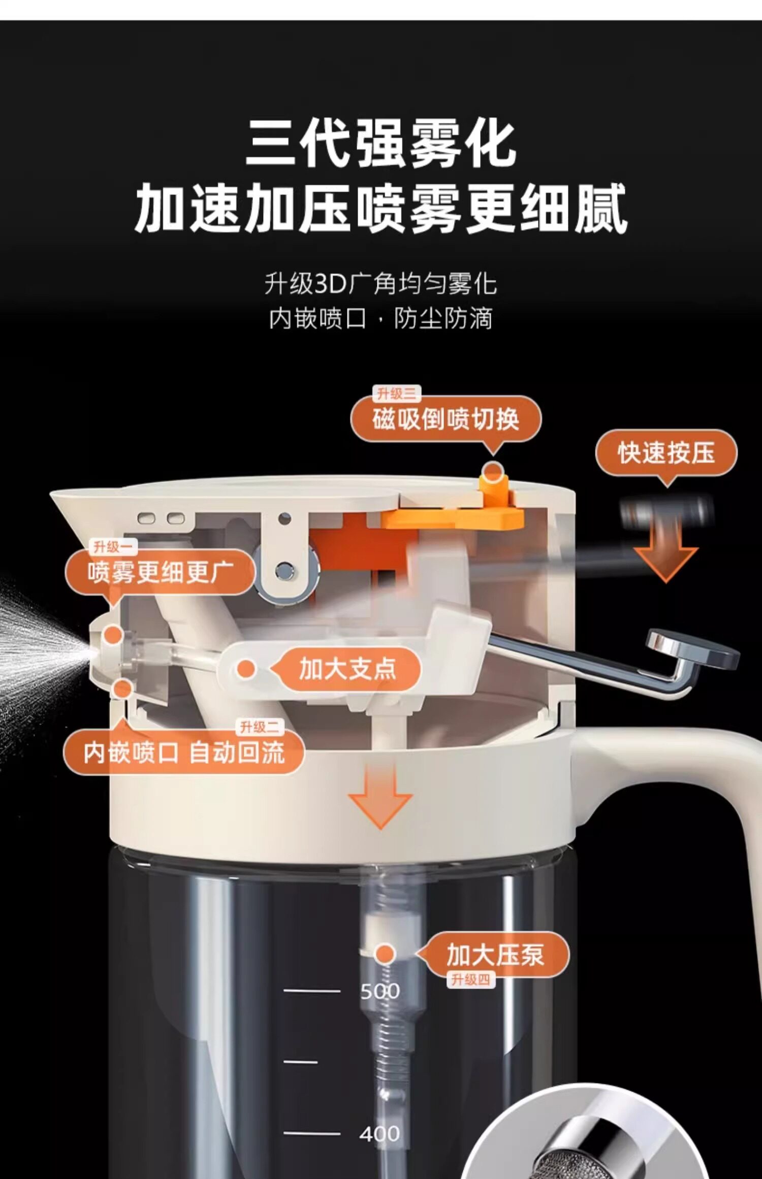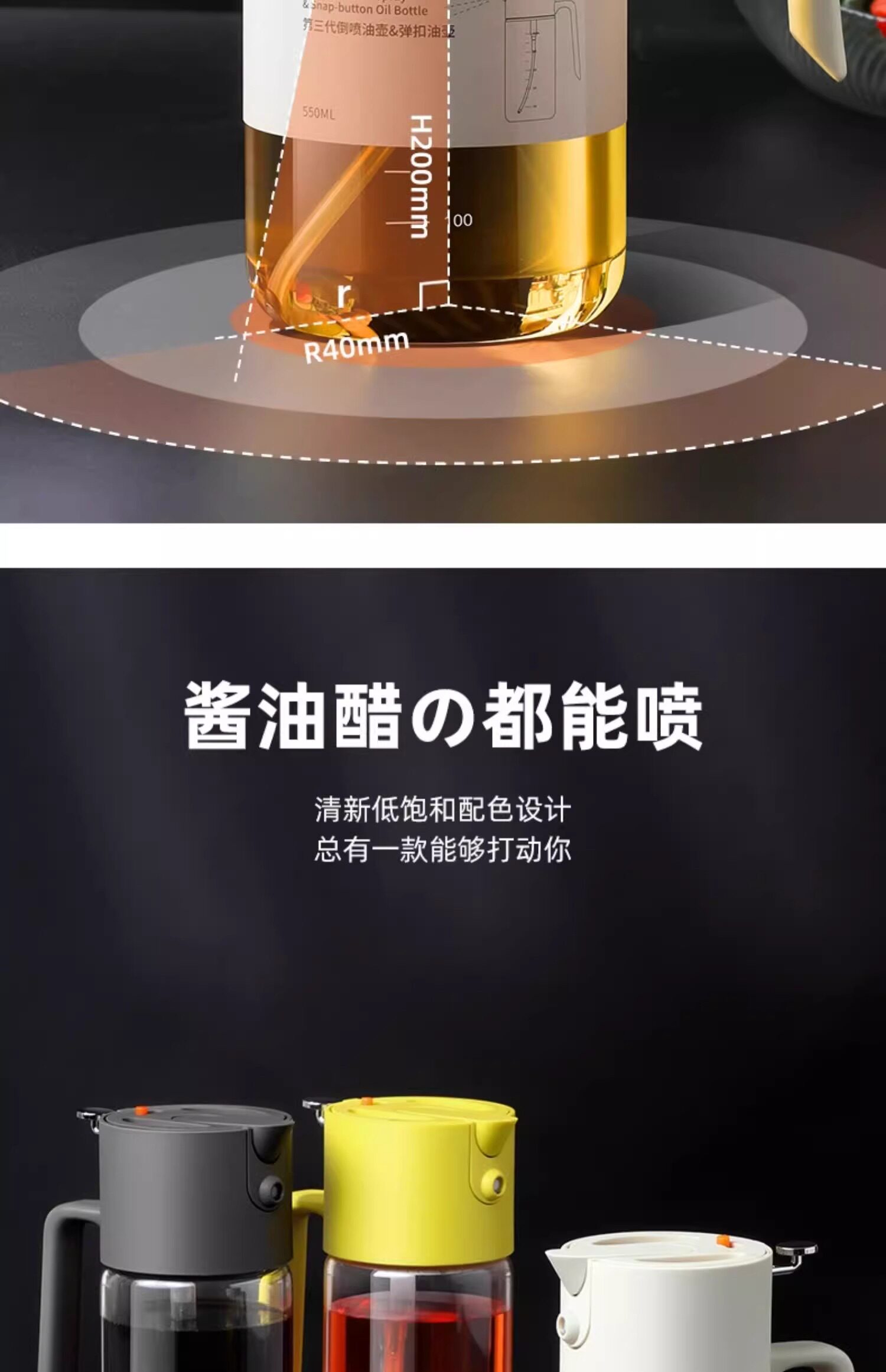 German Imported Dual-Purpose Oil Sprayer with Automatic Opening and Closing, Kitchen Oil Pot, Household Oil Sprayer, Leak-Proof, Non-Staining, Atomizing