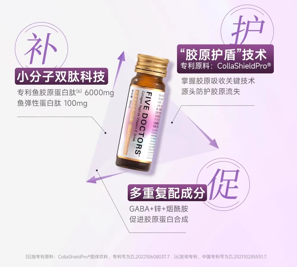 Five Female Doctors' Fish Collagen Peptide Vitamin C 2.0 Oral Liquid Drink with Niacinamide and Vitamin C, Official Genuine Product