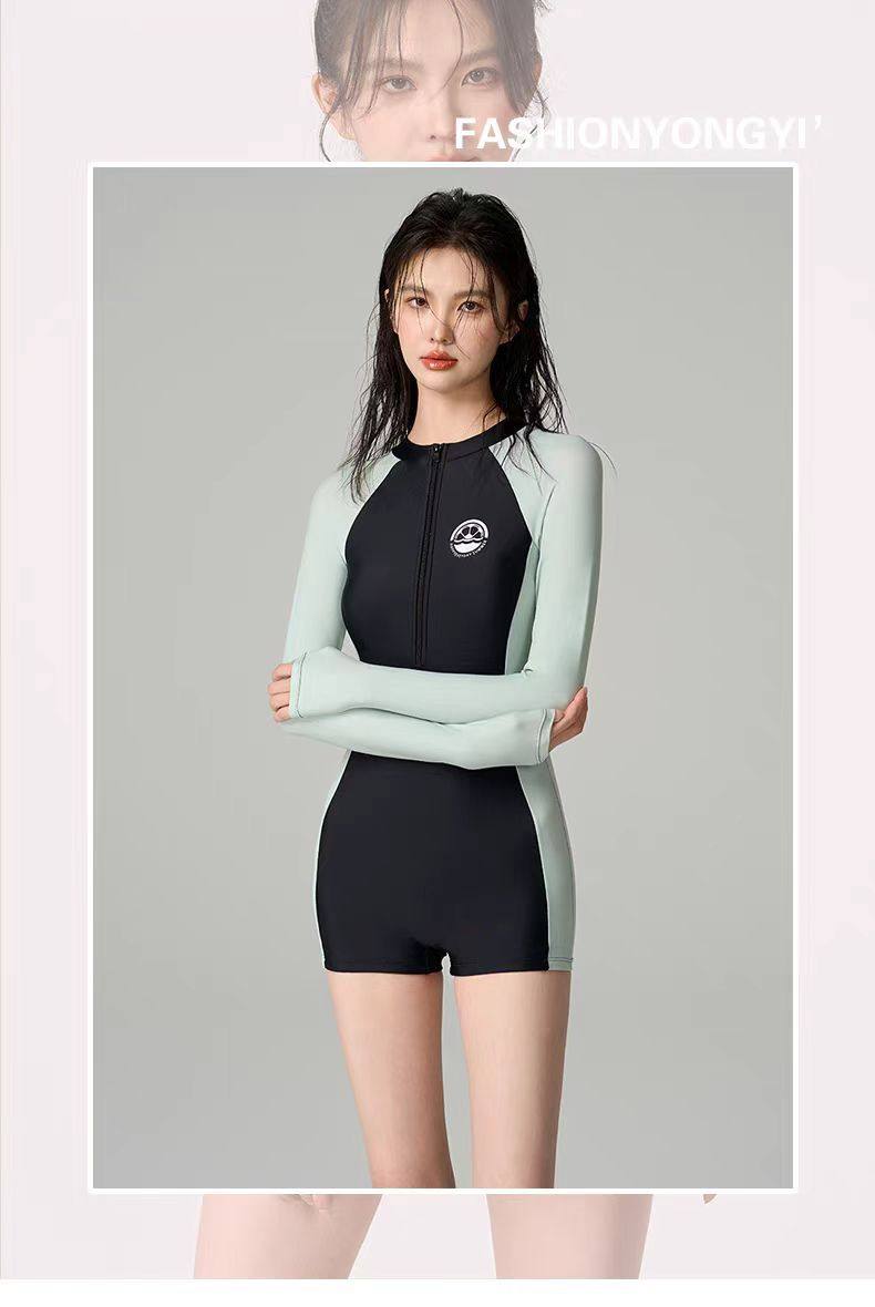 New 2025 Swimsuit Women's One-Piece Boxer Briefs Slimming Look Belly-Covering Sports Swimming Special Conservative Sun Protection Hot Spring Swimsuit