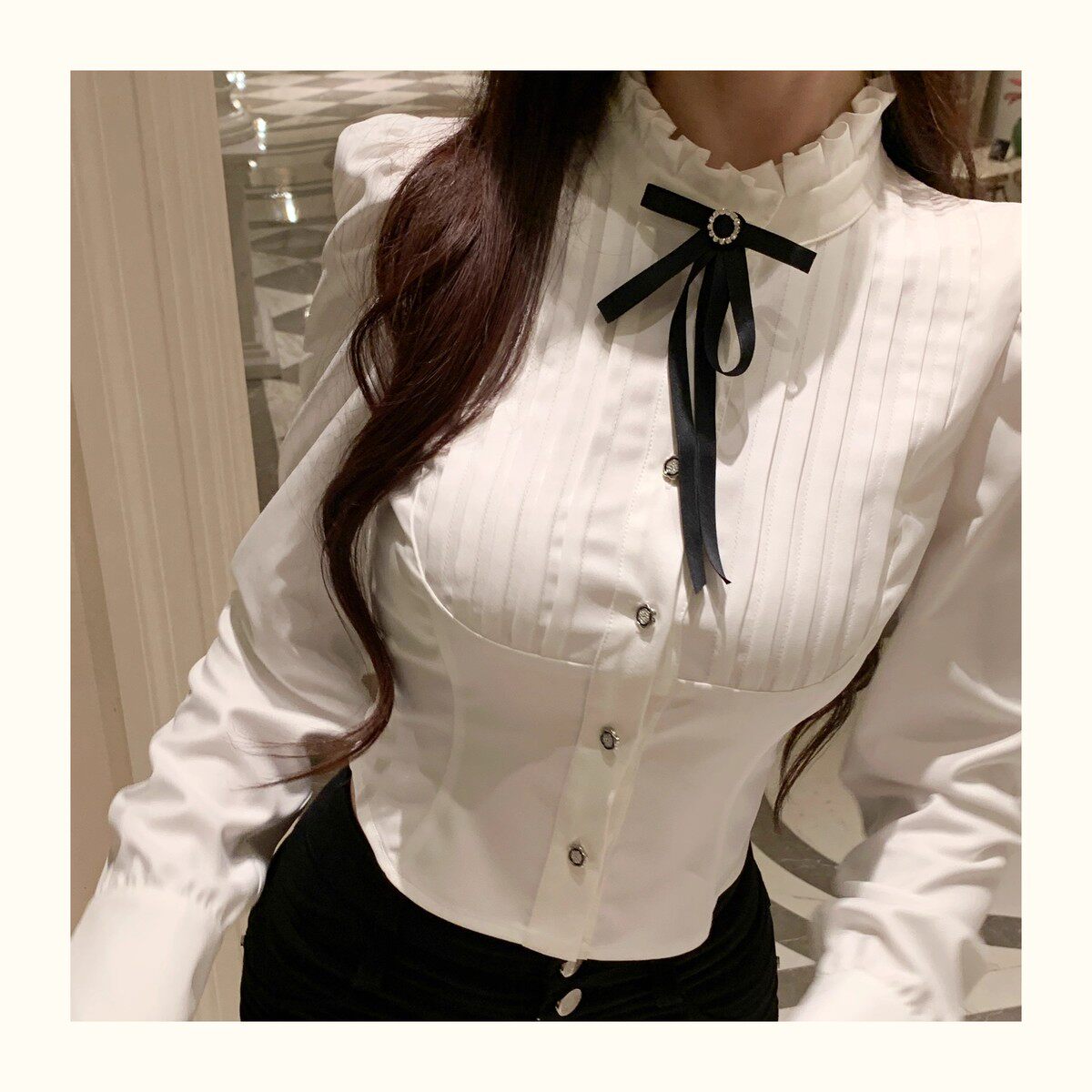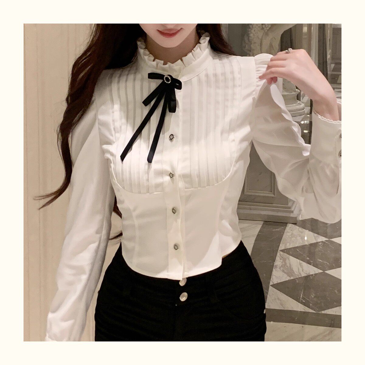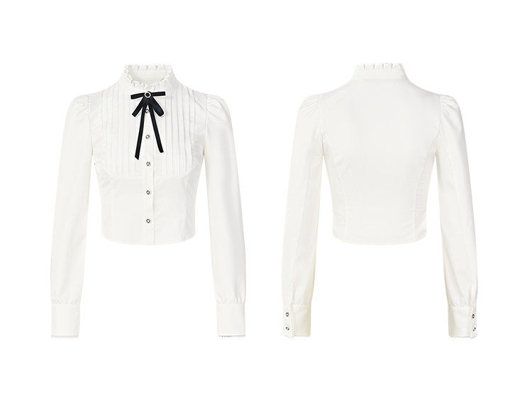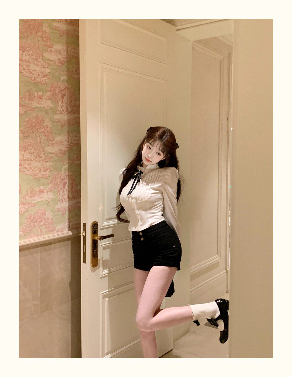 Hollin Bow Tie Slim Long-Sleeved Shirt for Women, Spring and Autumn 2025 New Style, Waist-Cinching, Slimming, Versatile, High-End Shirt