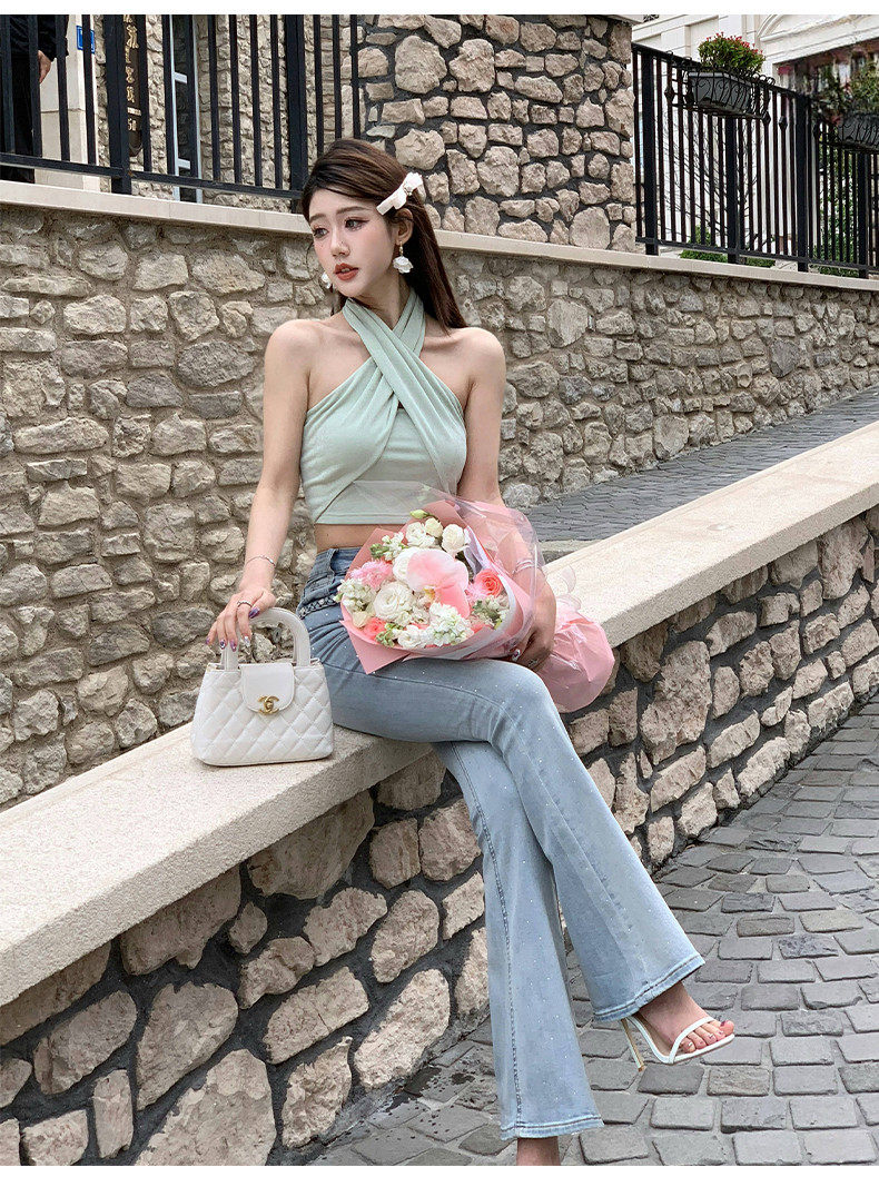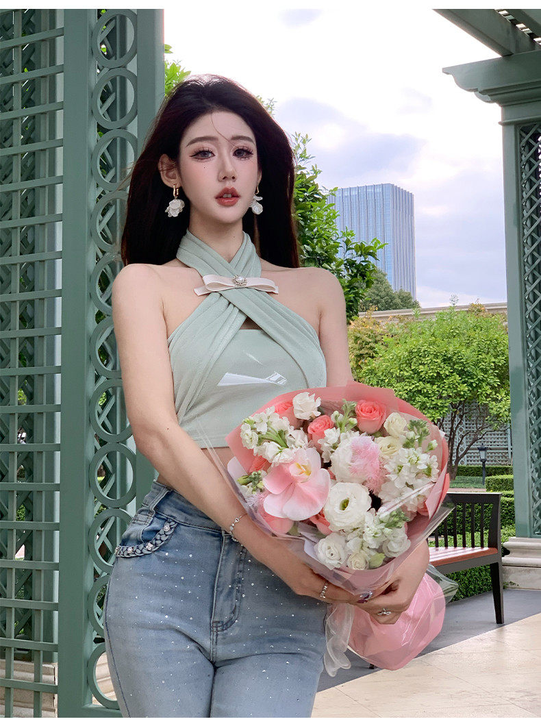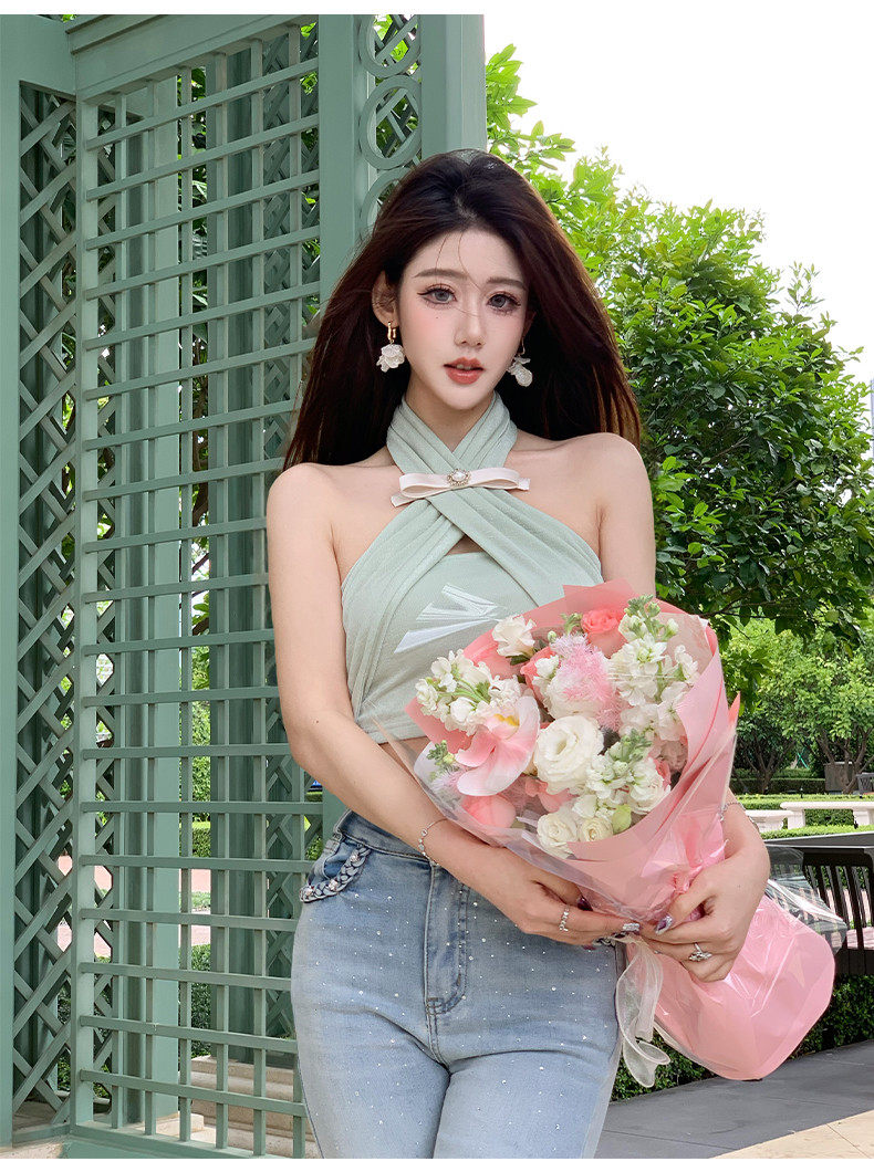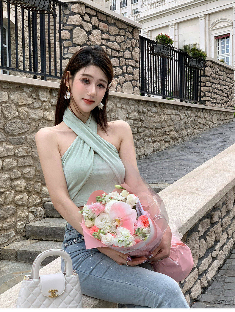 Hollinna Cross Halter Short T-Shirt Women's Summer 2025 New Designer Niche Accessible Luxury High-End Top