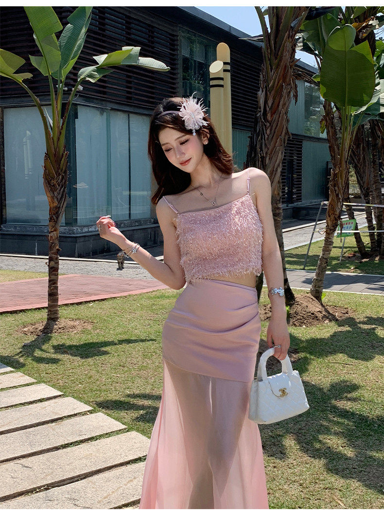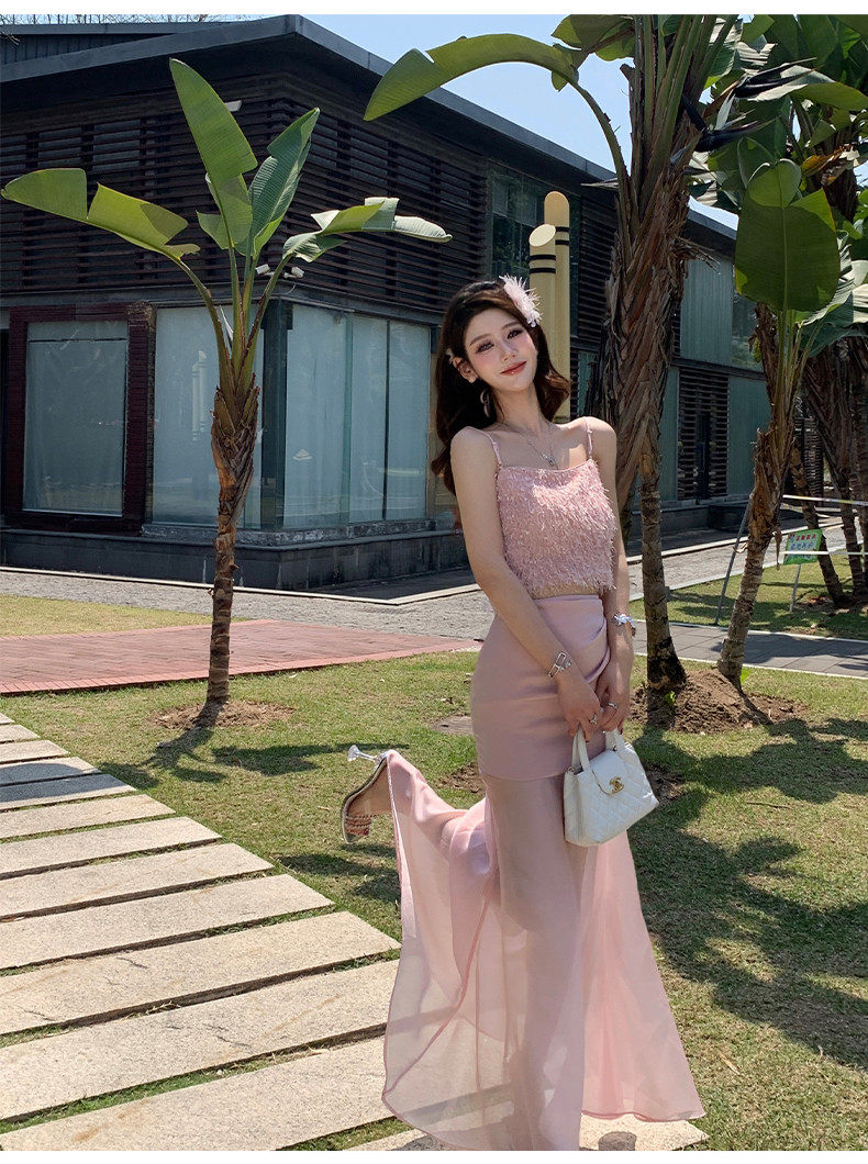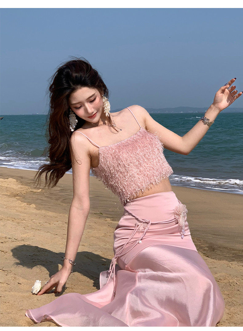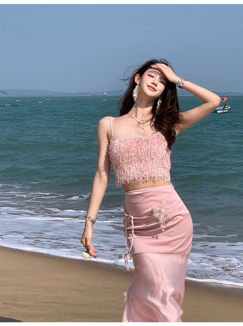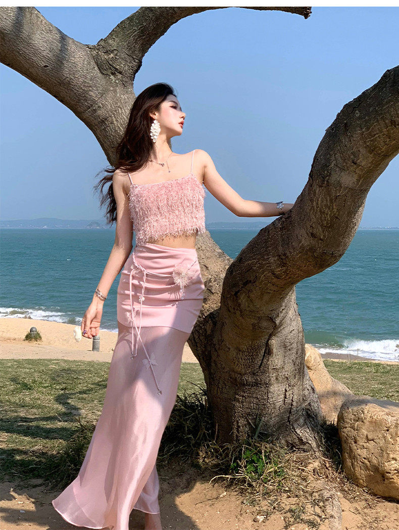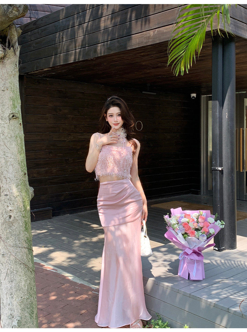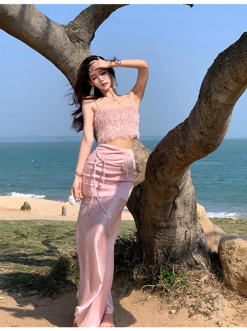 Hollinna Top with Straps, Pink Tube Top and Skirt Set for Women, New Summer Style, Beach Vacation, Socialite Two-Piece Set