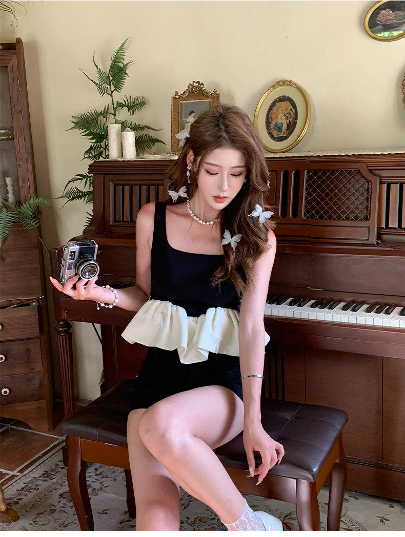 Hollin Cloud Butterfly Camisole Women's Summer 2025 New Design Slim Short U-Neck Sleeveless Top