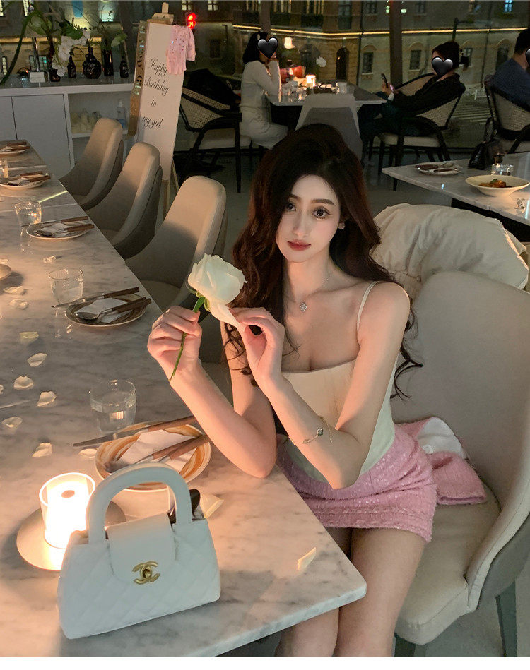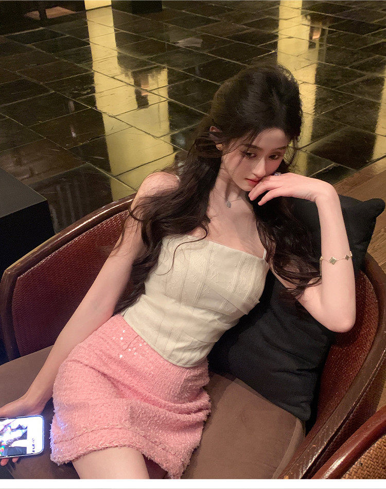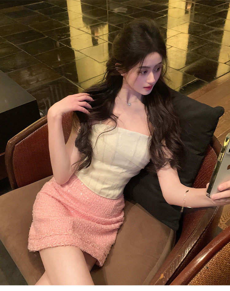 Hollin White Camisole for Women, Niche Design, Slim Fit, Short Style, Sexy Tube Top