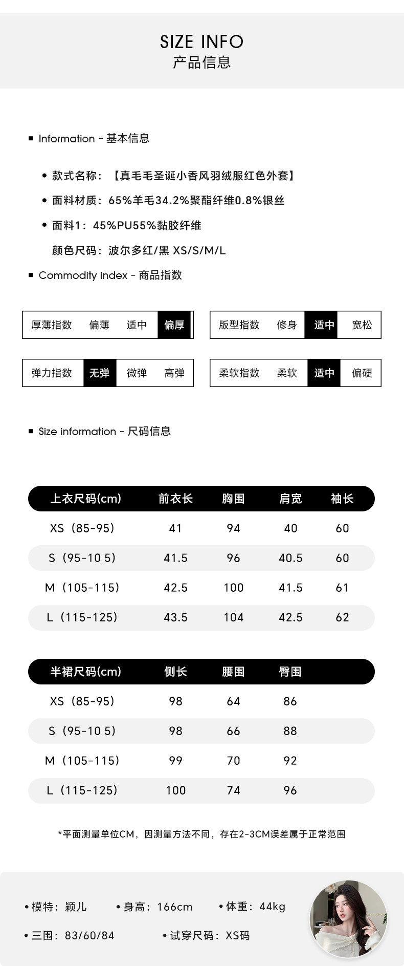 China (cm) 160-165/84-86 165-170 / 88-90 167-172 / 92-96 168-173 / 98-102 170-176 / 106-110