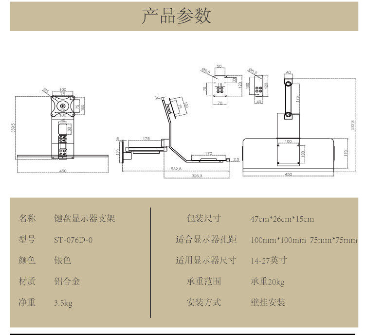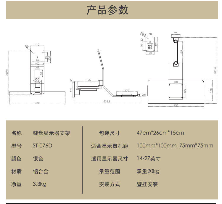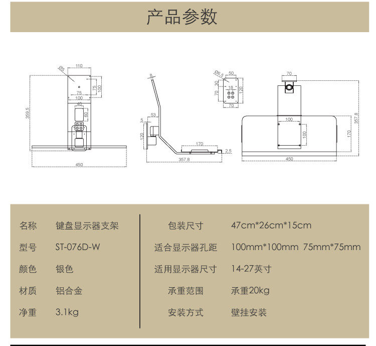 Baishijie Industrial Monitor Stand St-076D, Made of Aviation Aluminum, with Universal Rotation and Height Adjustment, as Stable as a Manufacturer's Product