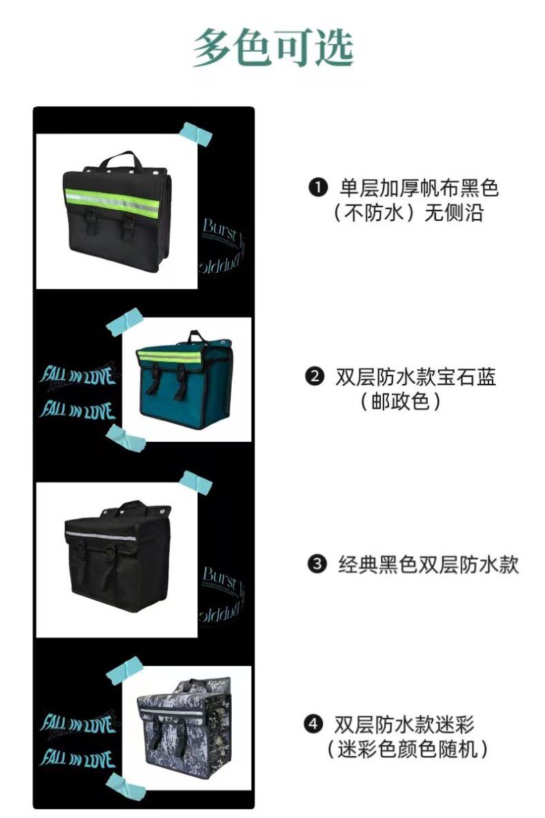 Color Classification Black Single-Sided Buckle Bag (Not Waterproof, Length 33, Height 30, Thickness 11,Black Double-Layered, Thickened Waterproof Fabric. Dimensions: Length 32, Height 30, Depth 15. Includes Tie-Down Ropes.,Black Double-Layered, Thickened Waterproof Fabric. Dimensions: Length 32, Height 30, Depth 20. Includes Tie-Down Ropes.,Camouflage Double Layer Thickened Waterproof Fabric Length 32 Height 30 Thickness 15 Free Binding Rope,Camouflage Double Layer Thickened Waterproof Fabric Length 32 Height 30 Back 20 Free Binding Rope,Customized Contact Customer Service