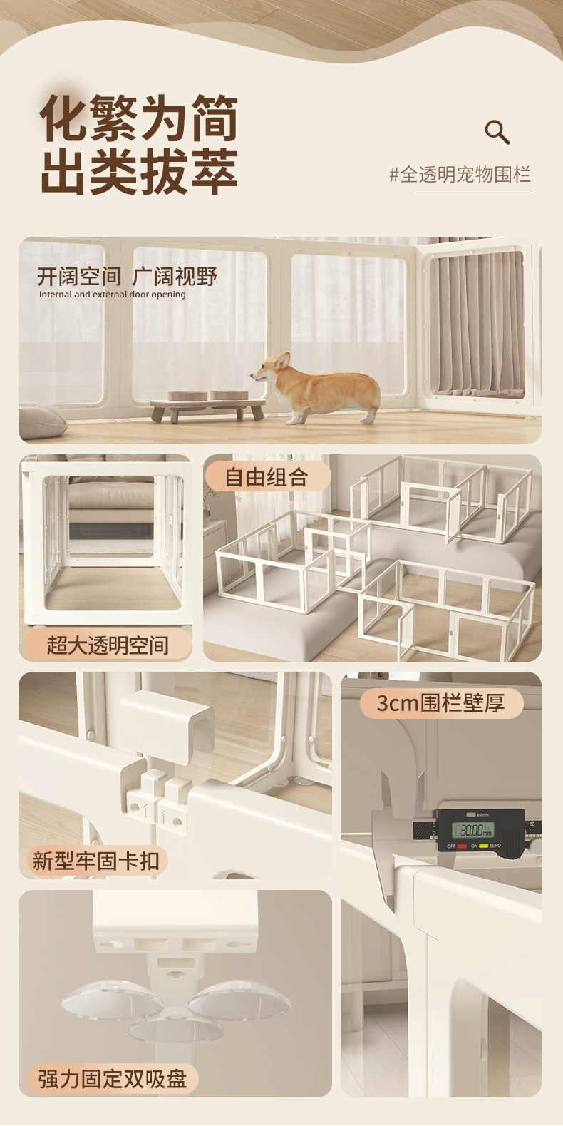 Transparent Dog Fence Acrylic Dog House Fence Indoor Isolation Yorkshire Teddy Small Dog Cage Home Use