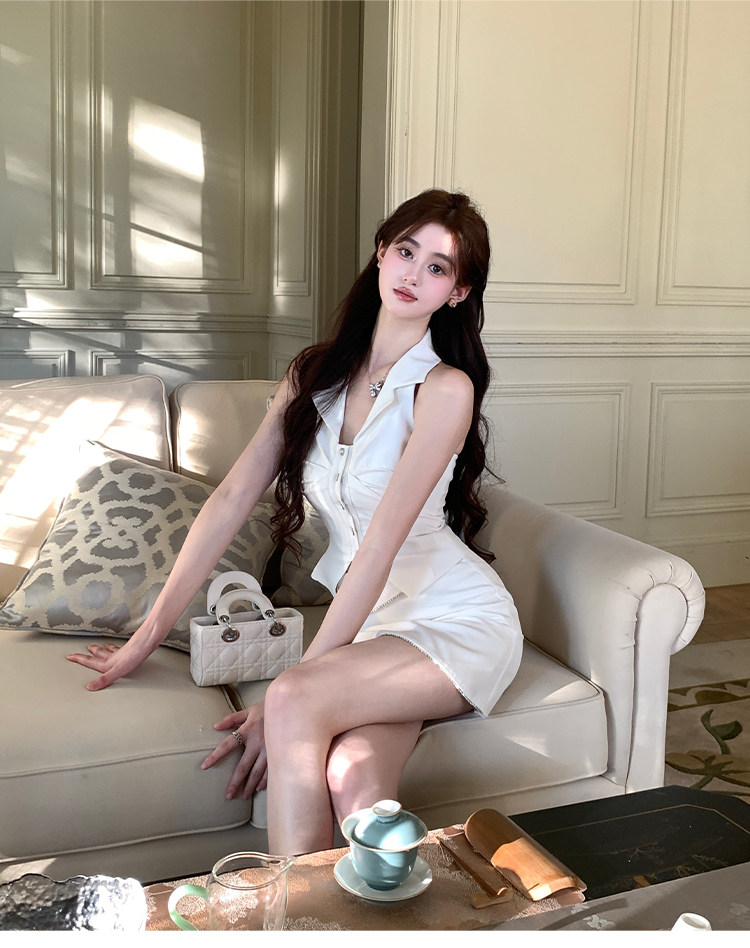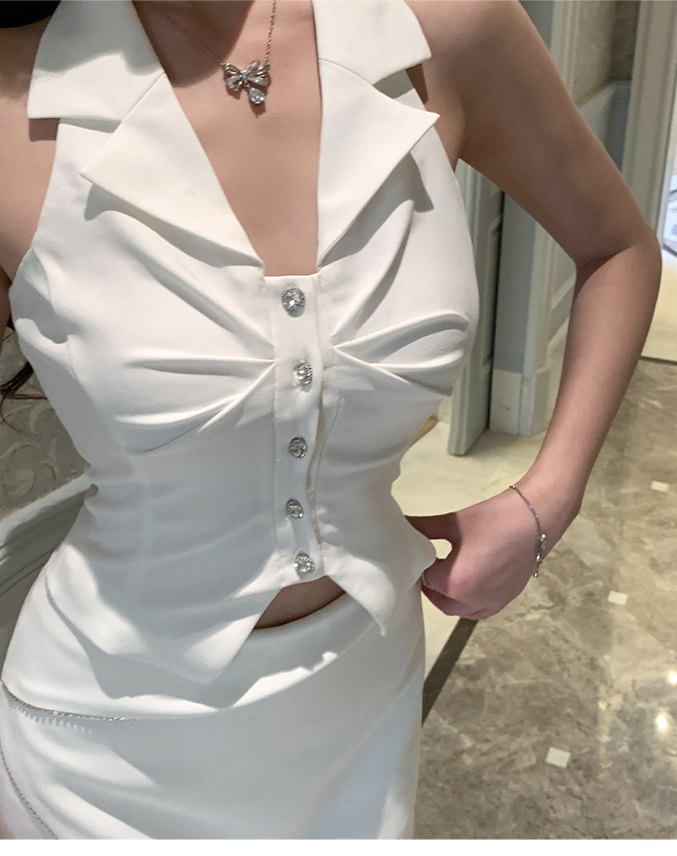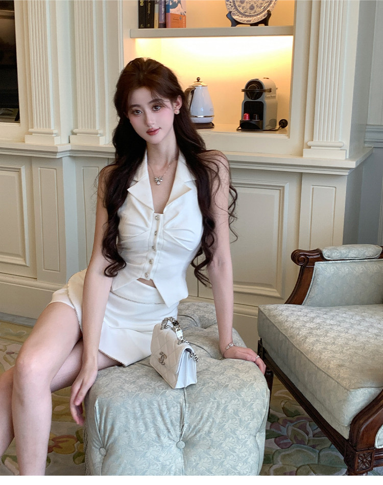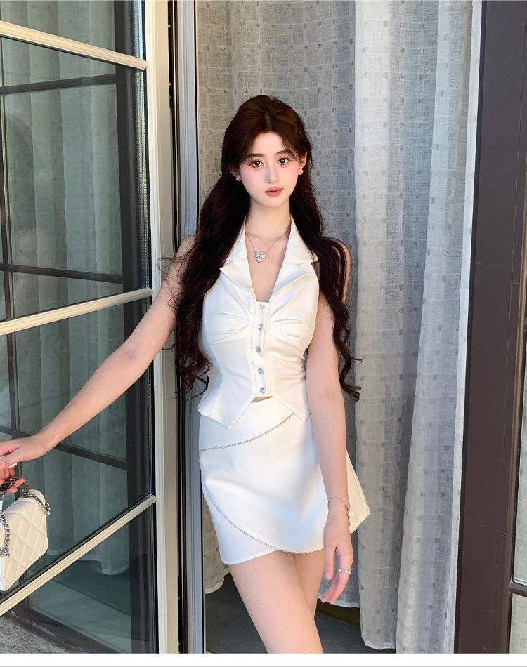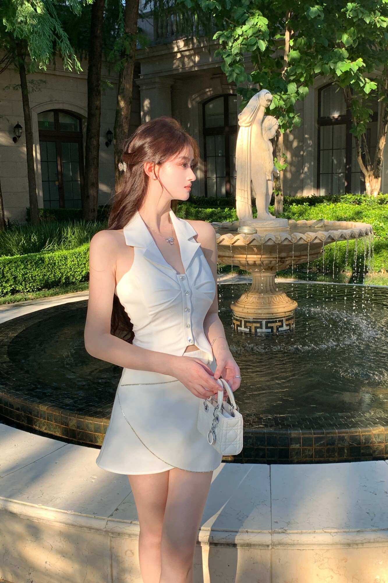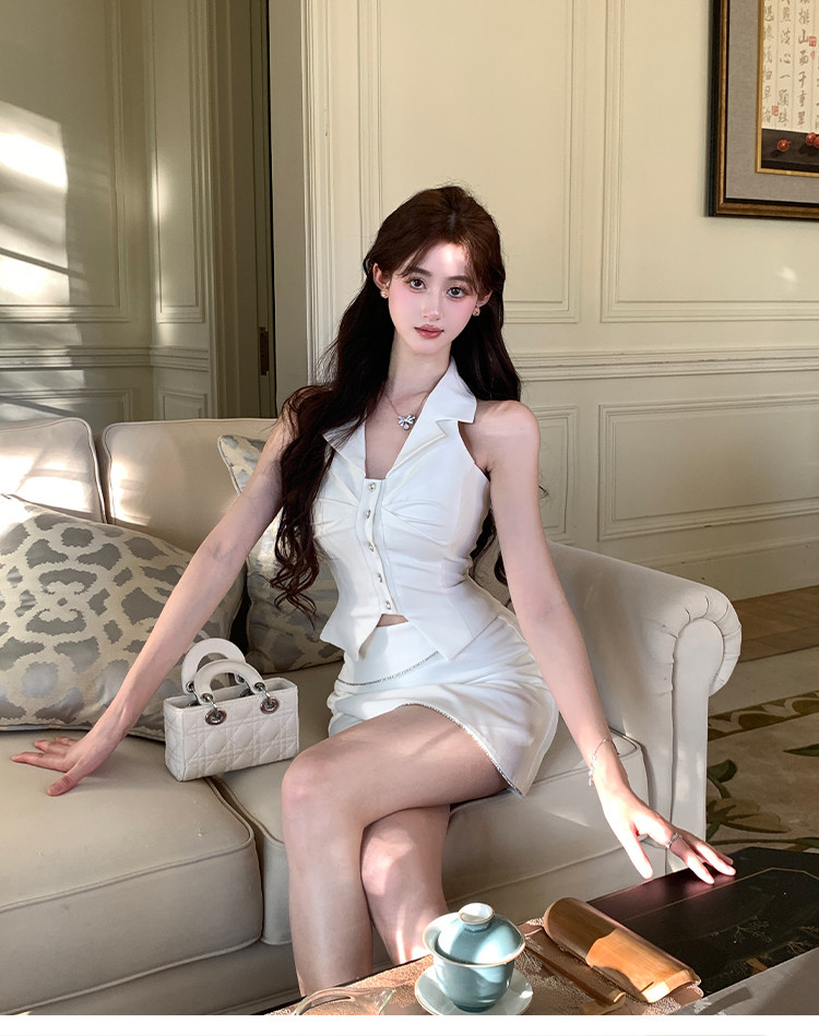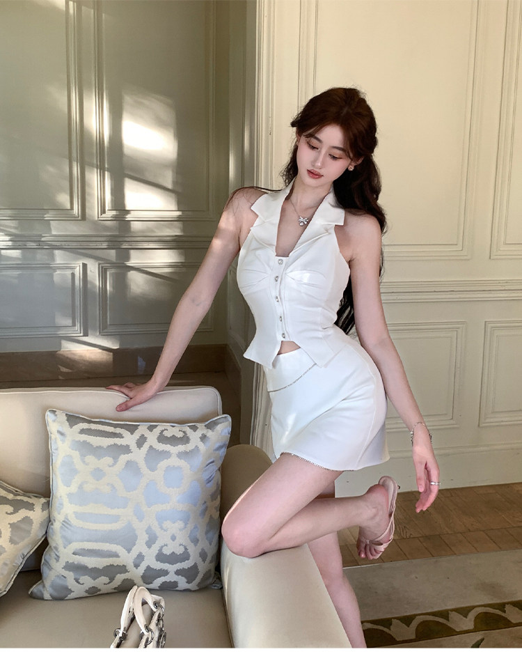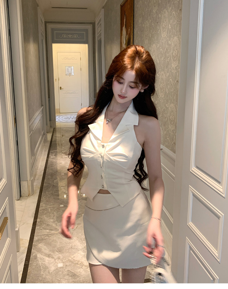 Hollin Sleeveless Halter Top Suit for Women Summer 2025 New Design Niche Hot Girl Skirt Two-Piece Set