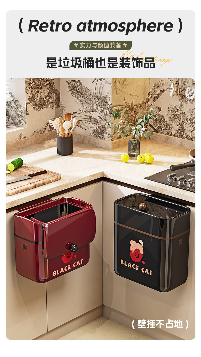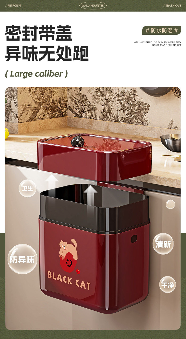 German Imported Wall-Mounted Kitchen Trash Can with Lid, Hanging Type, No Bending Required, for Bathroom, 2025 New Model
