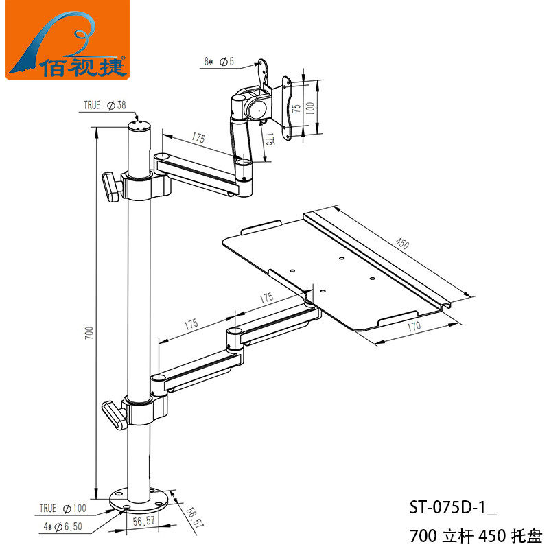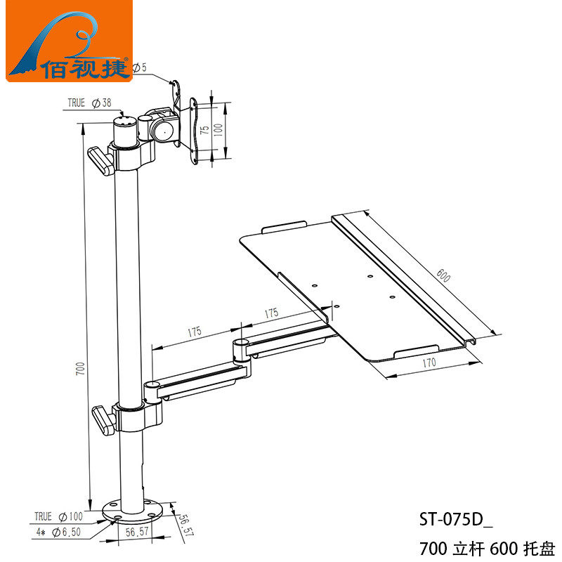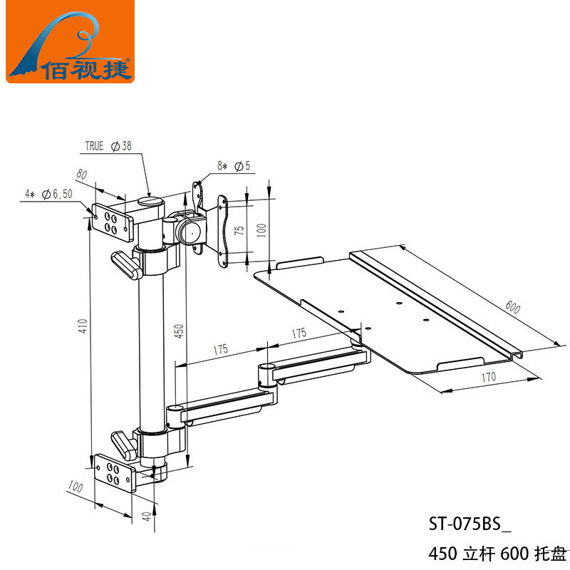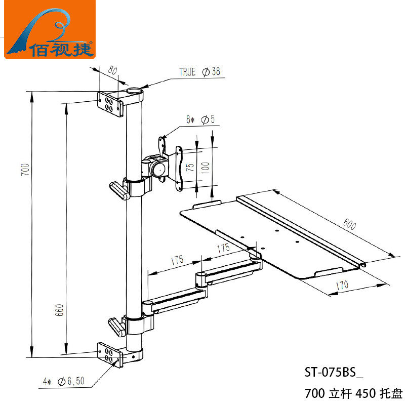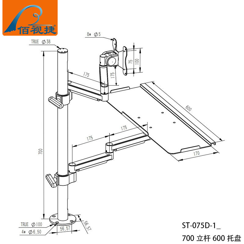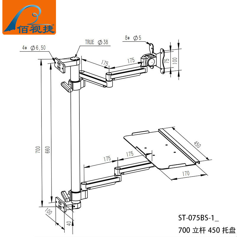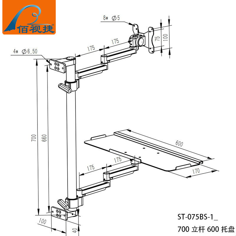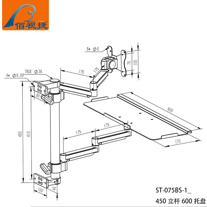 Baishijie Brand 2025 New Industrial Equipment Integrated Aluminum Alloy Keyboard and Mouse Holder Computer Monitor Manufacturer