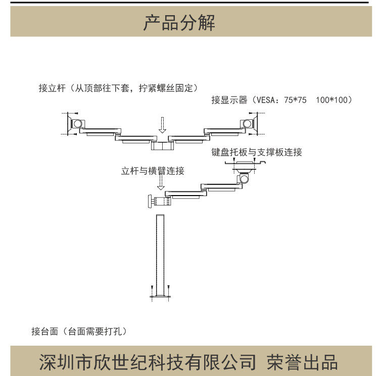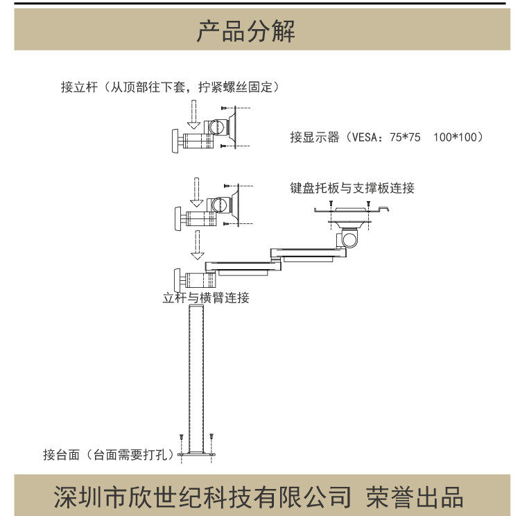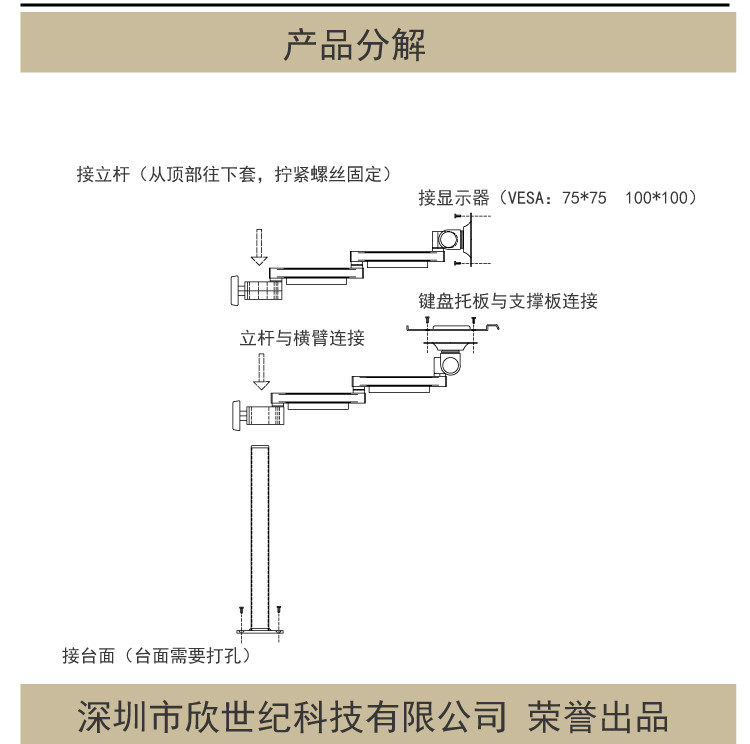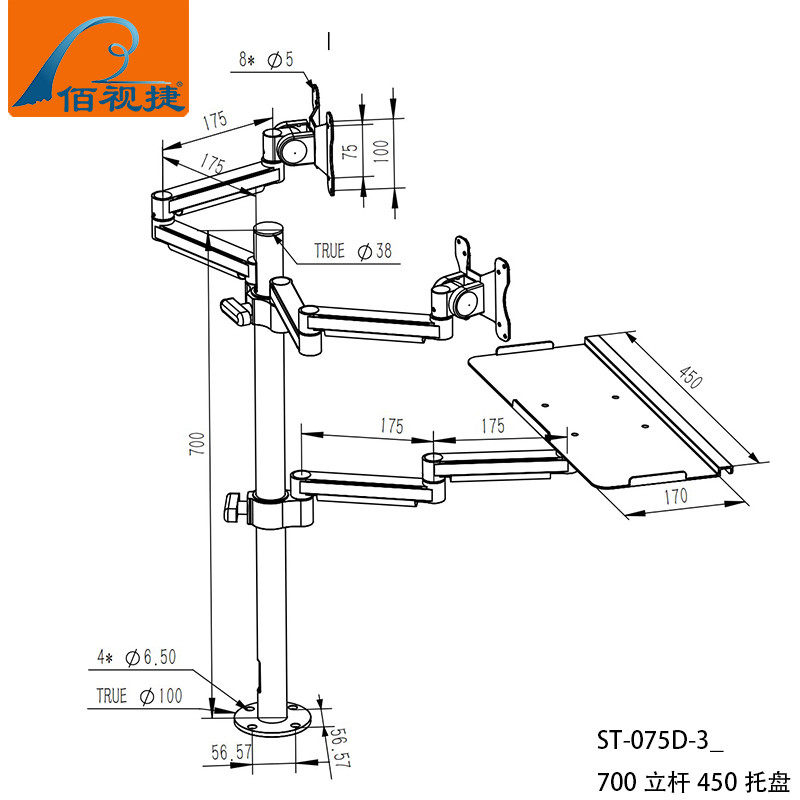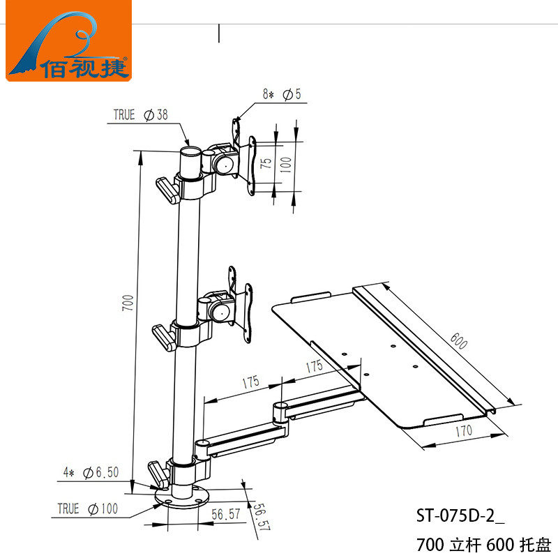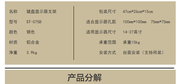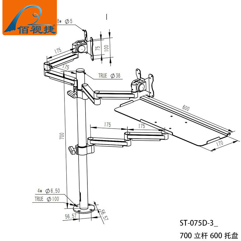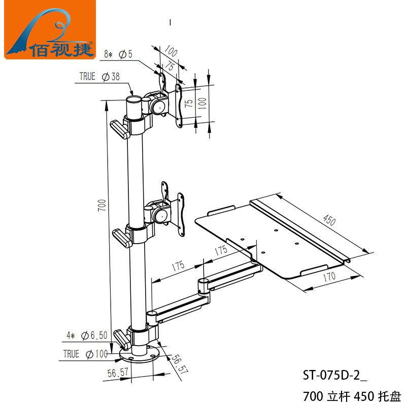 Baishijie Brand 2025 New Industrial Equipment Integrated Aluminum Alloy Keyboard and Mouse Holder Computer Monitor Manufacturer