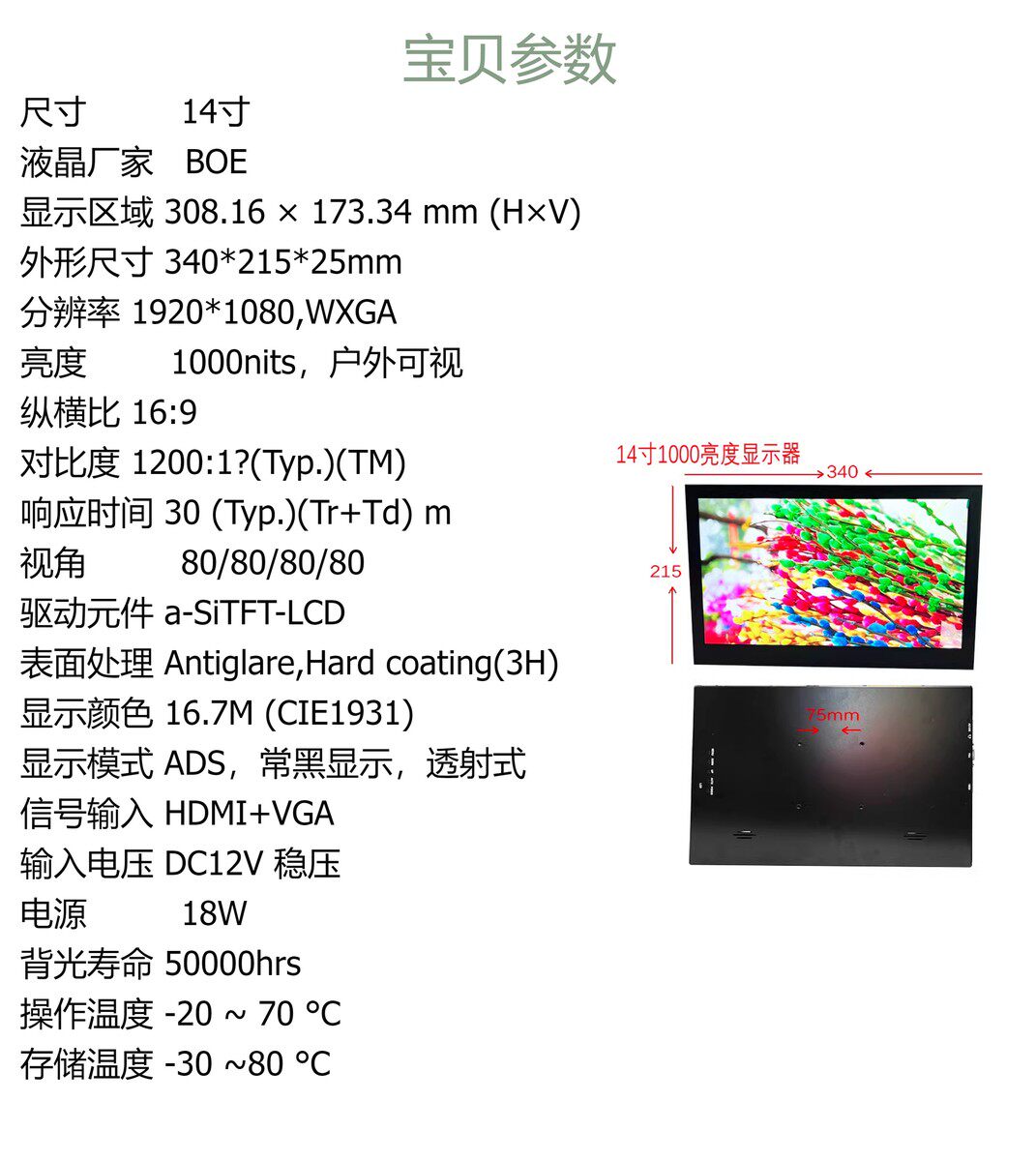 10.1/11.6/13.3/14/15.6/32/43 Inch 2000Nits Hdm Outdoor High-Brightness Lcd Display Manufacturer